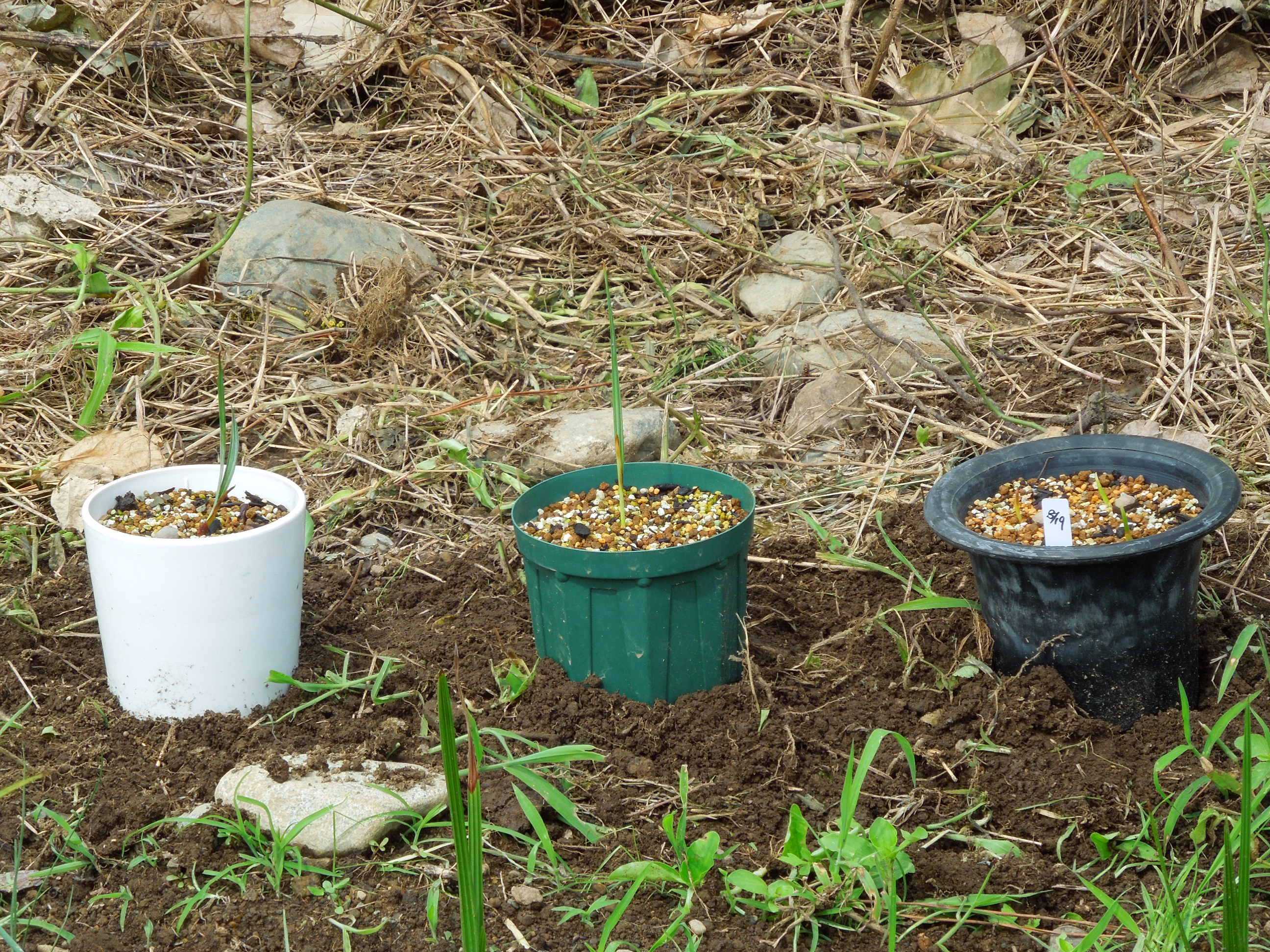 自宅もいよいよ置き場所が無くなってきて、屋外越冬できそうなヤシとかアガベとかの実生苗を開墾地に持って行った。