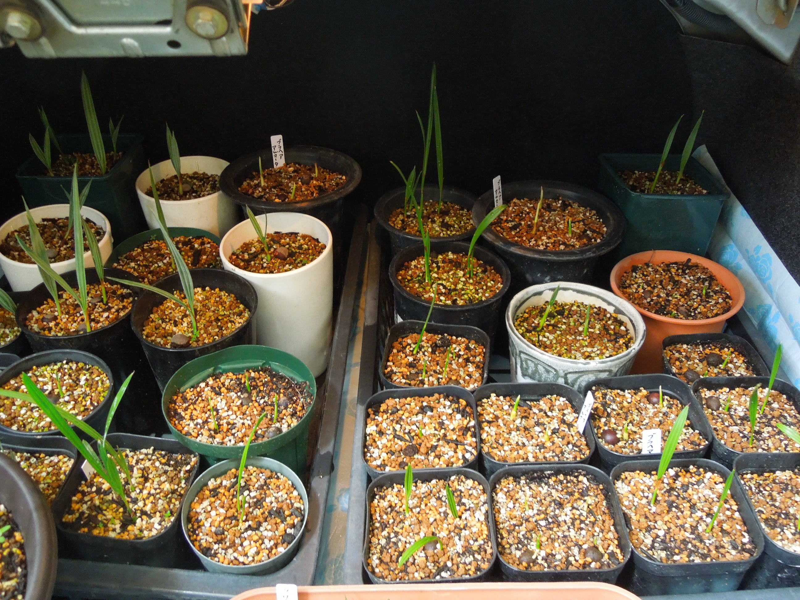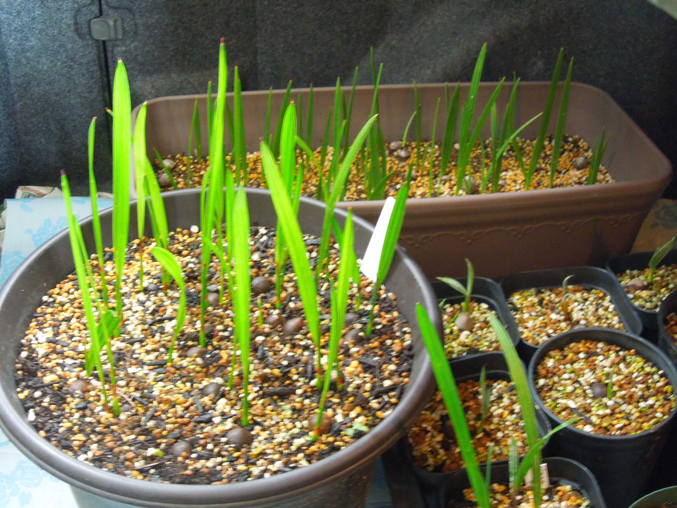 チャメロップス・フミリス・セリフェラとブラヘア・アルマータの実生苗