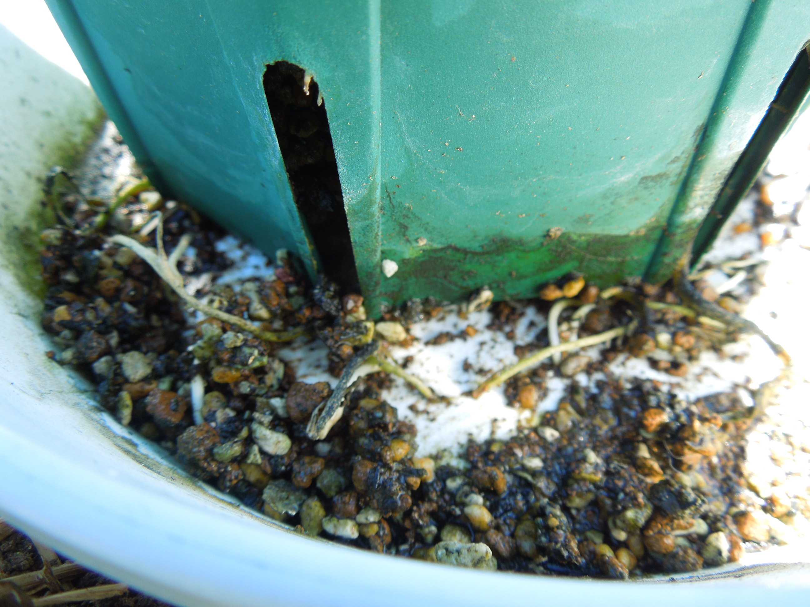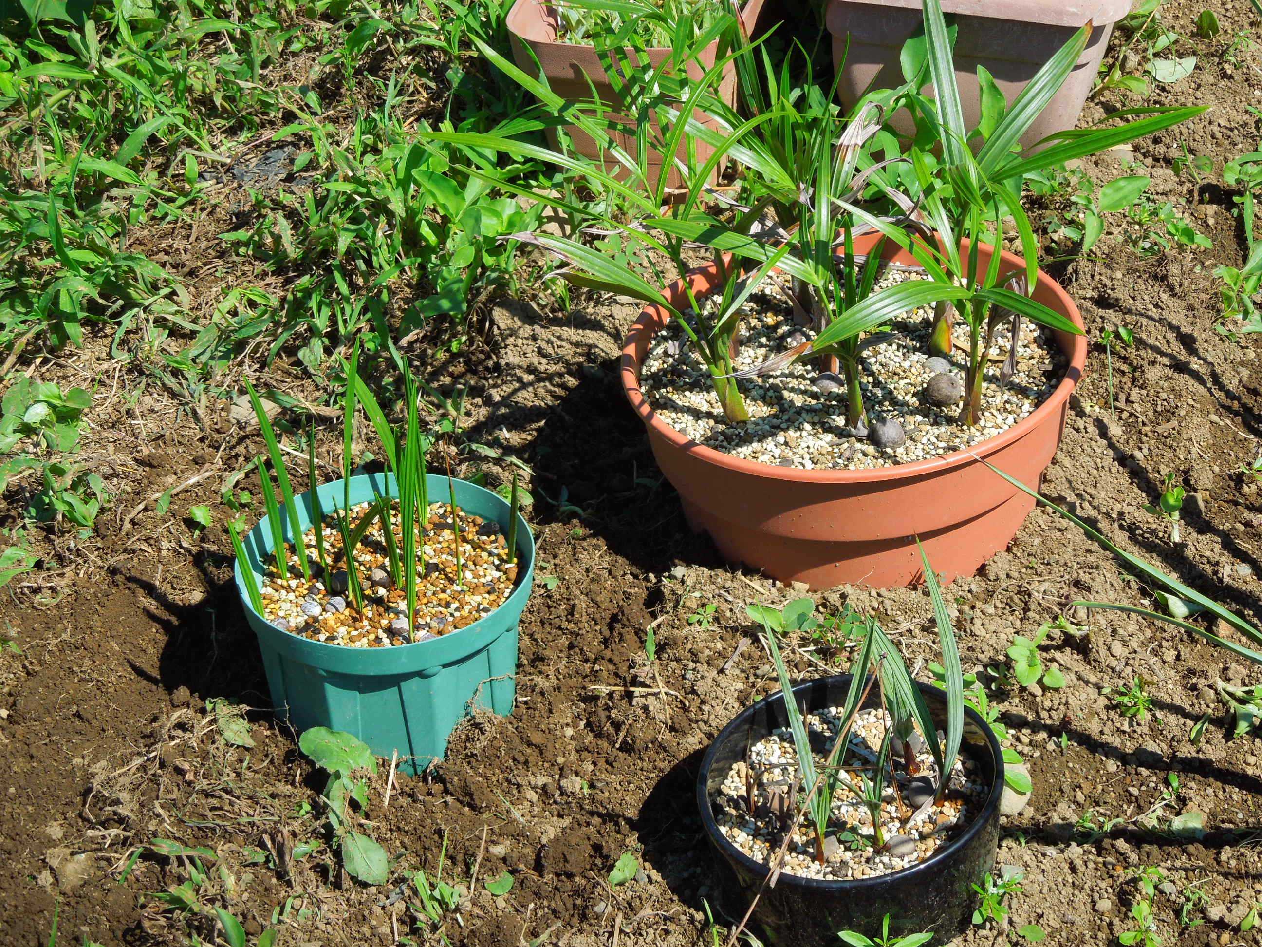 自宅は3~4時間しか日が当たらなくなってきたので、これからは日の出から日の入りまで十分に日が当たるし、根もだいぶ伸びて水やりの間隔も長くしても問題無いだろうから、開墾地の方が良いと思う。
