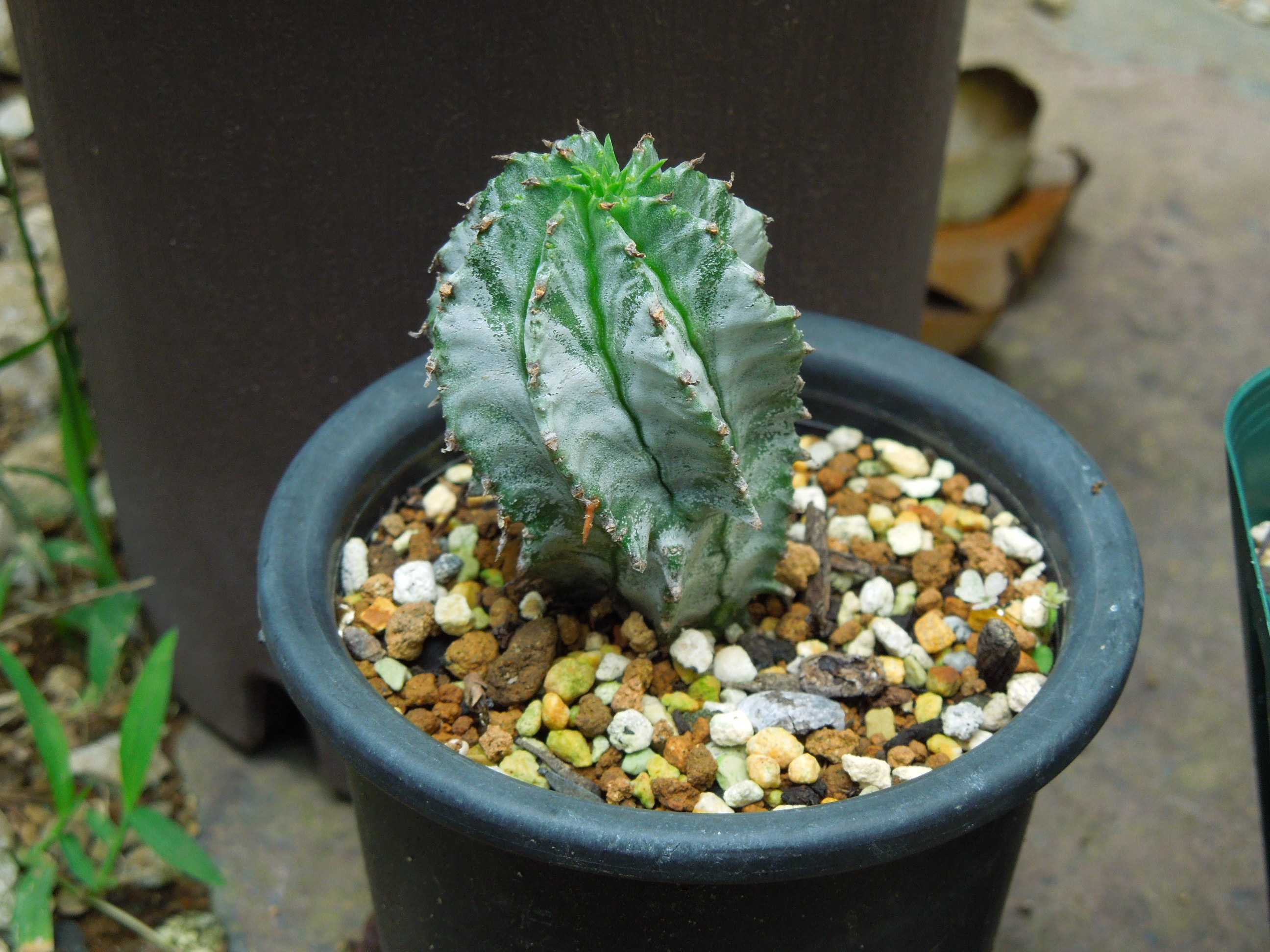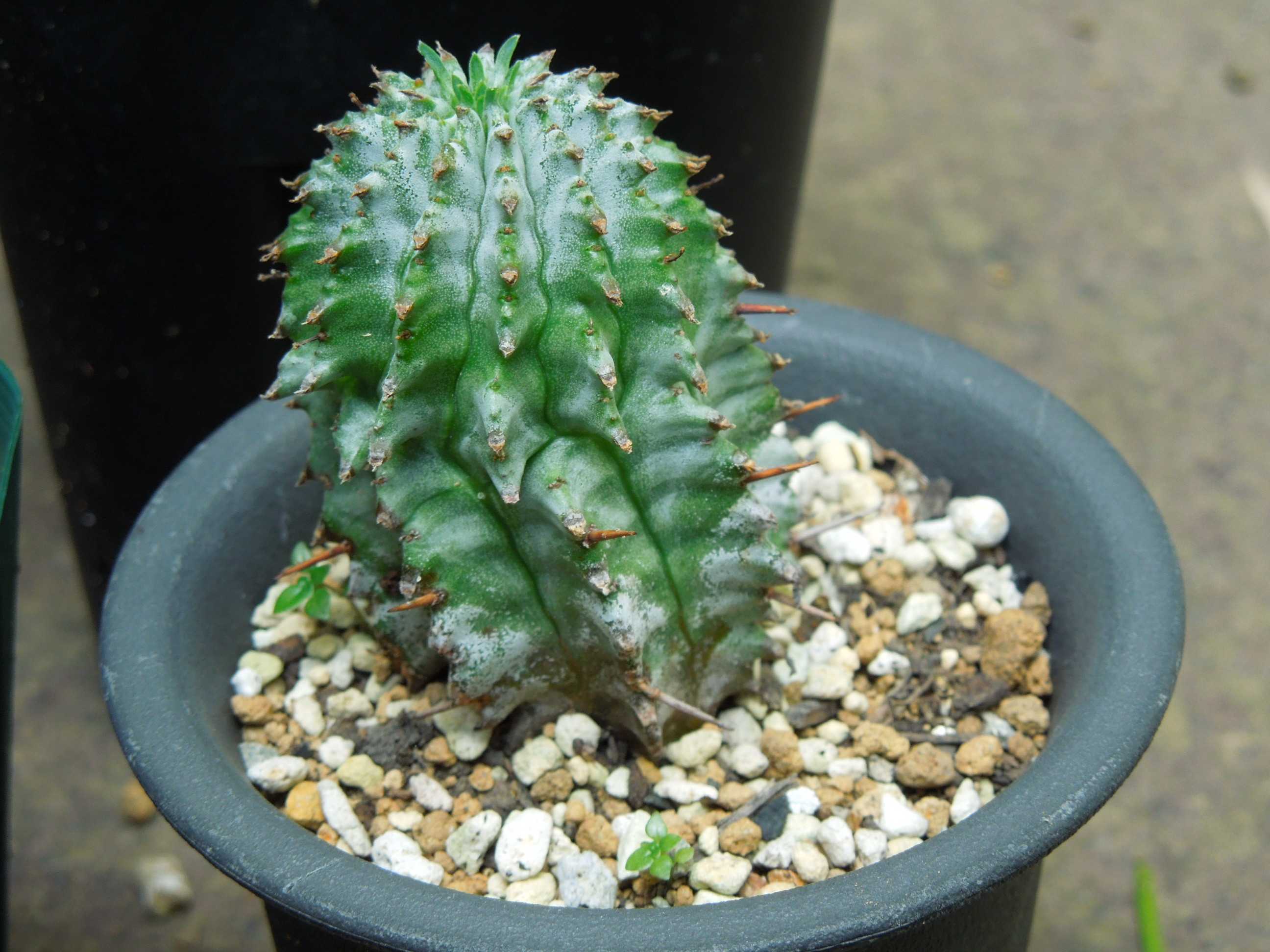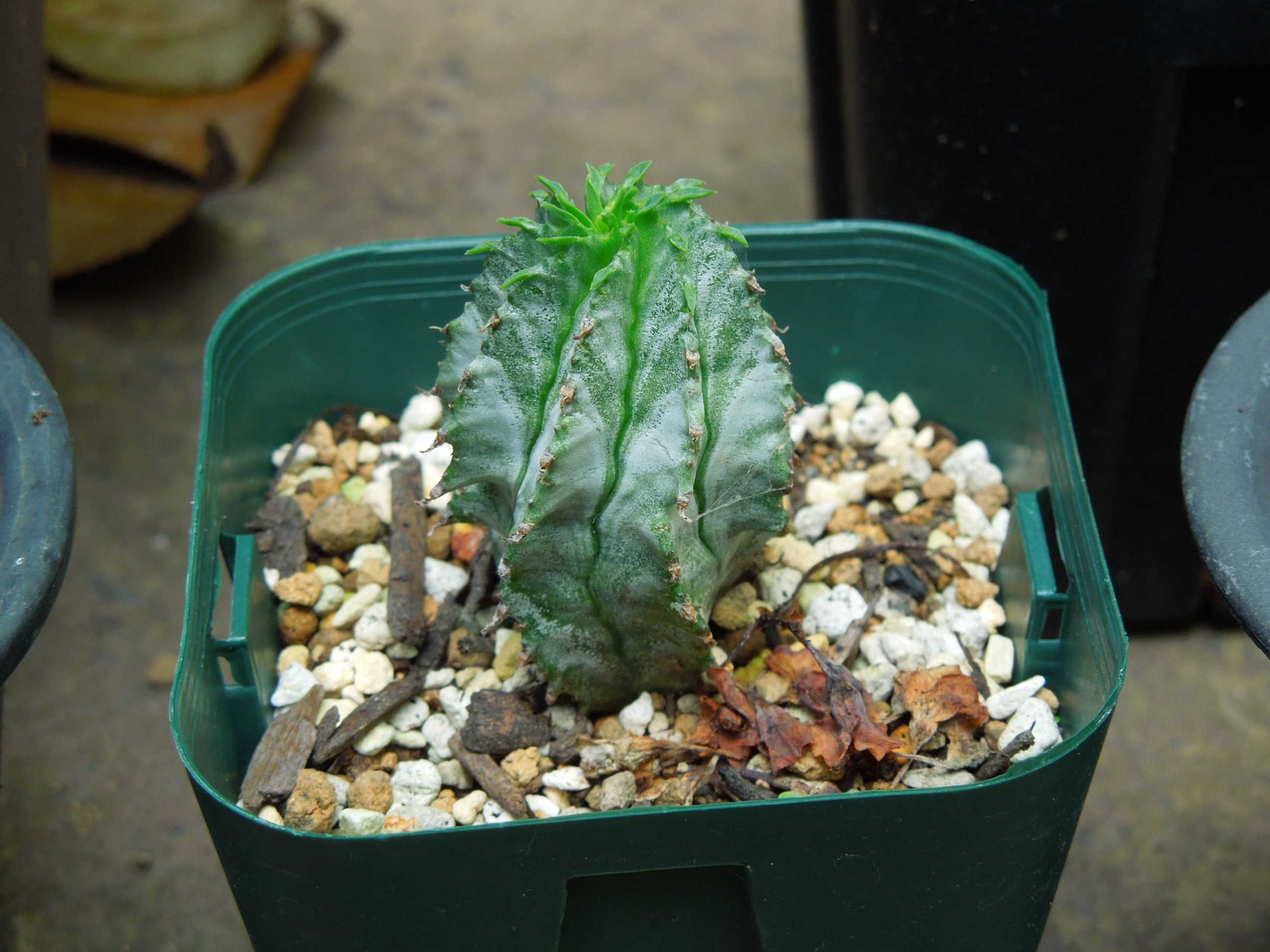 3月に残した小さな子株もだいぶ育って、新しい子株(左)が出てきた。