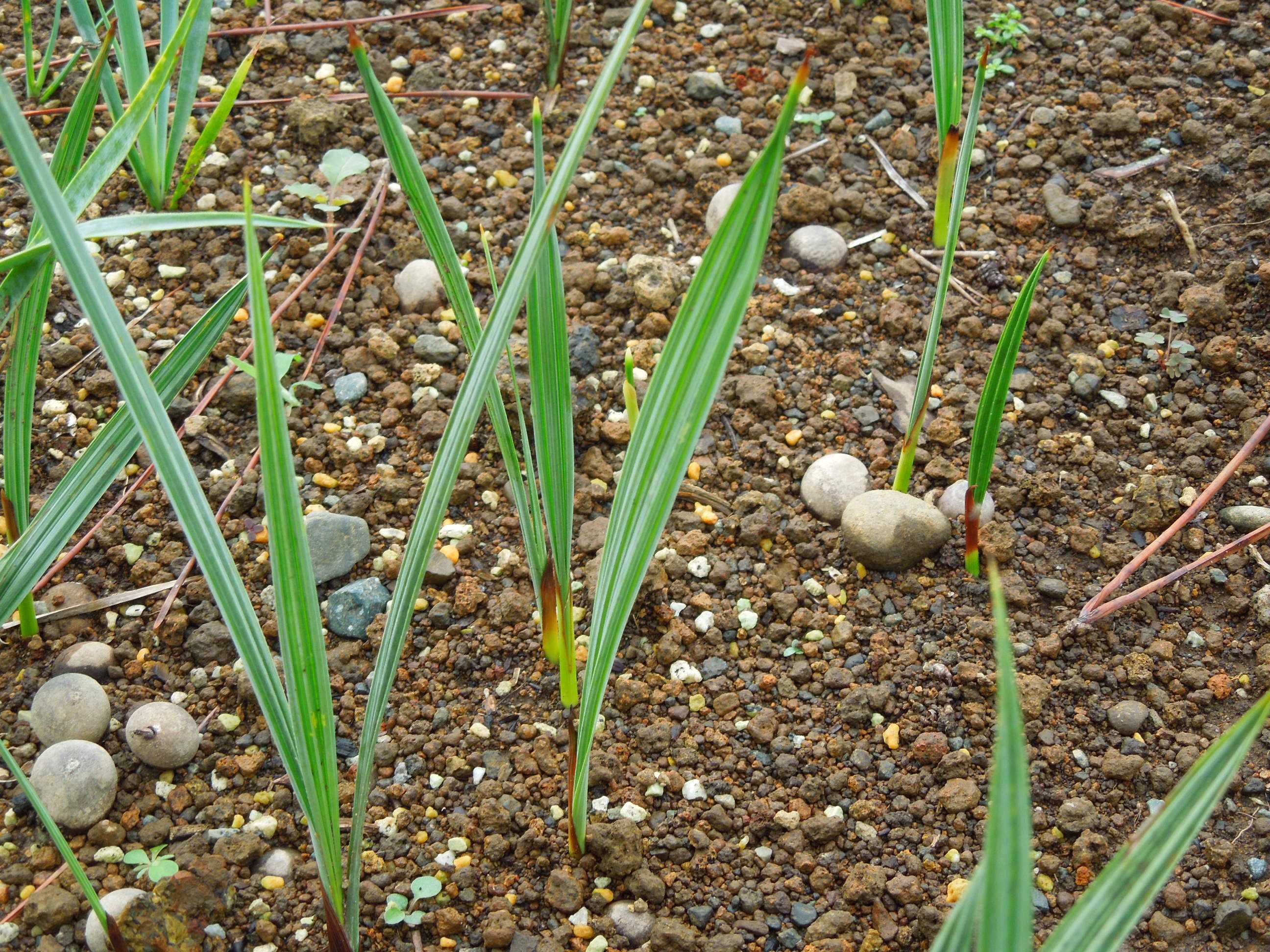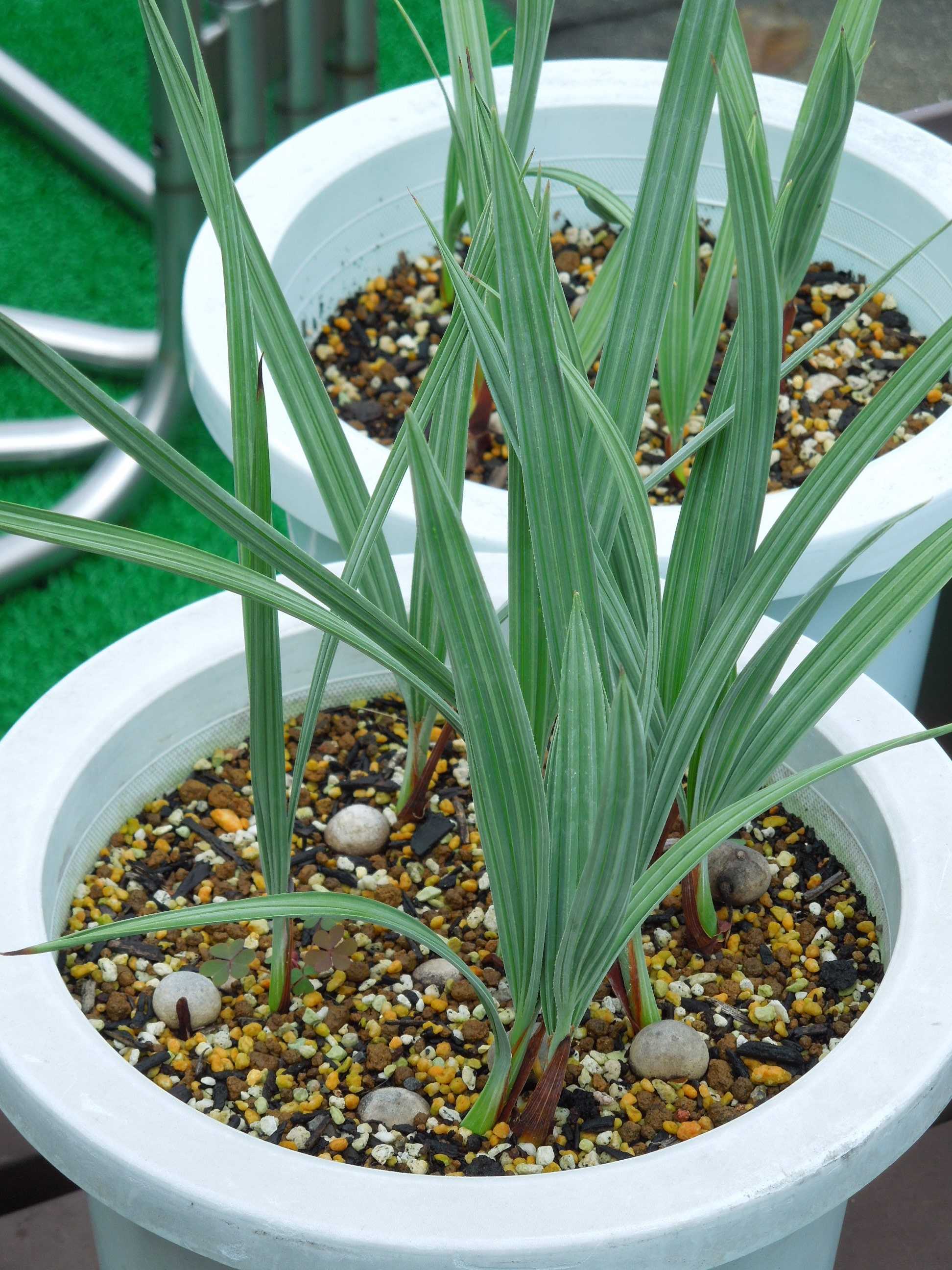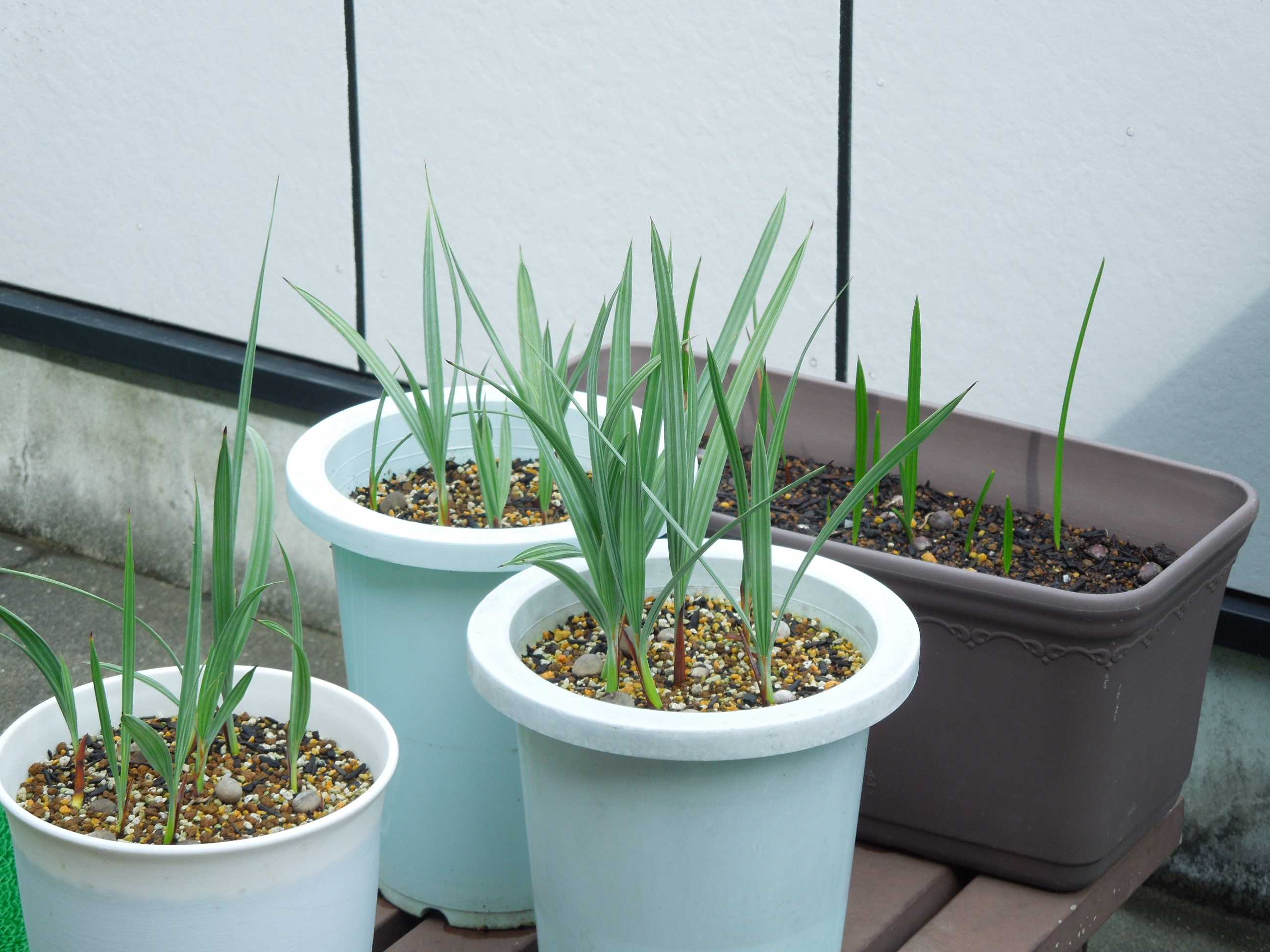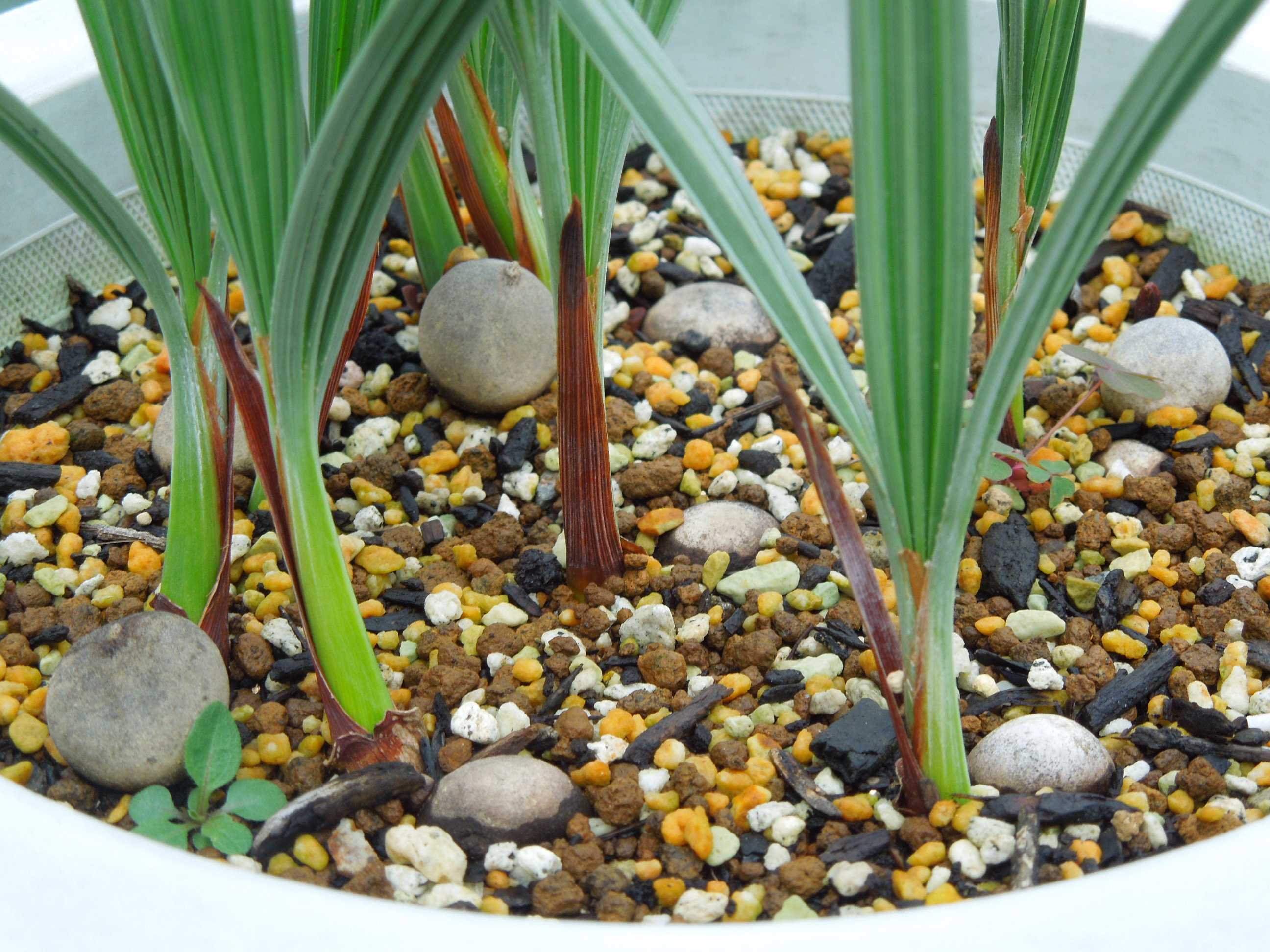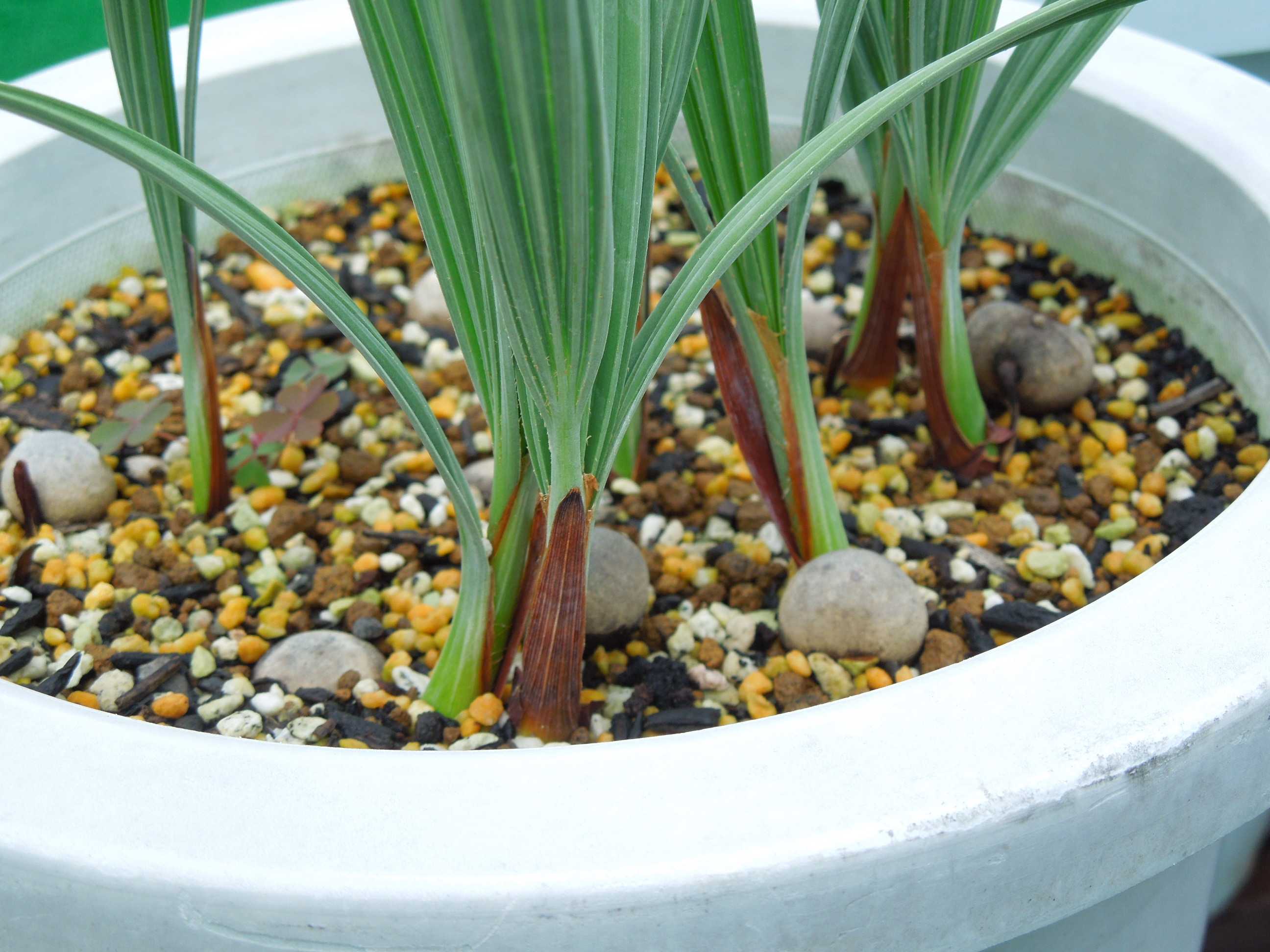 ヤシ類は深くて用土がをたっぷり入れられる大きい鉢に植えるか、地植えにするのが良さそうだ。