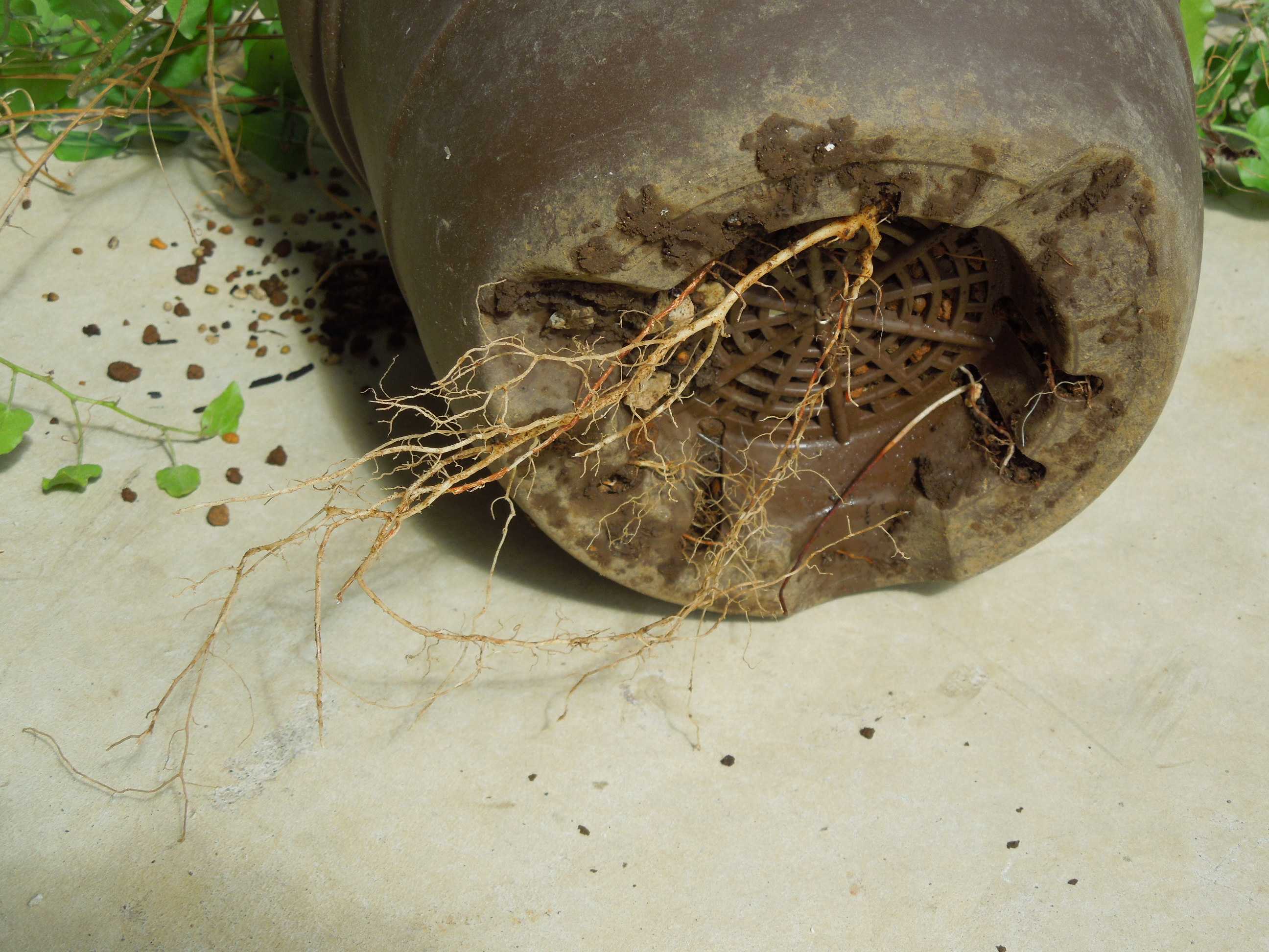 少しは芋も大きくなったみたいで、鉢に接触している。