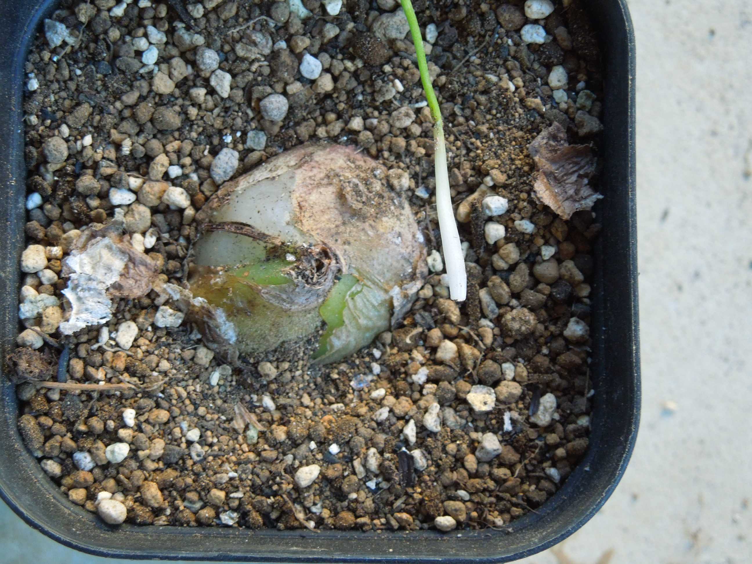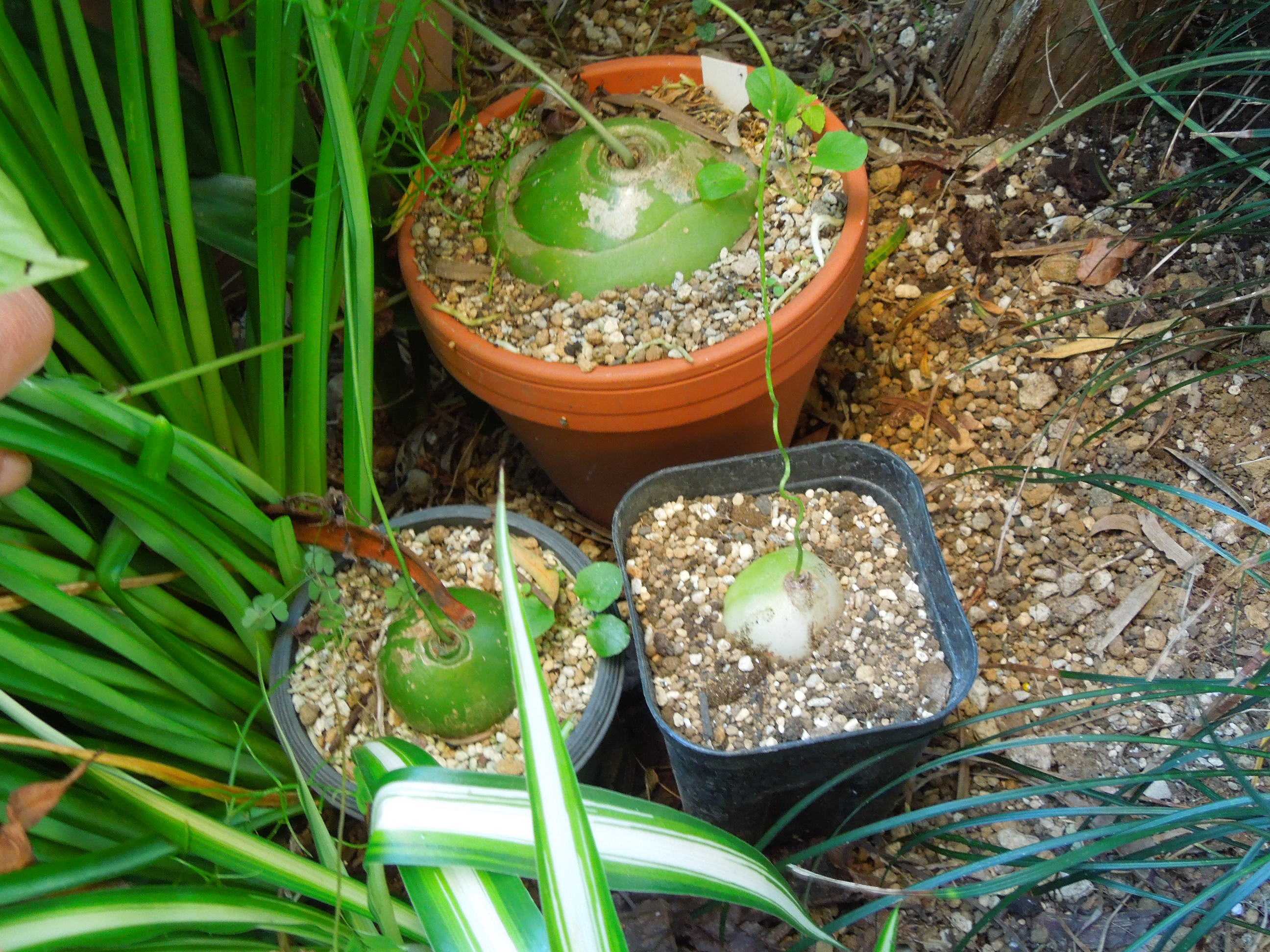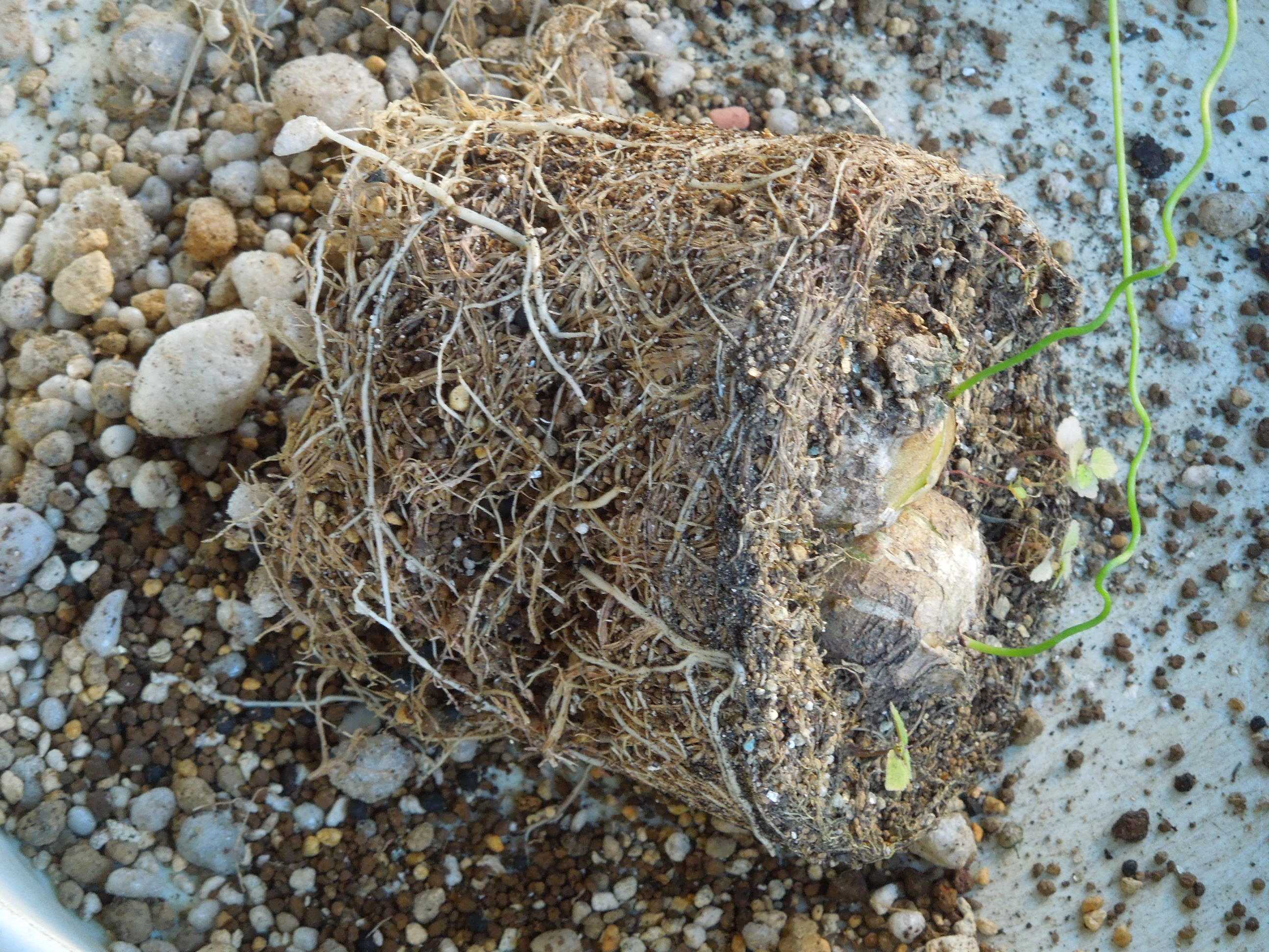 古い表皮を軽く剥がして、使い古しのプレステラ90深鉢に植え付け。