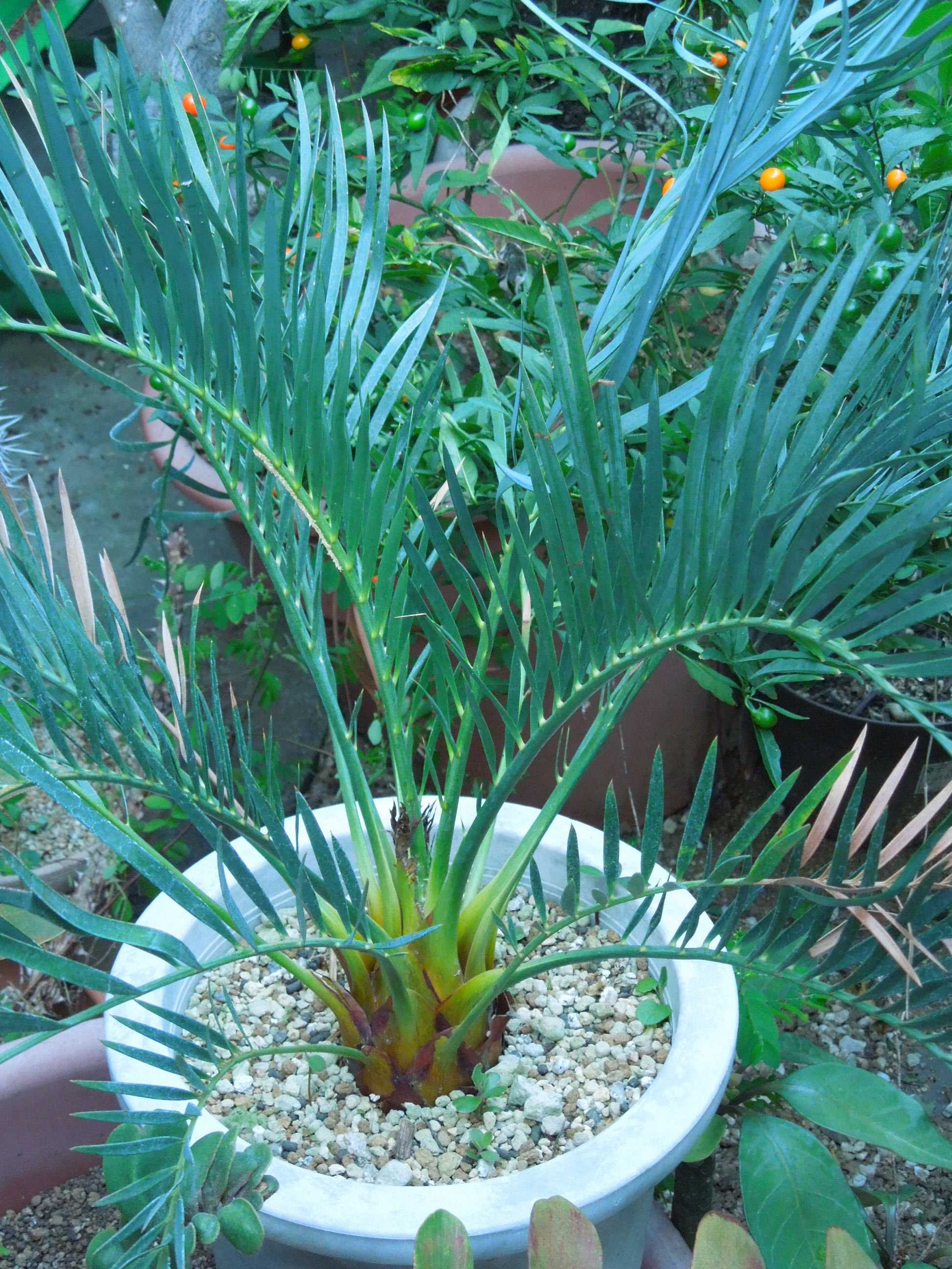 こいつらより少し大きいマクロザミア・ムーレイ2株とサイカス・カイルンシアナ1株を屋外に残して様子を見ている。
