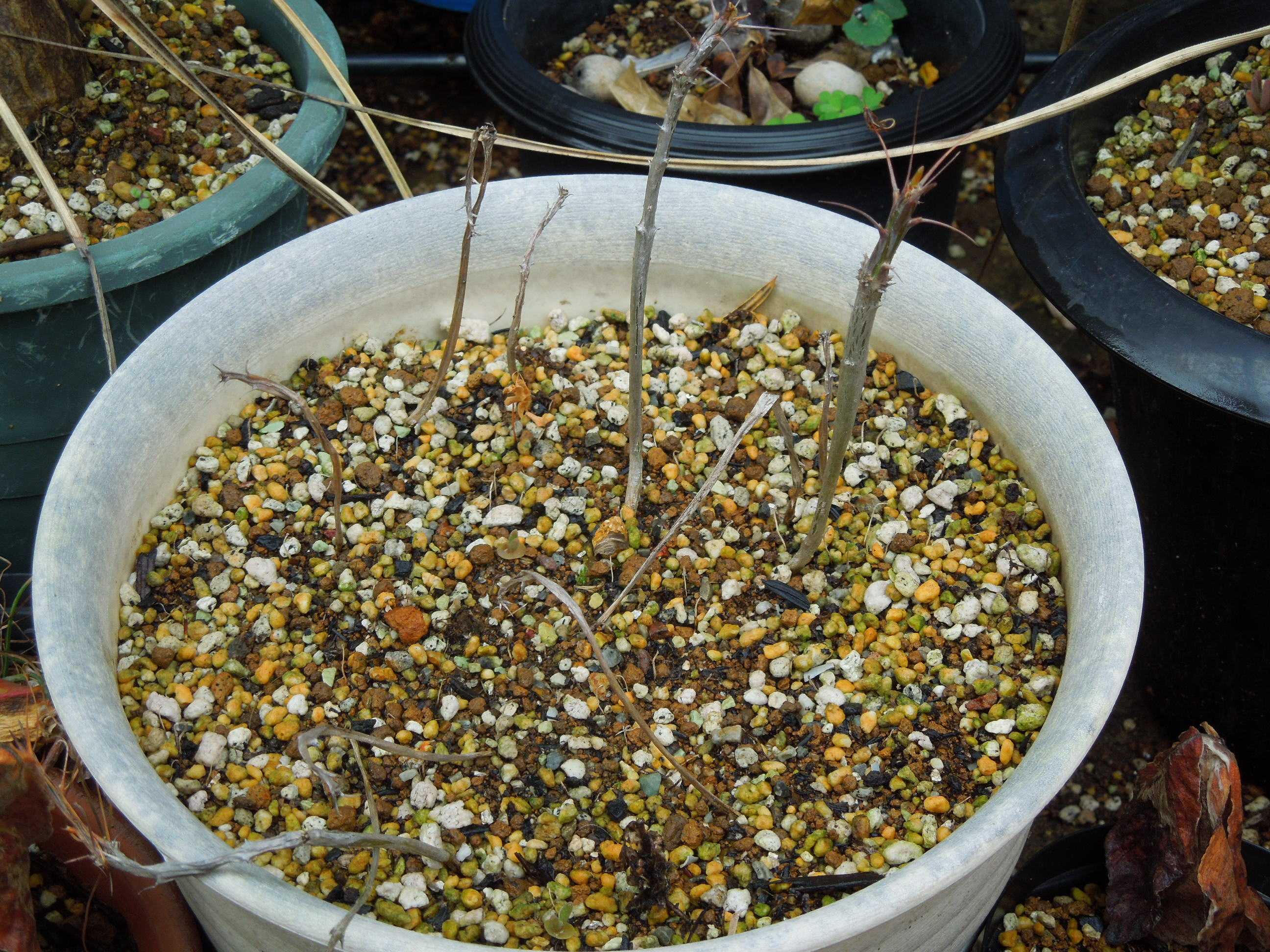 どれも用土「串が刺さっている」みたいな感じだが、まだ生きている。