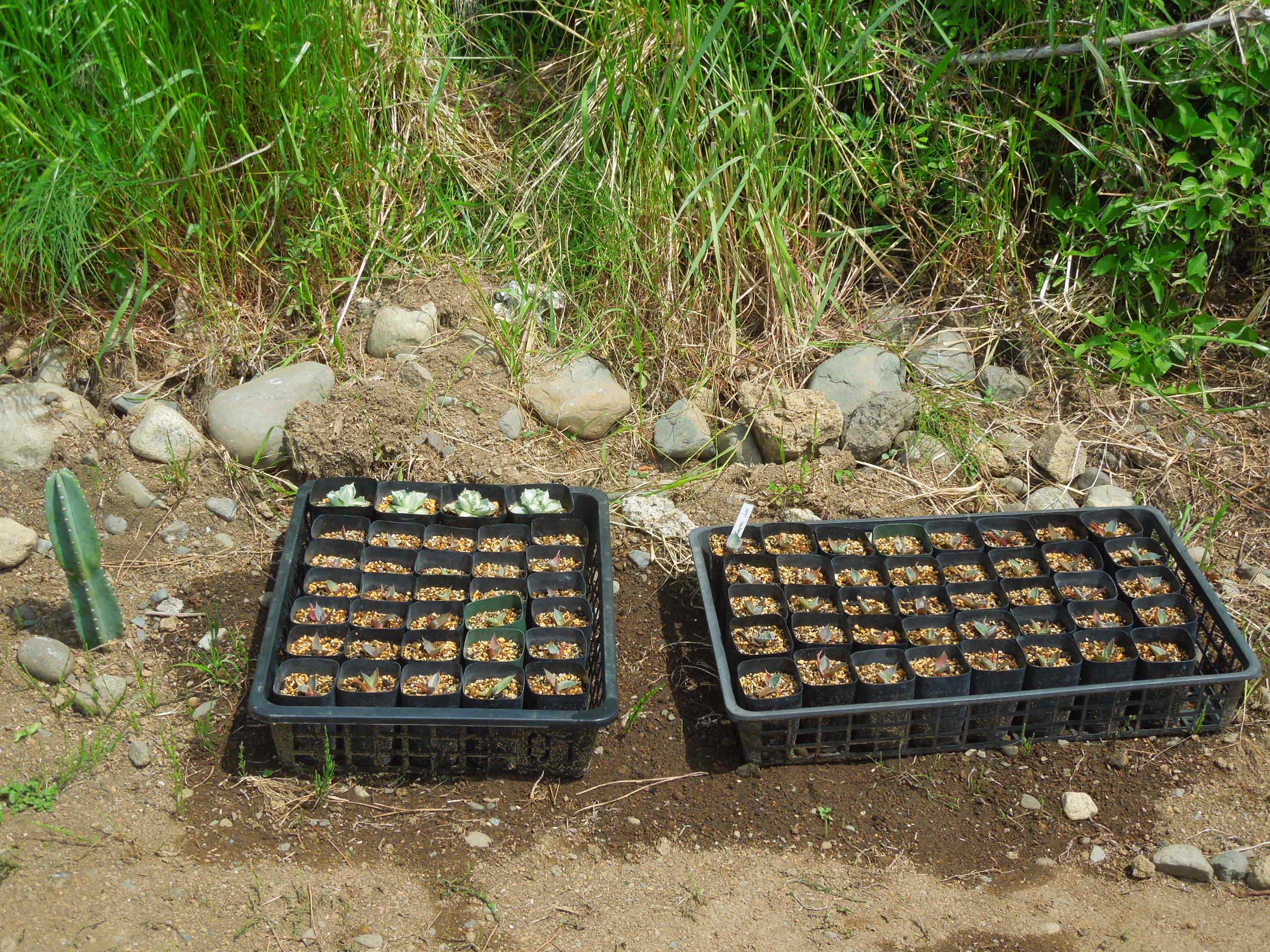 開墾地は日が良く当たるので、実生苗は2日晴れれば用土はカラカラ。