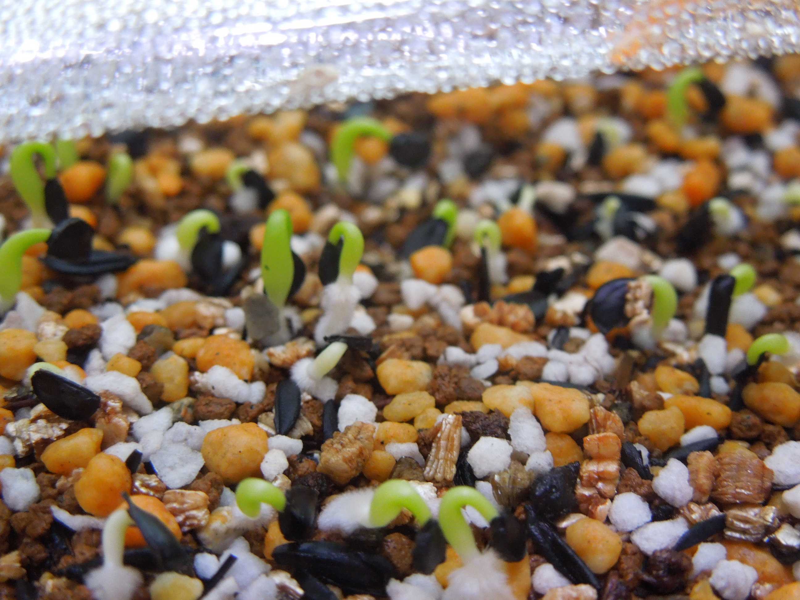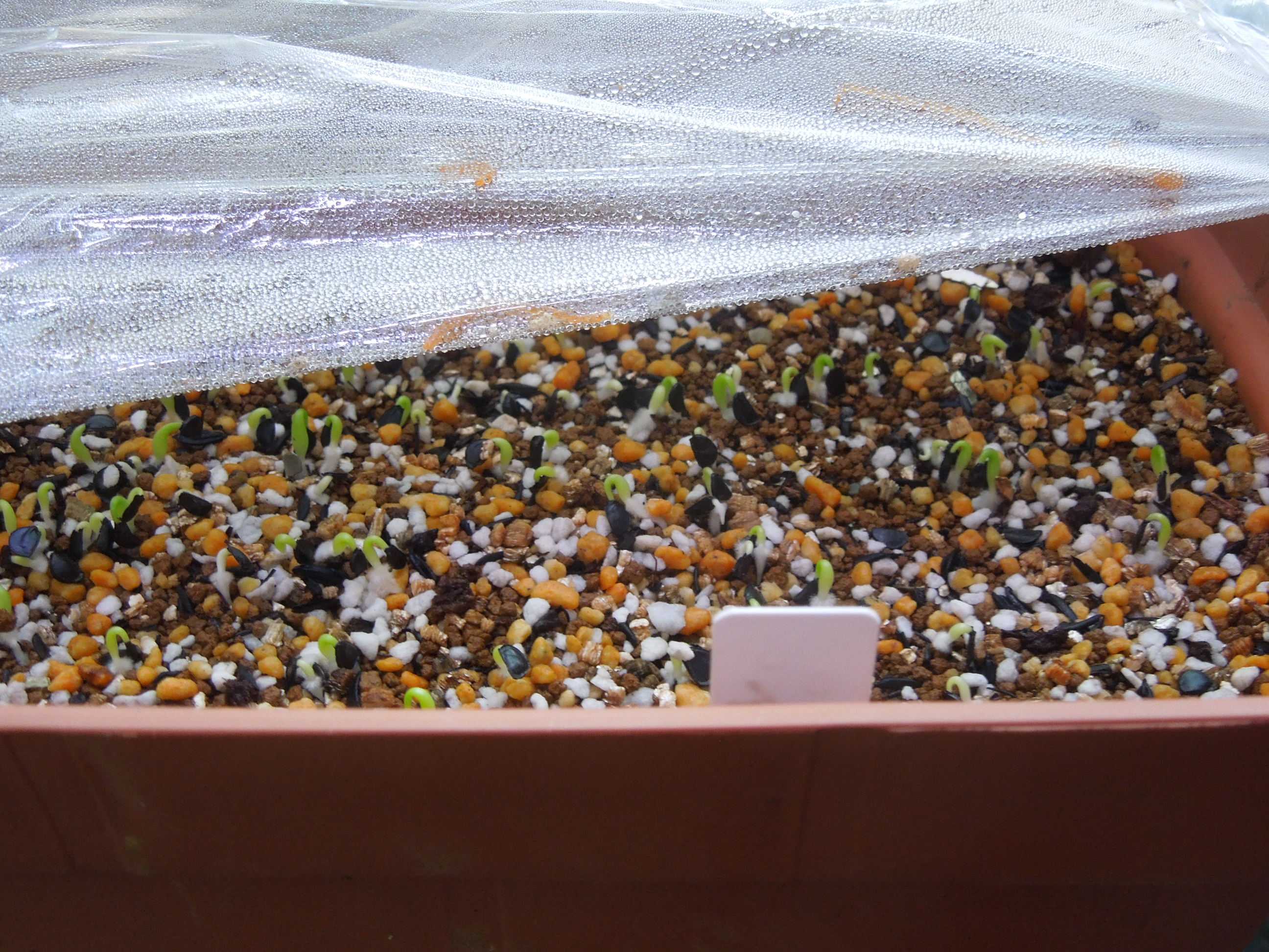 どれも受け皿にキッチンペーパーを敷いて水で湿らせて直播き。