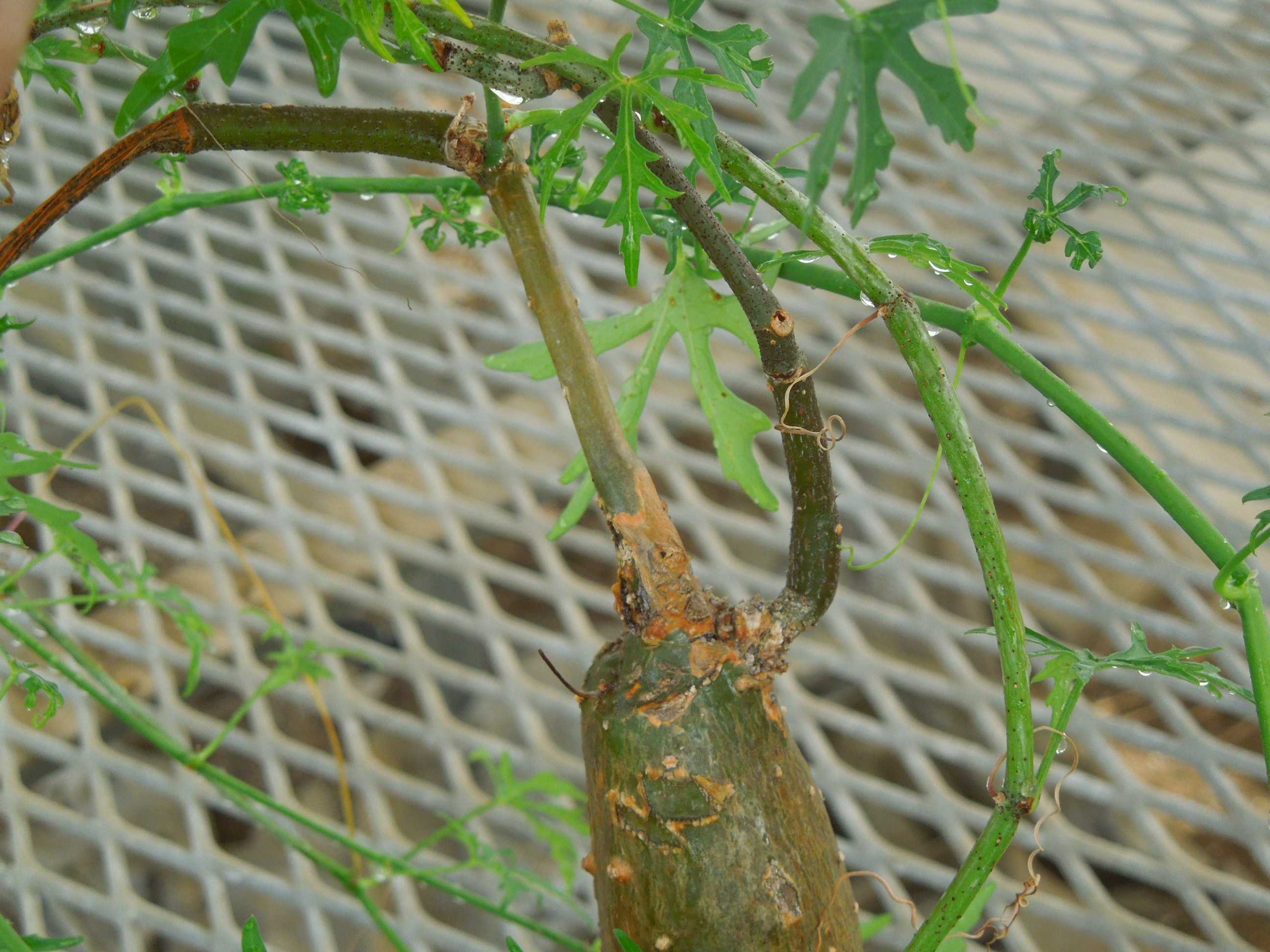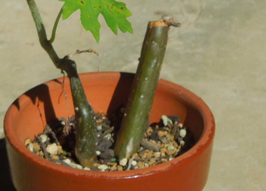 何年か蔓を出していたが、いつの間にか左から新芽が出て太ってきた。