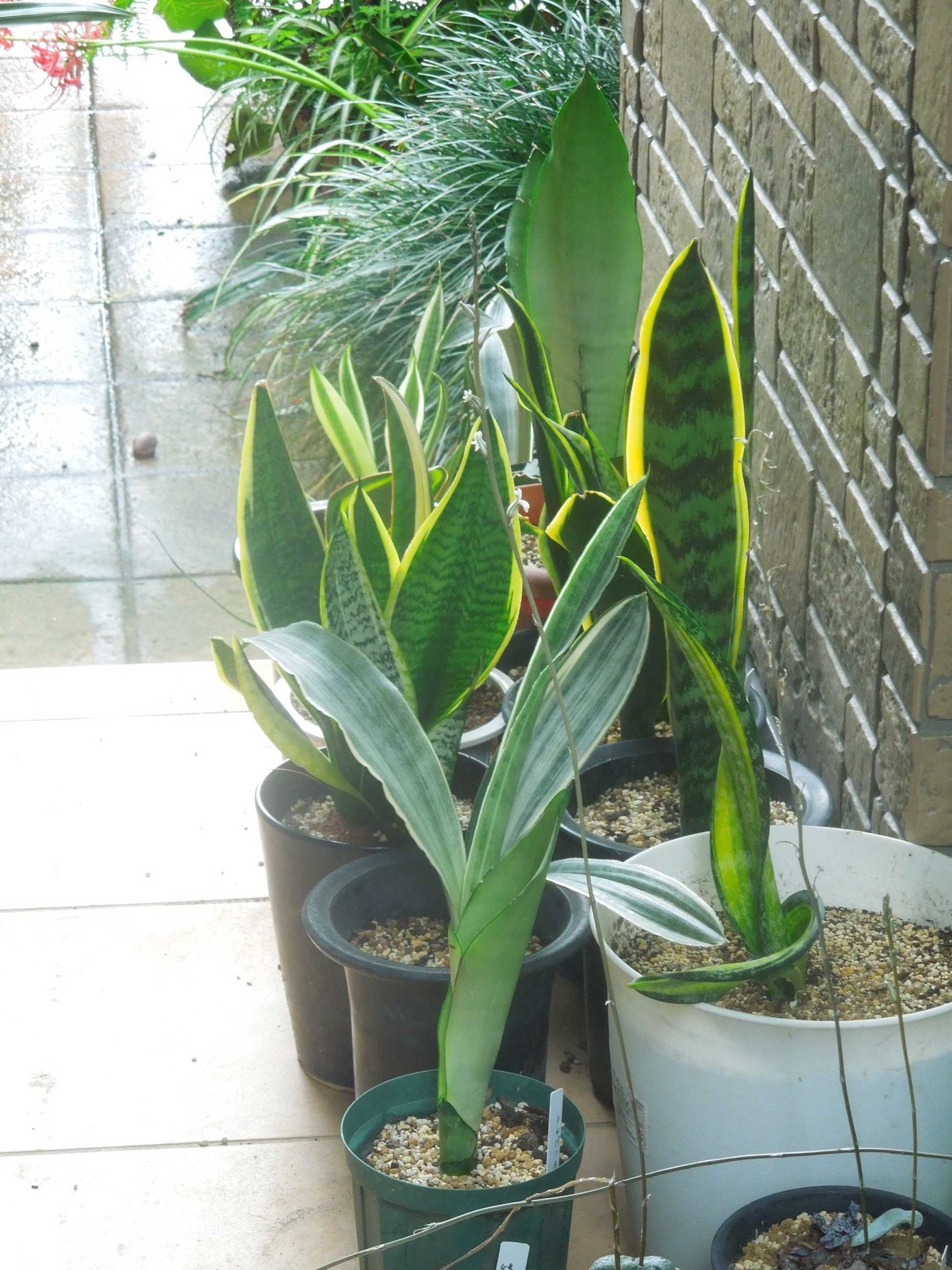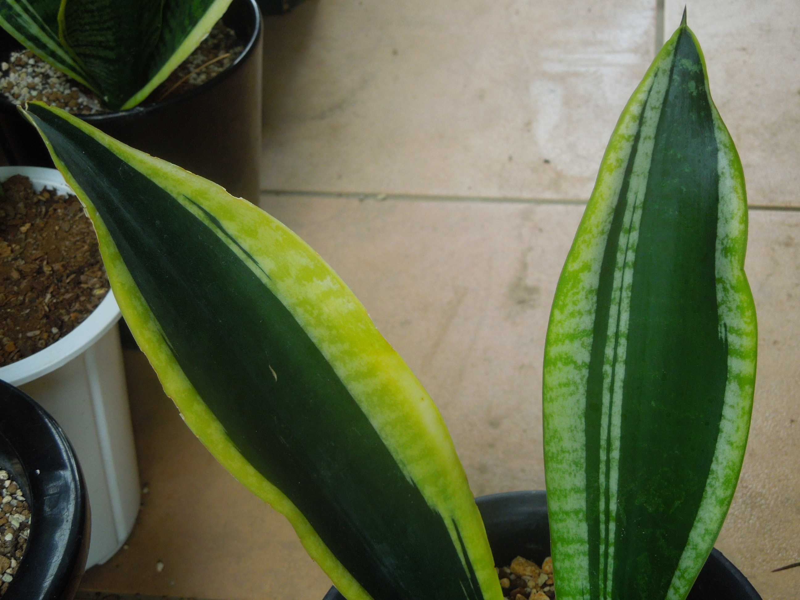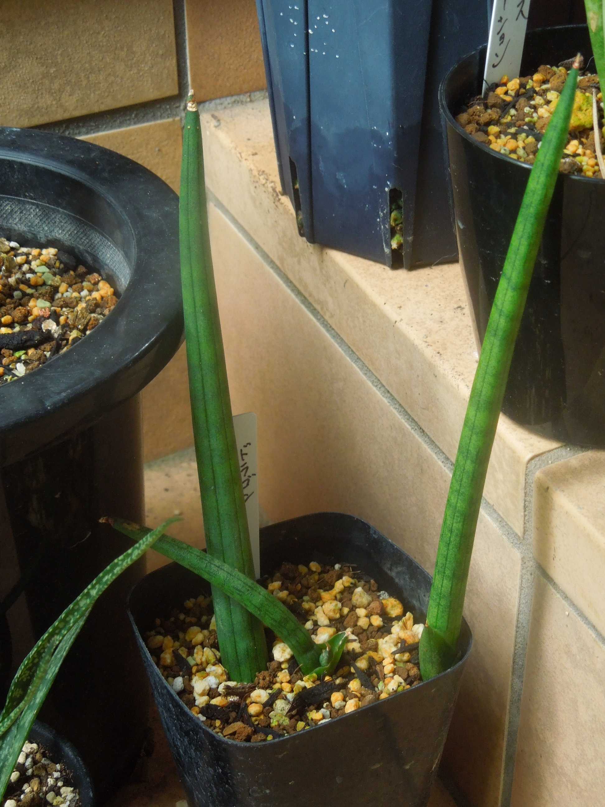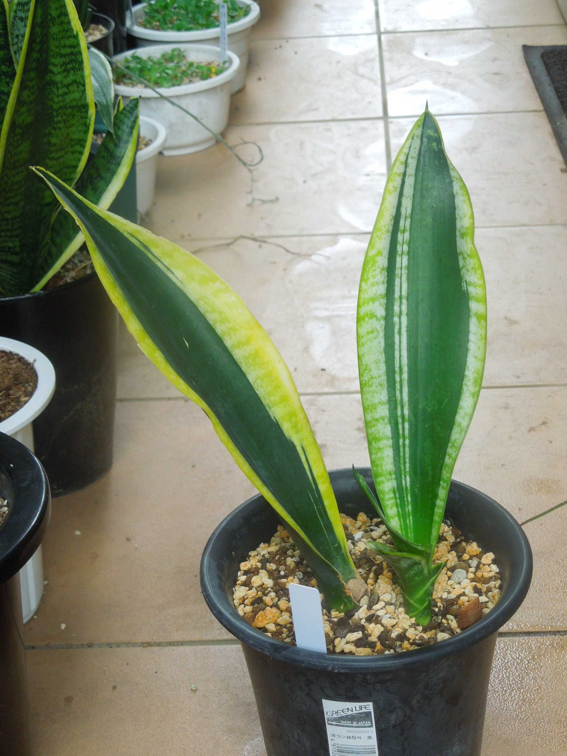 小田園芸さんに分けて頂いた サンスベリア・マッソニアーナ(奥の中斑)。