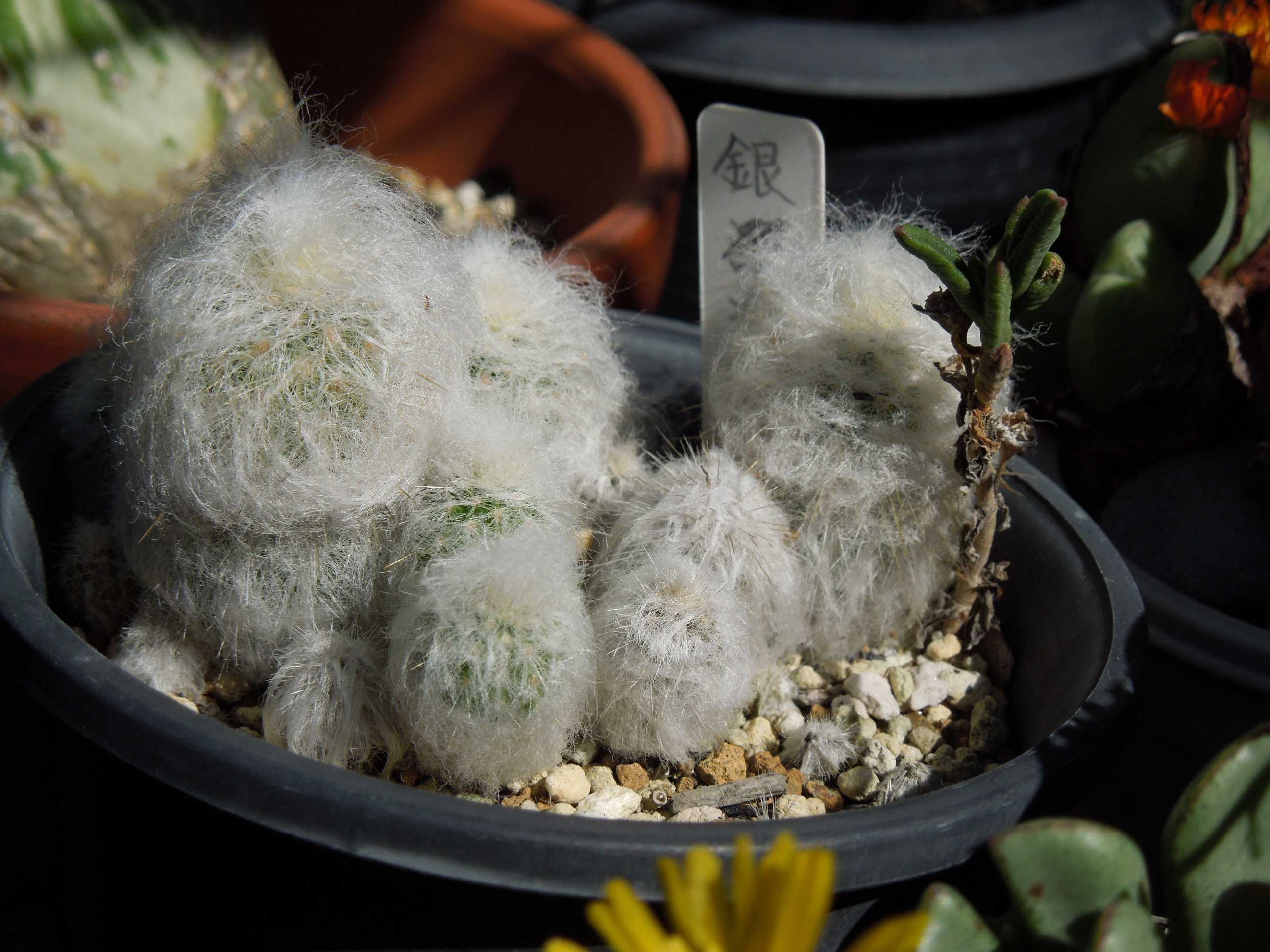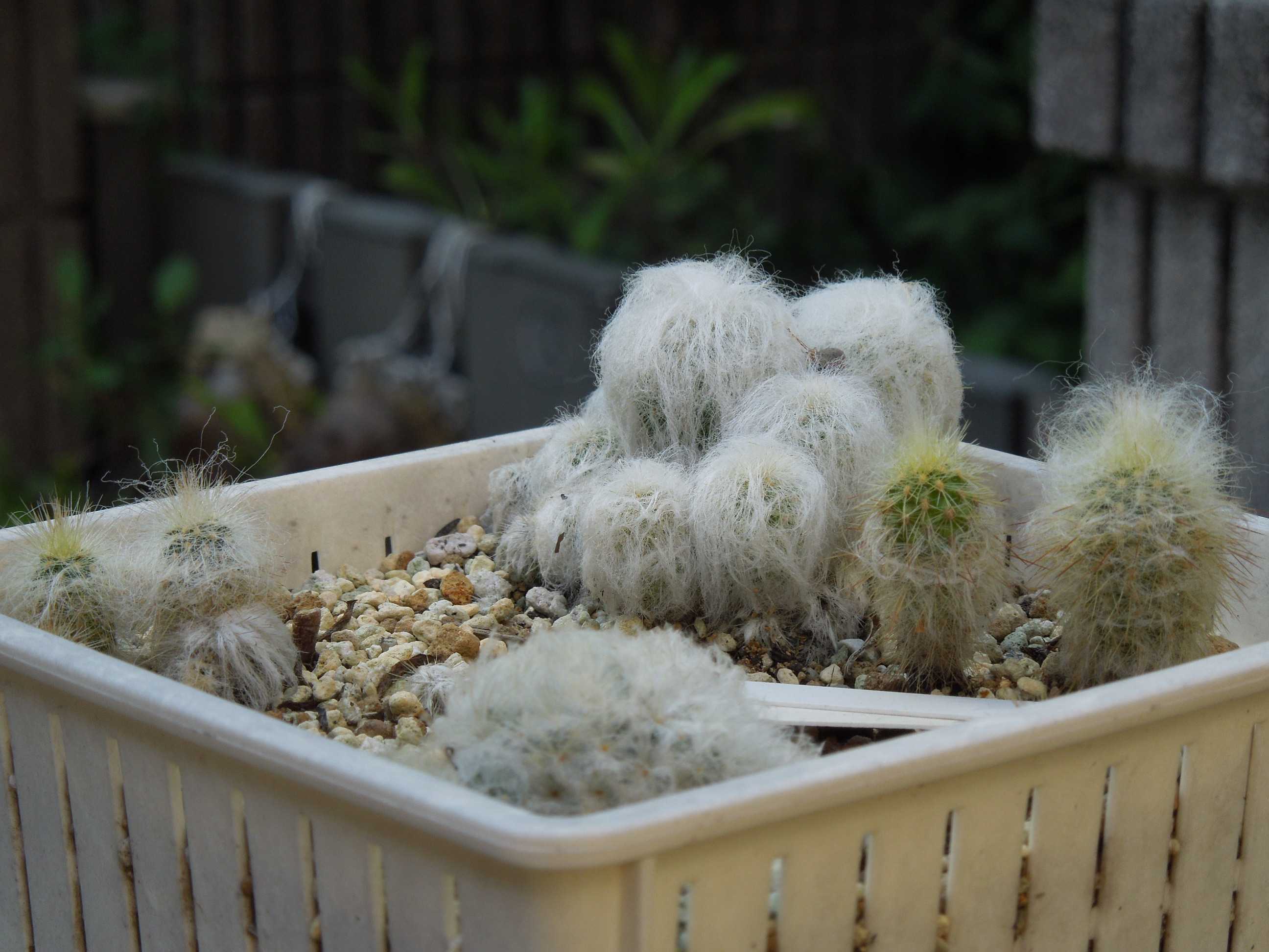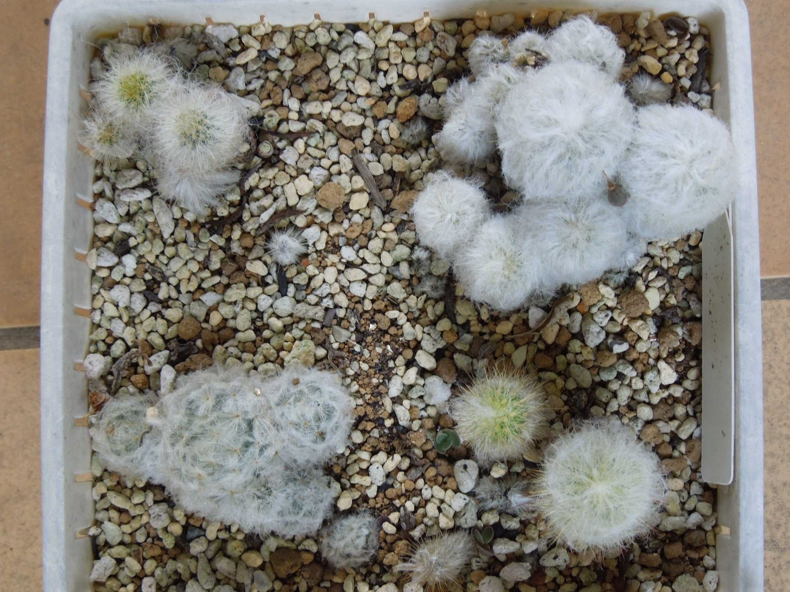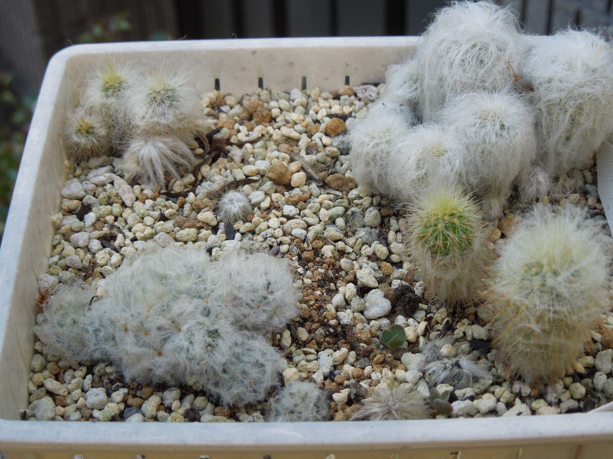春に蒔いたバレーボールくらいの大きさの、名前を忘れたフェロカクタスの種子からの実生苗。