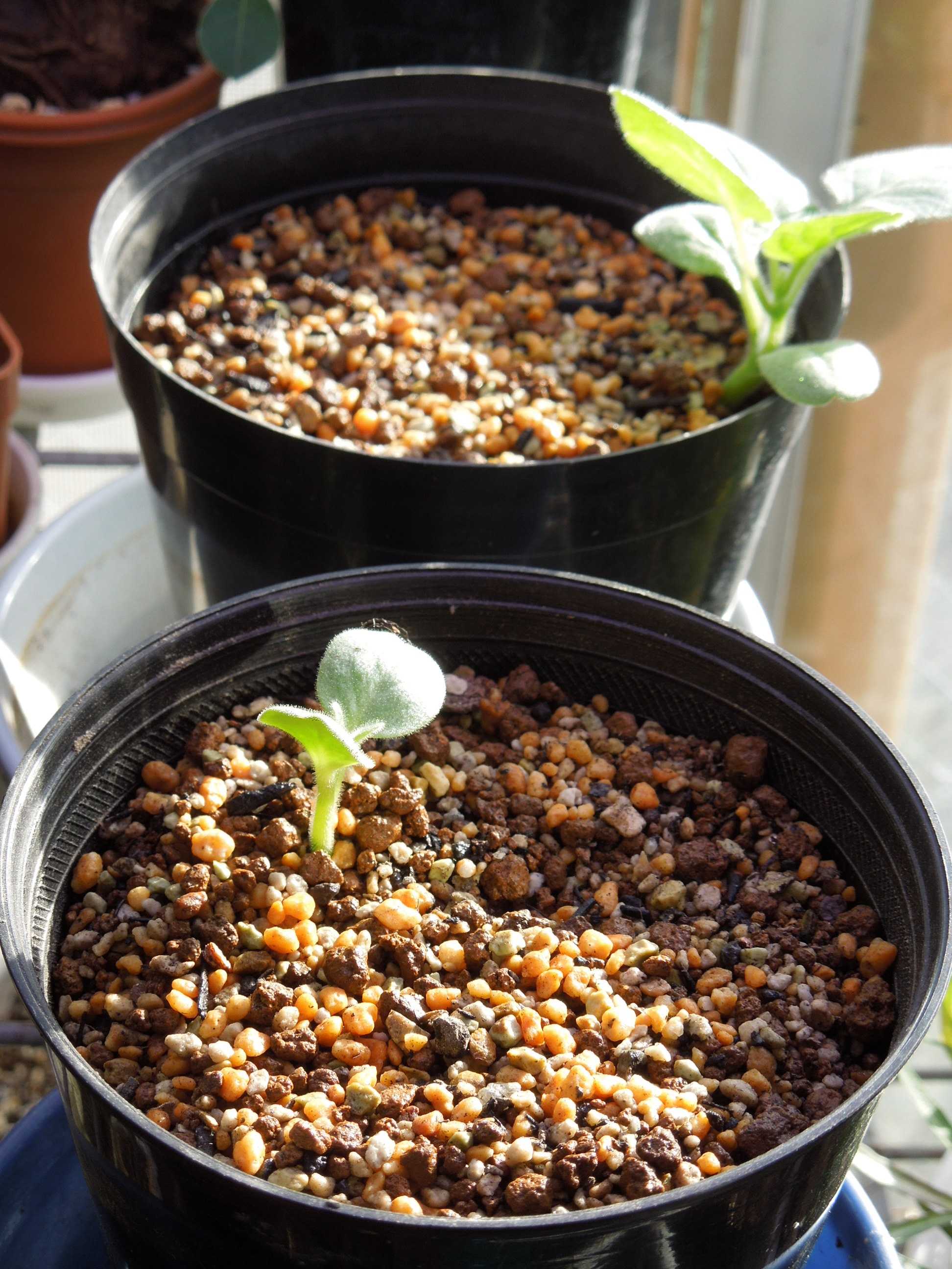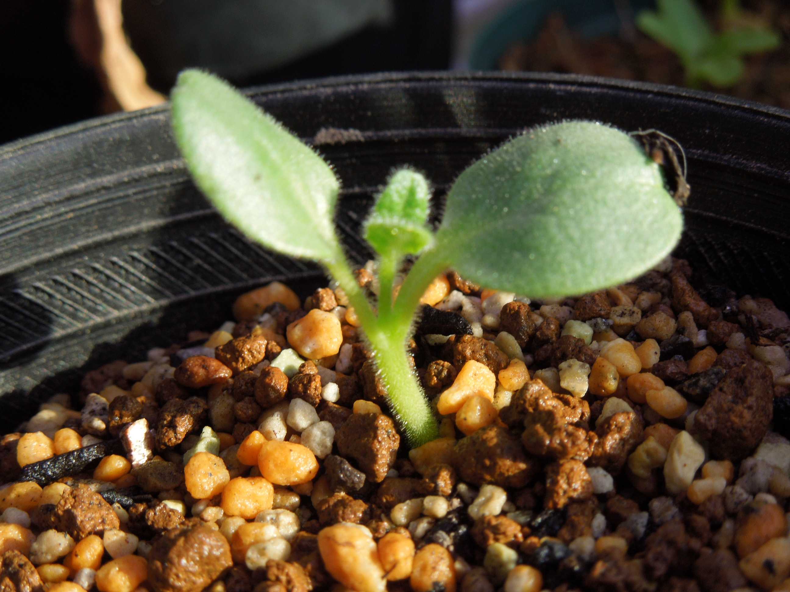 どちらの鉢も7個ずつ蒔いて1個発芽。