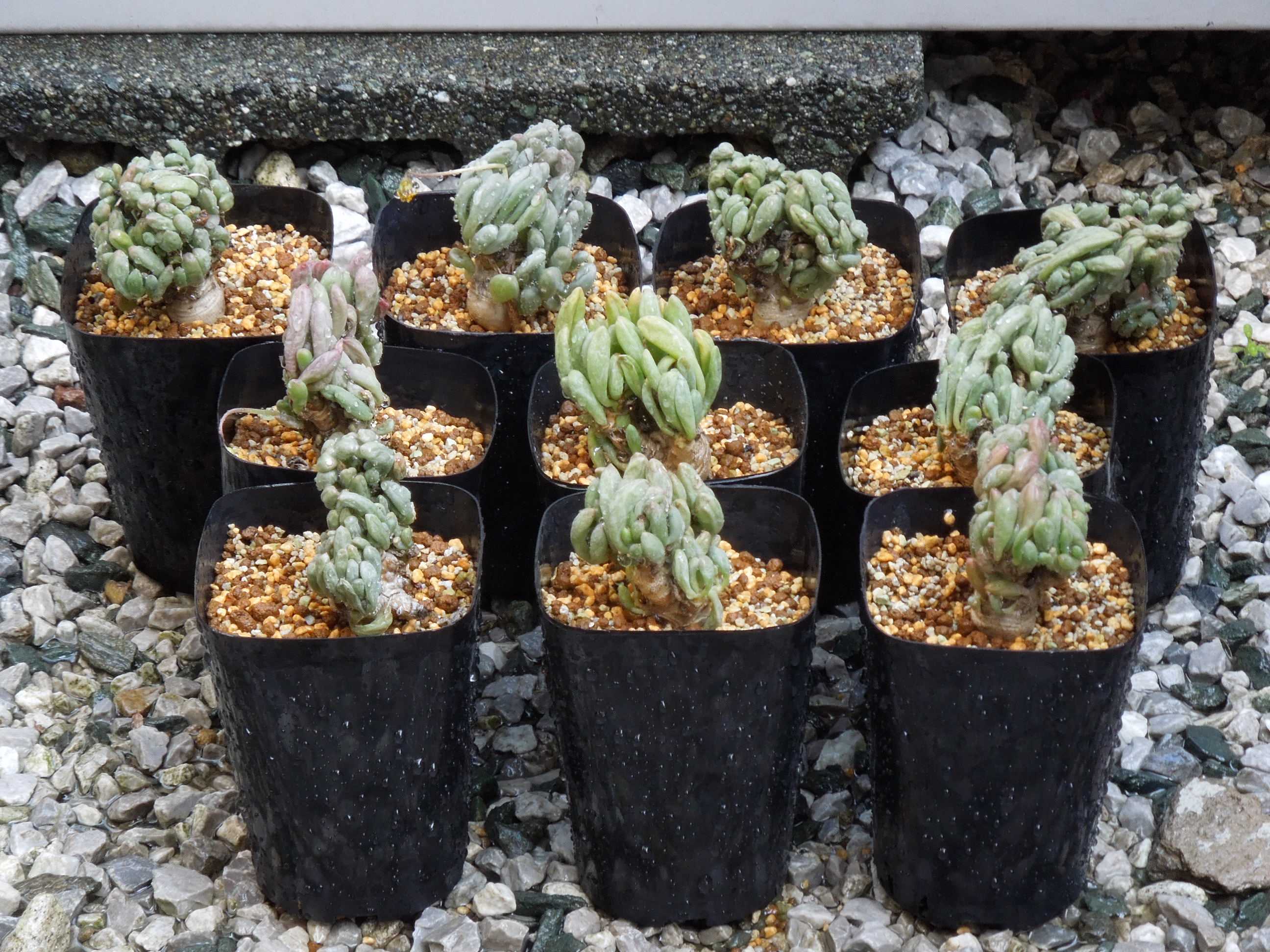 出窓と窓際の多肉棚にも置いてあるが、室内用温室に置いた物が一番調子が良さそうだ。