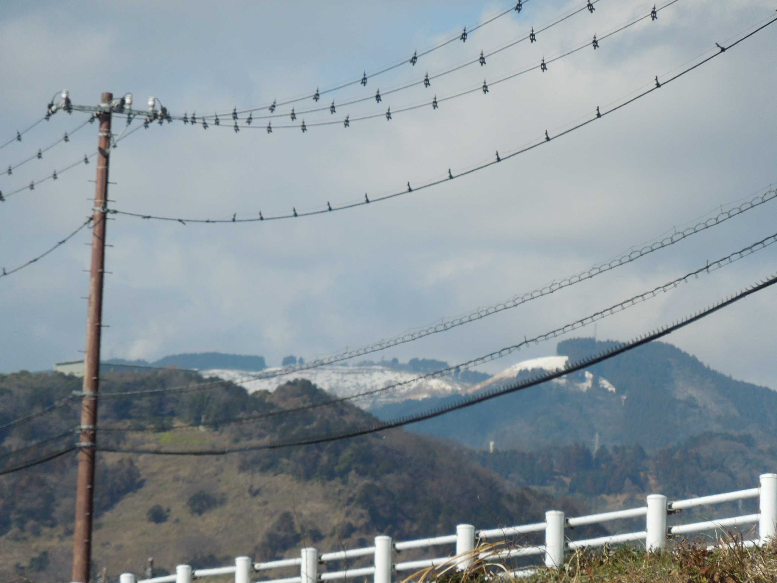 春から秋まで放牧が行われる大野山にはうっすらと雪が積もっていた。