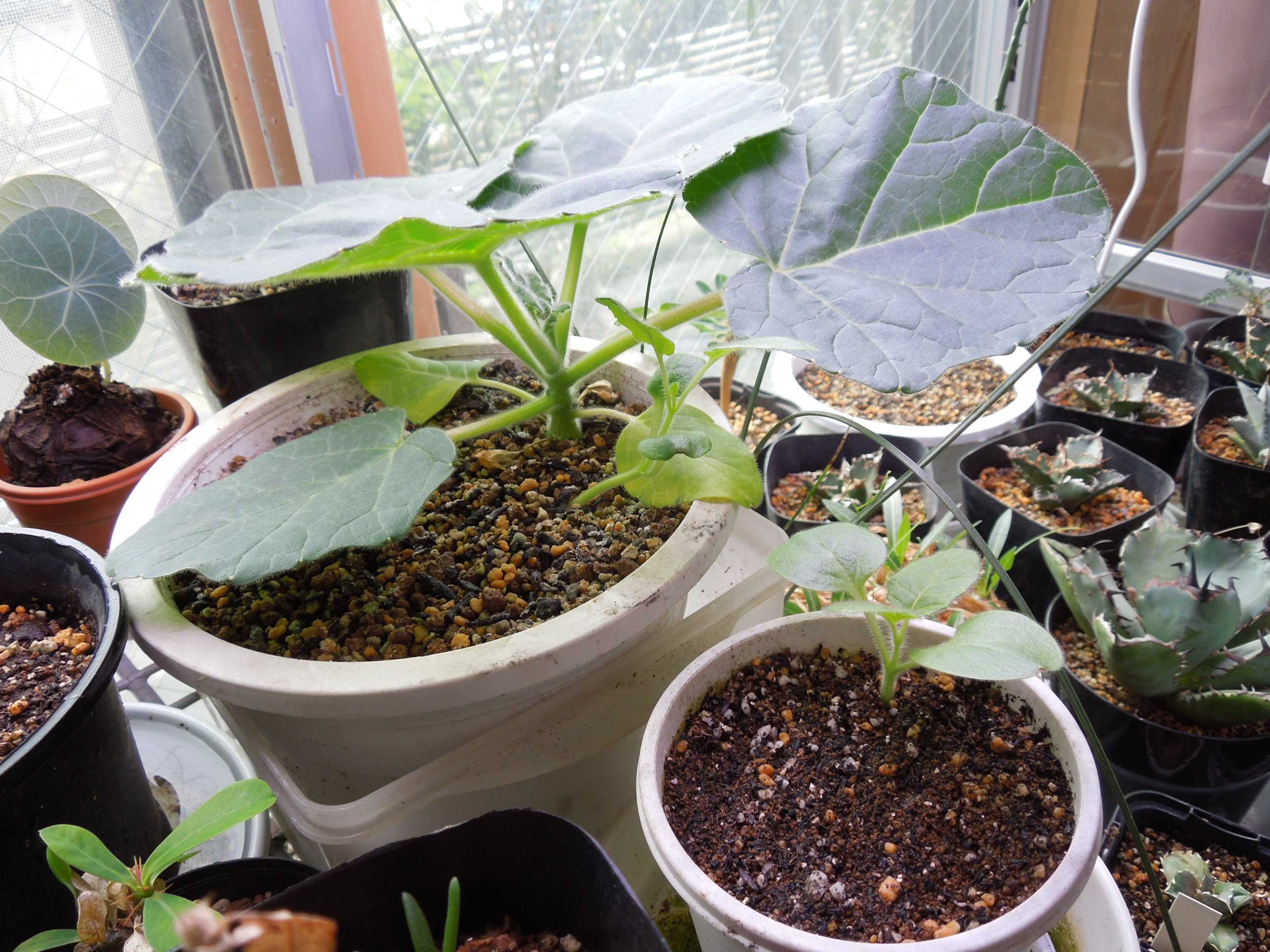 大きい鉢は12~3粒、小さい鉢は5~6粒蒔いた。