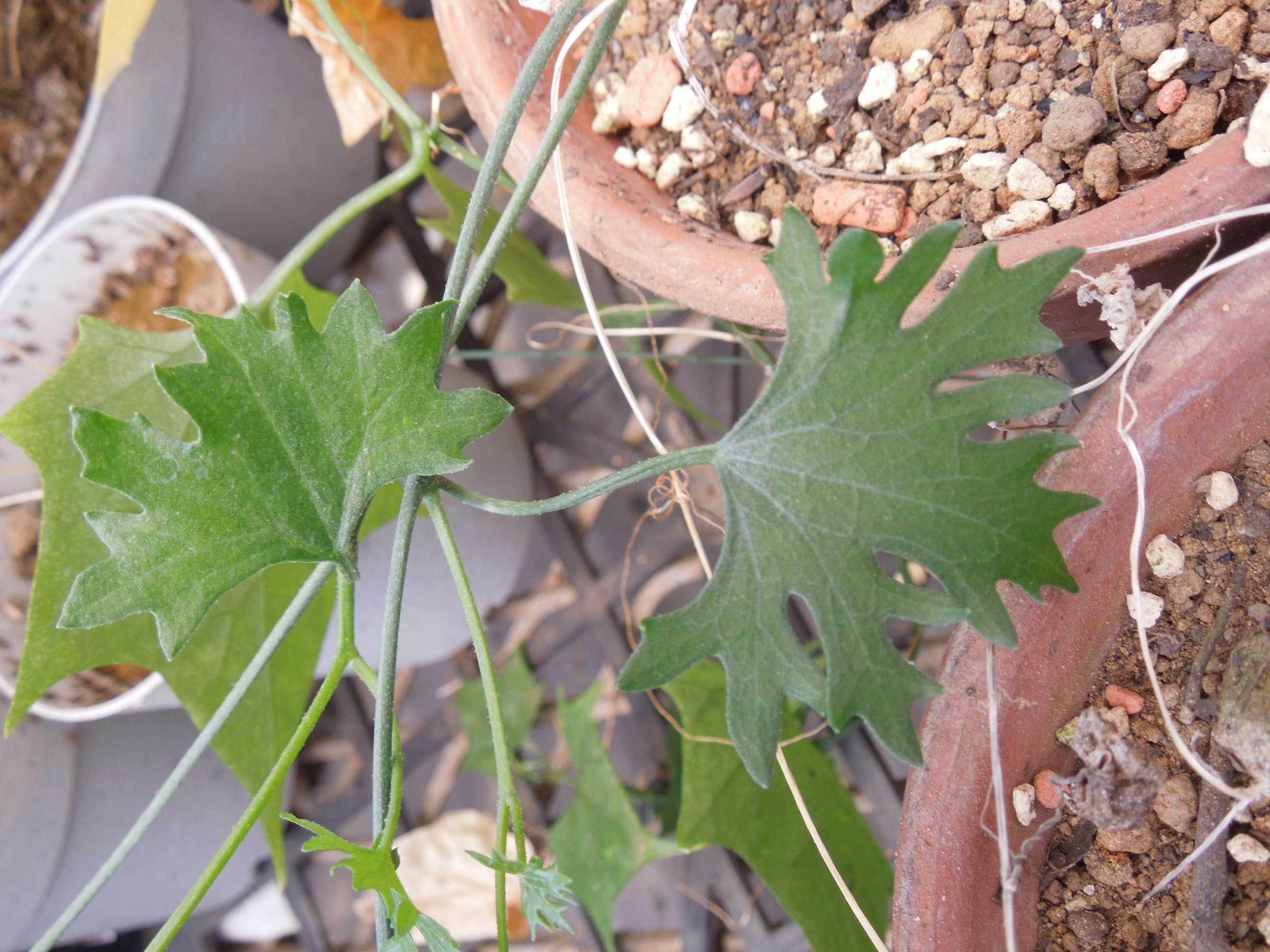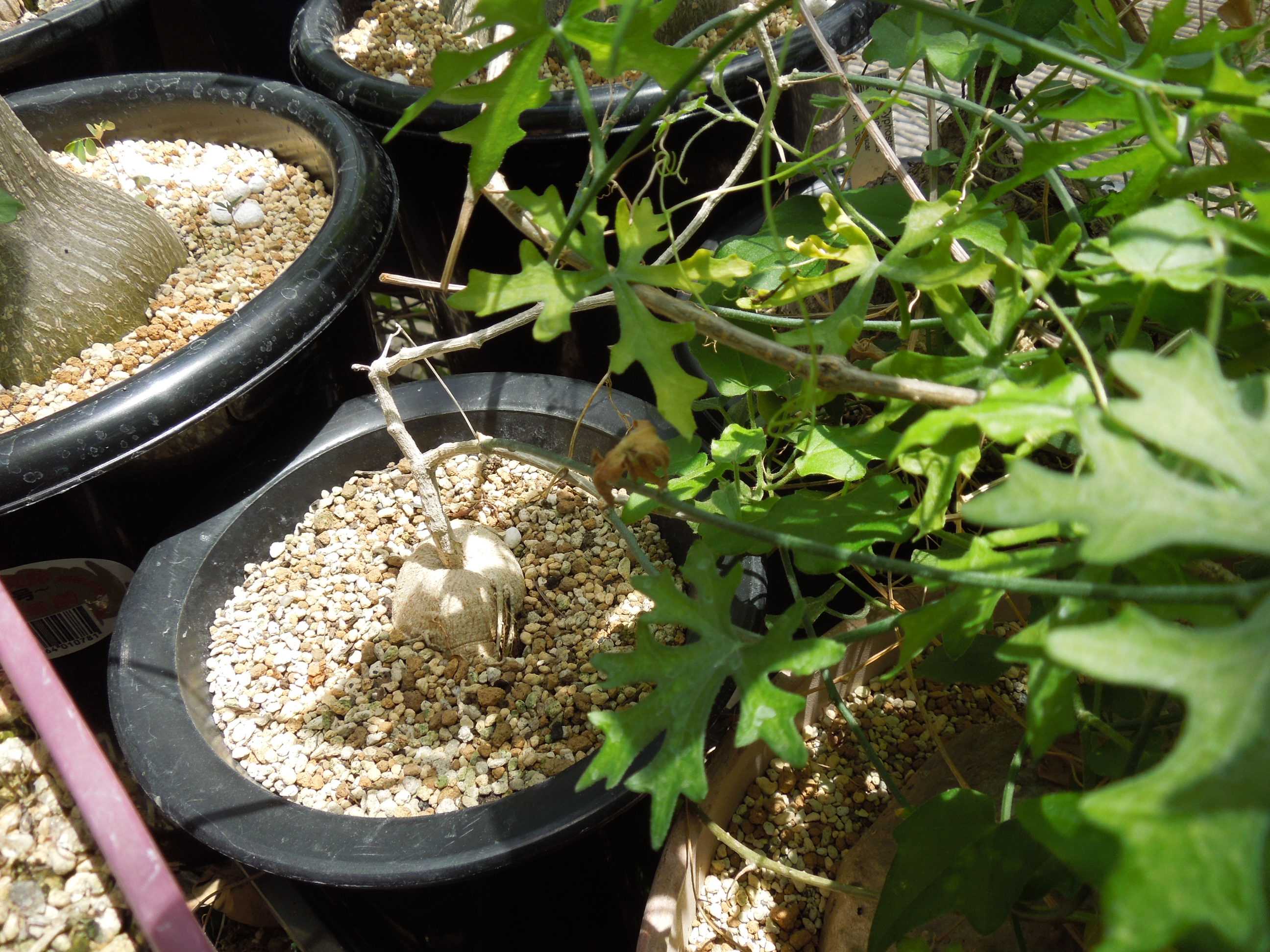 塊根に近い部分は今年の実生苗と同じ形の葉。