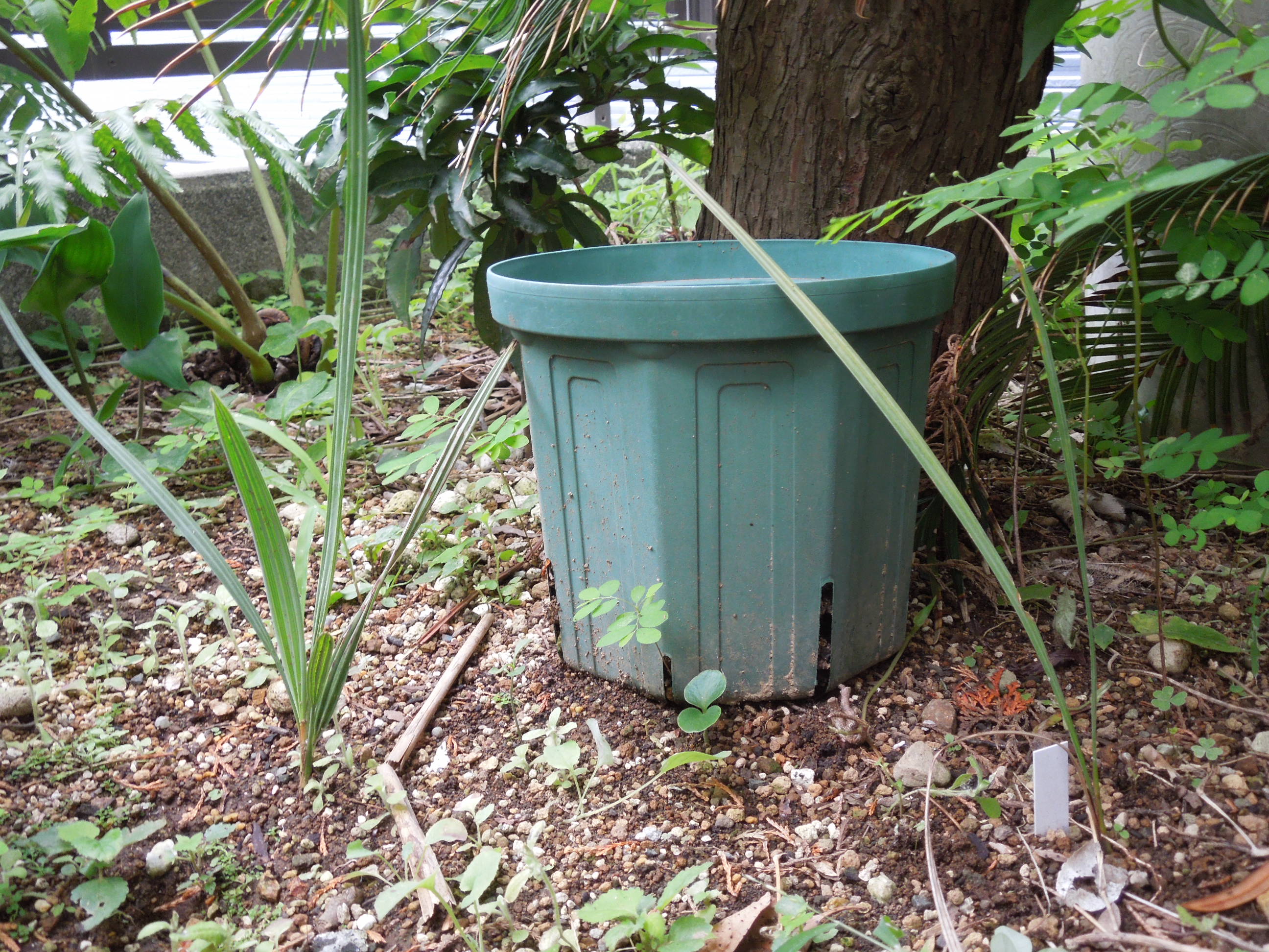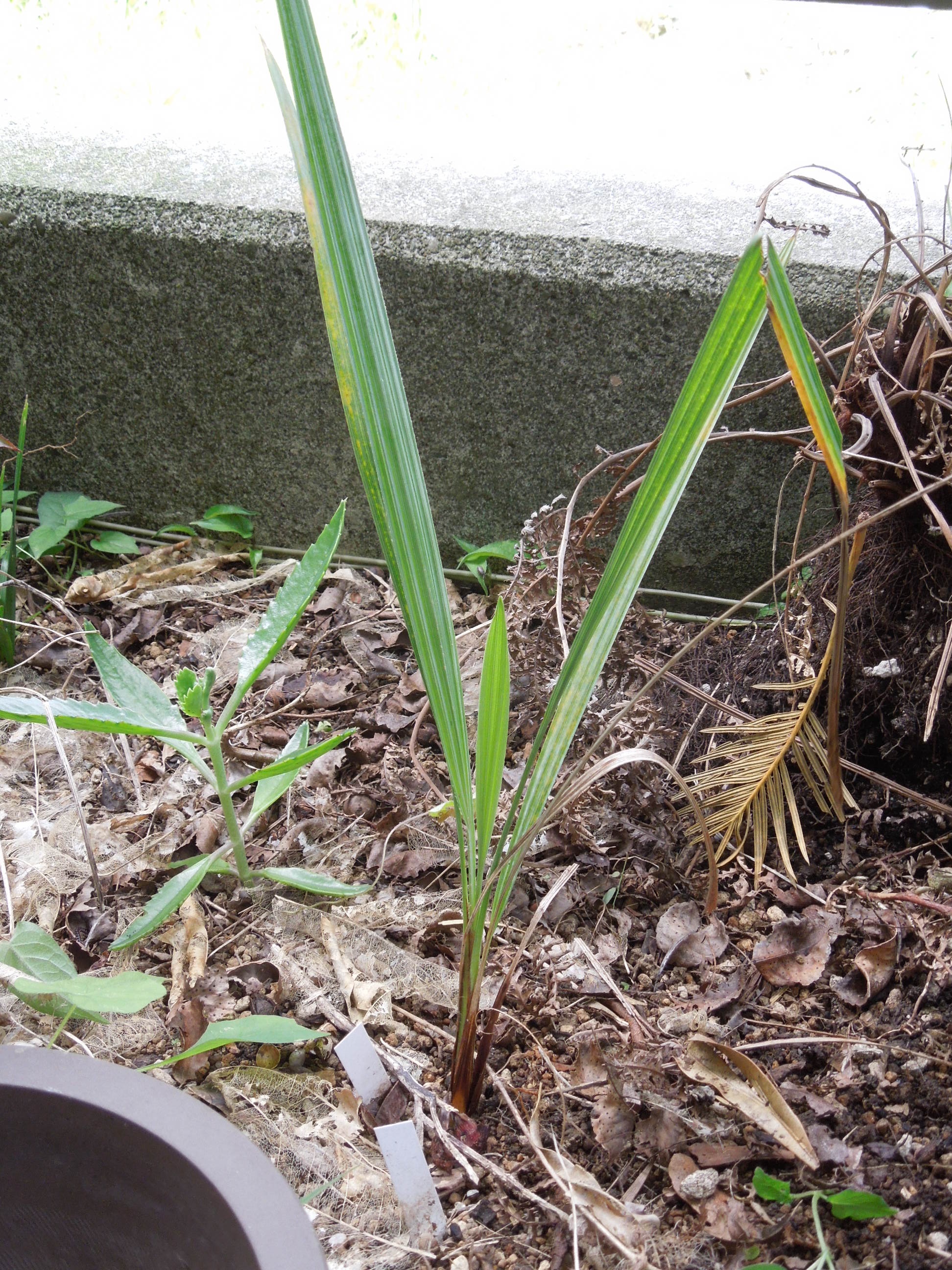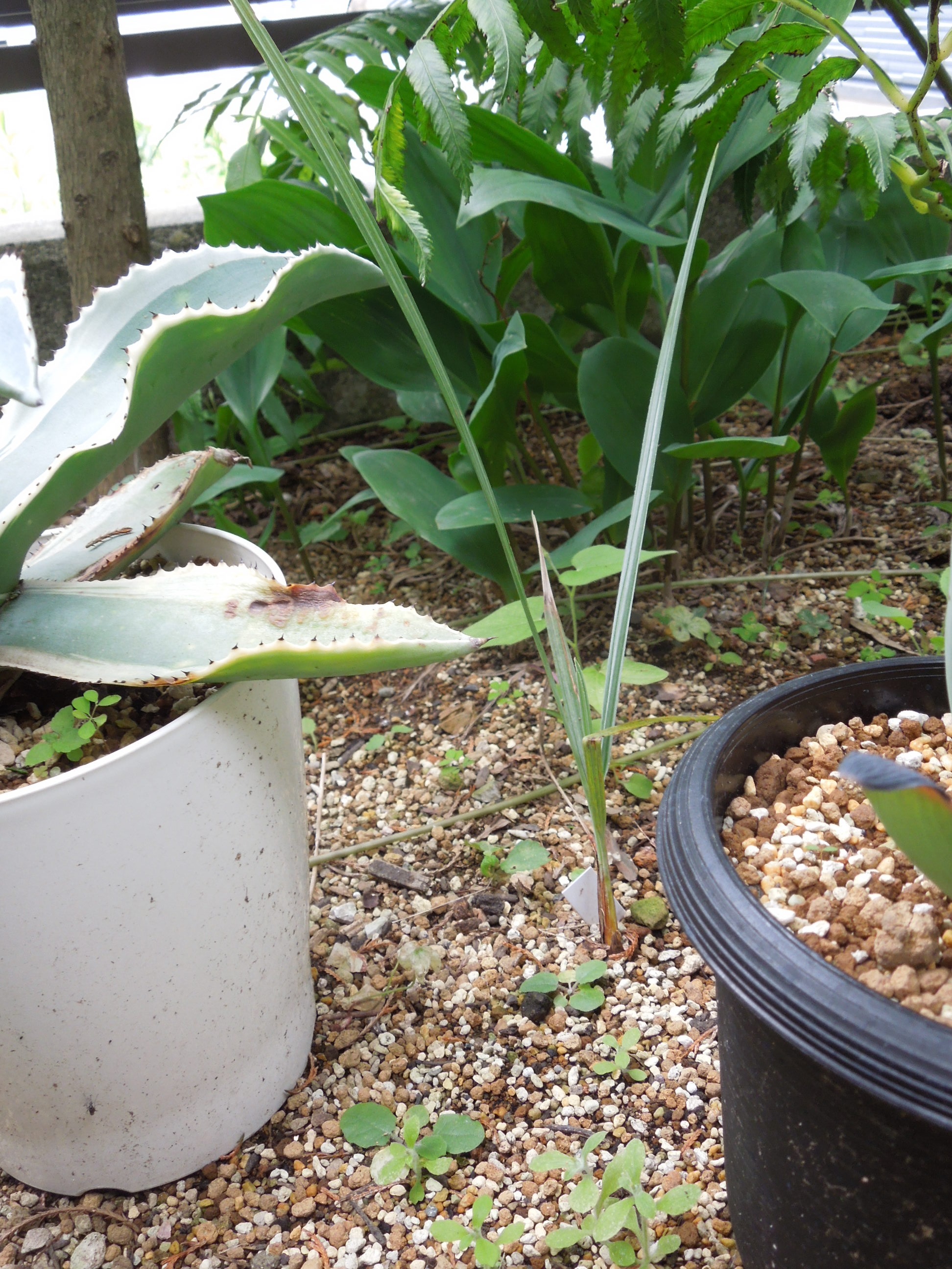 発芽種子を植えたブラヘア・アルマータ。