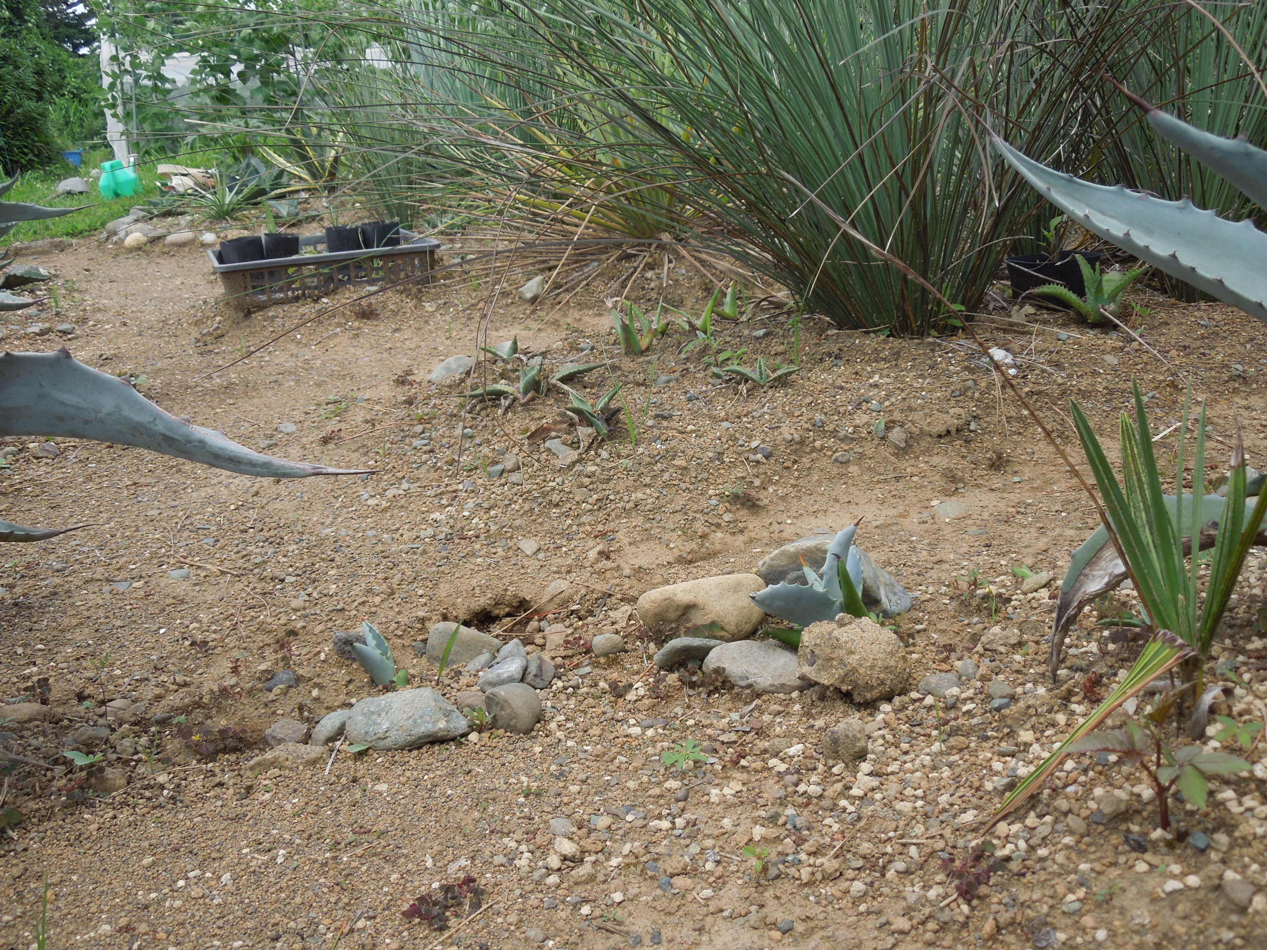 雑草だけでなく、アガベの子株も少しずつ多きなっている感じ。