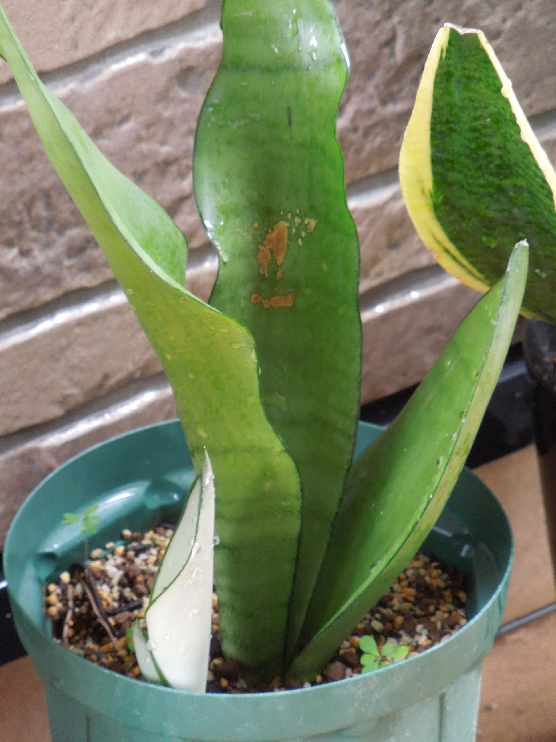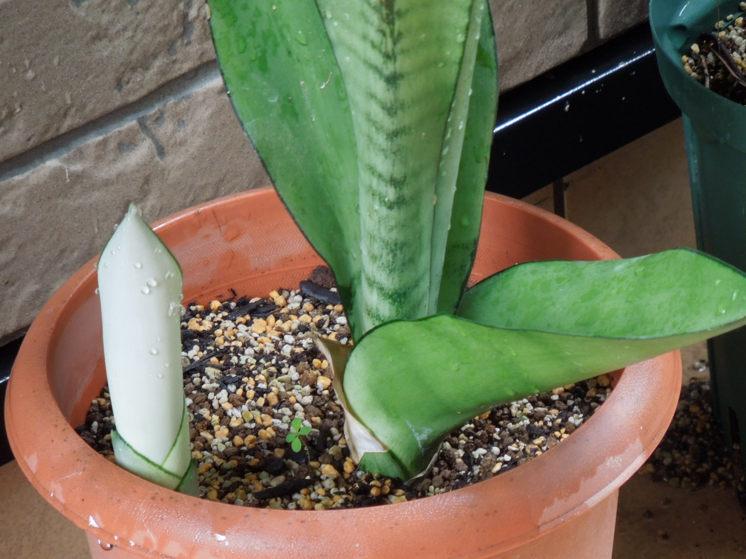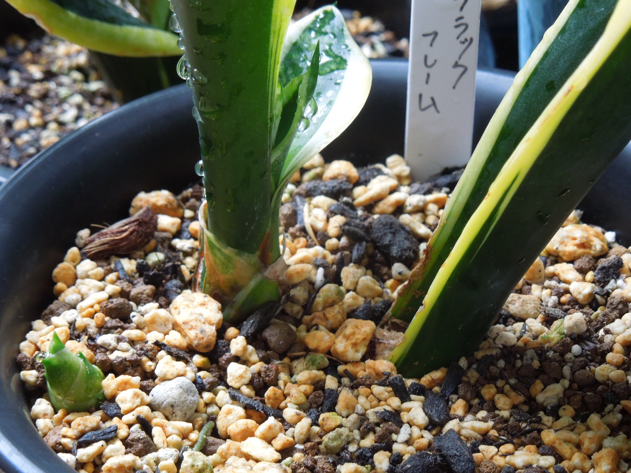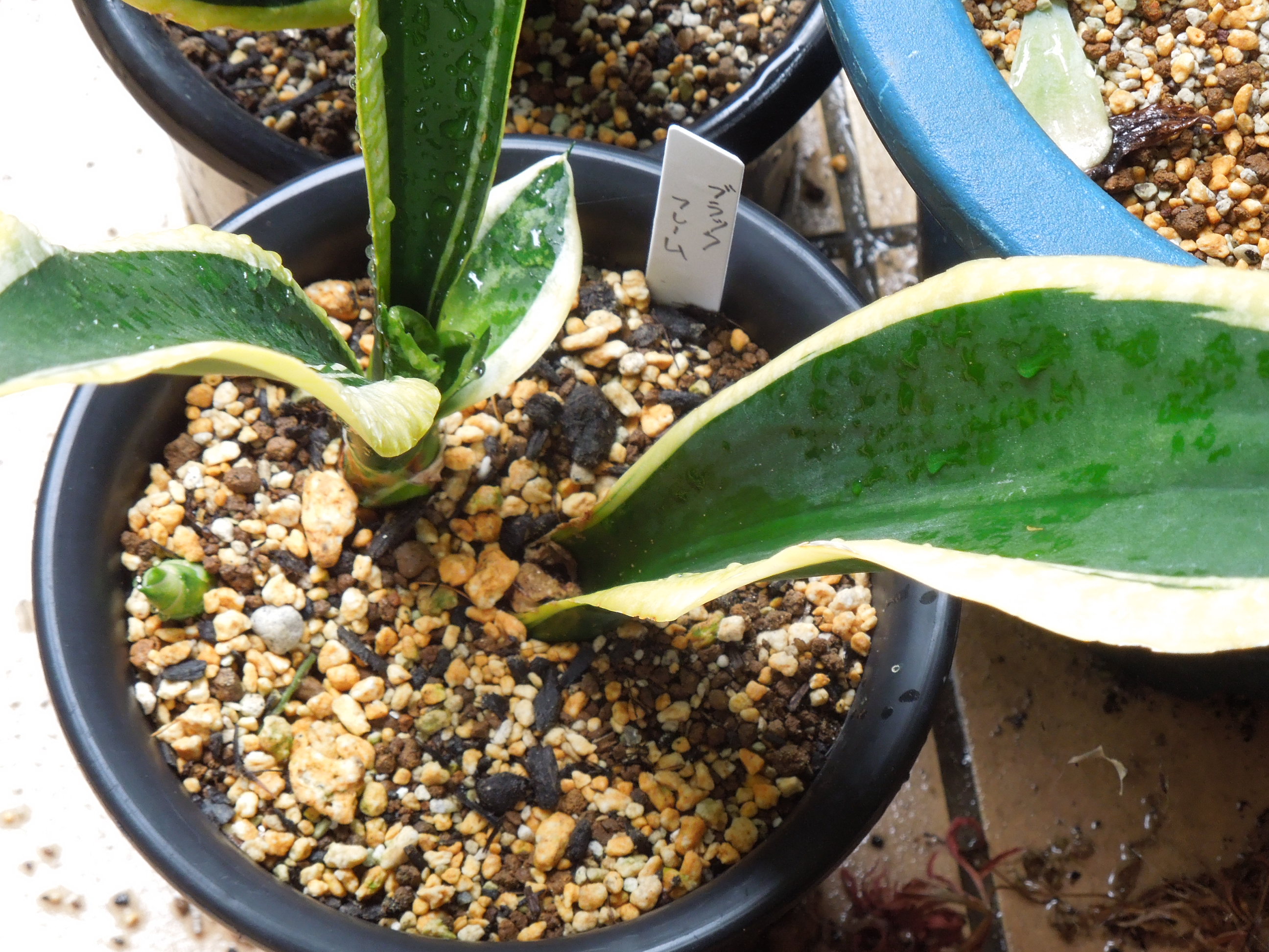 1枚だけの葉が親株、真ん中が昨年出た子株。