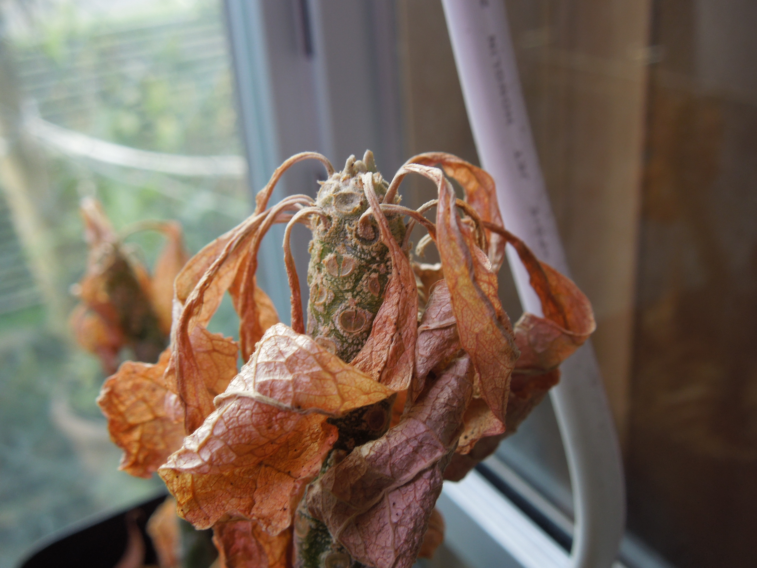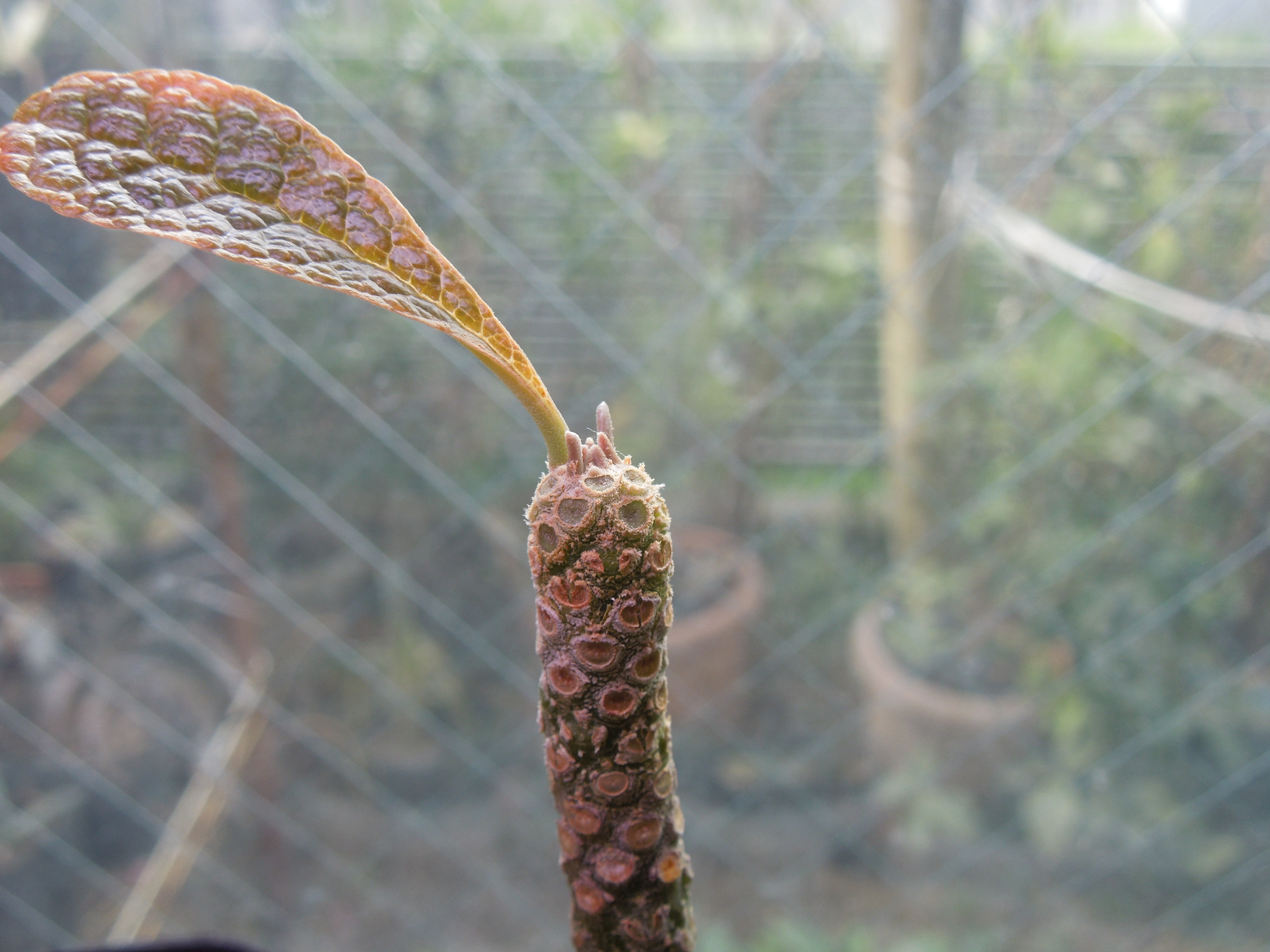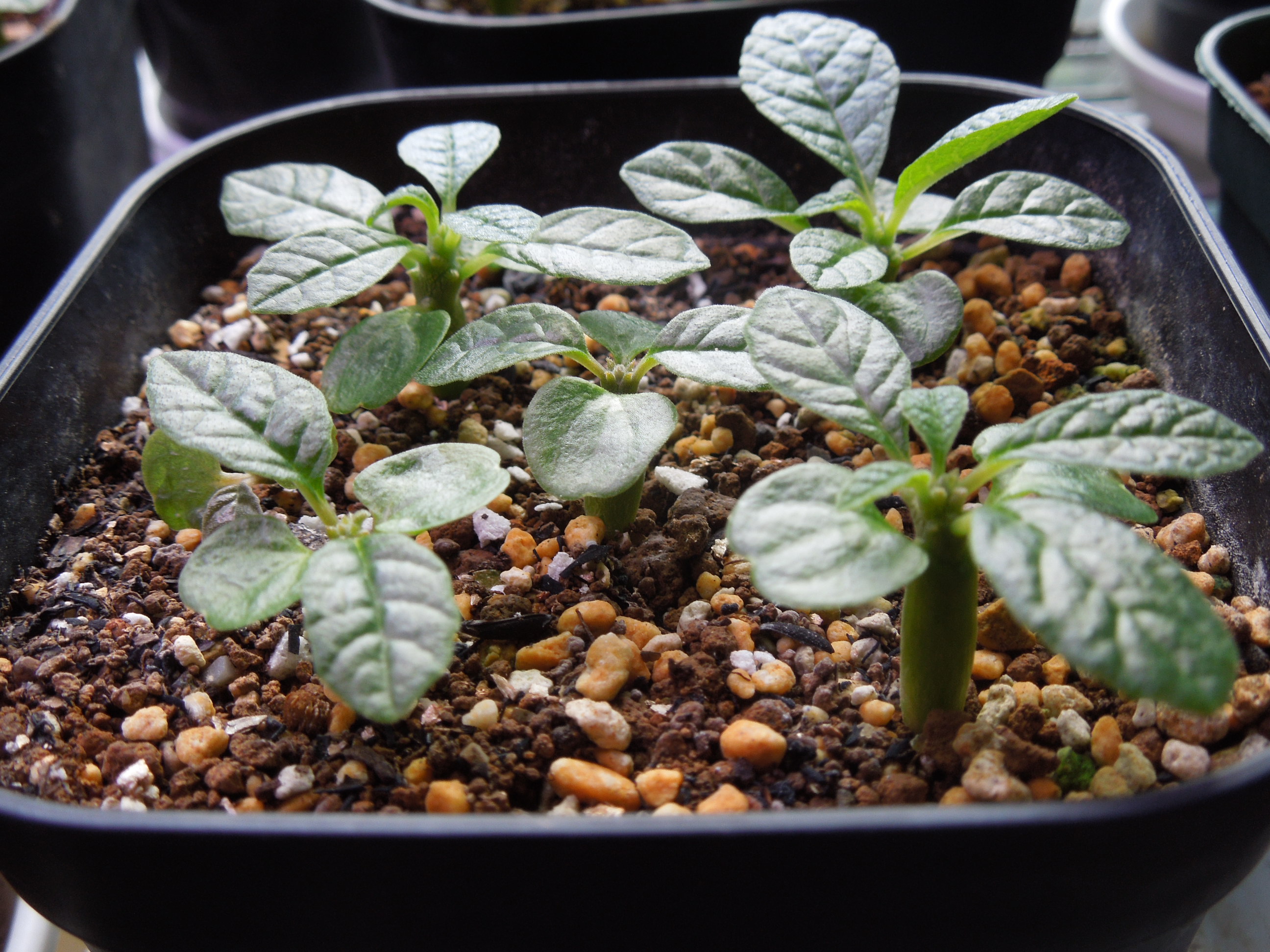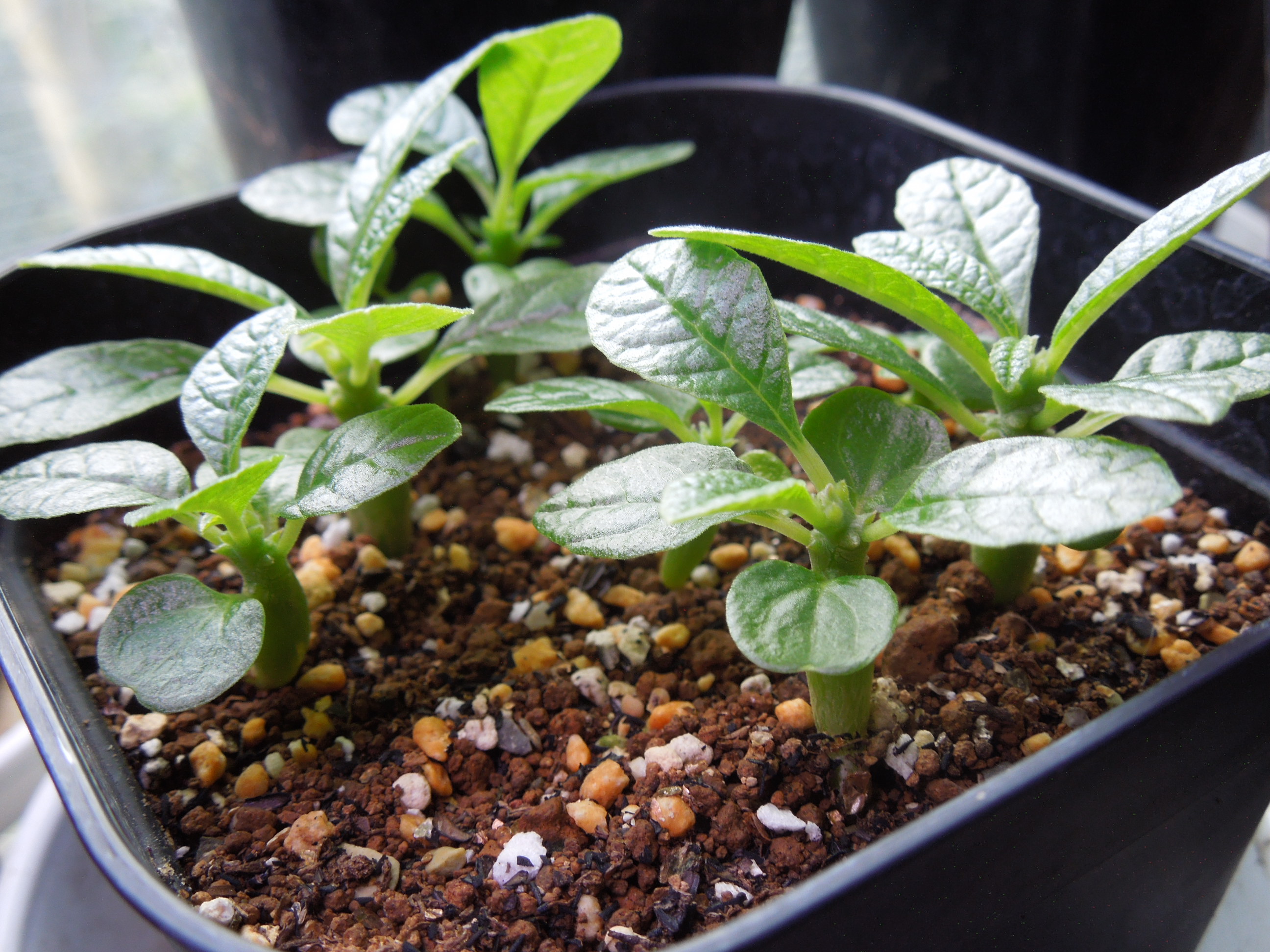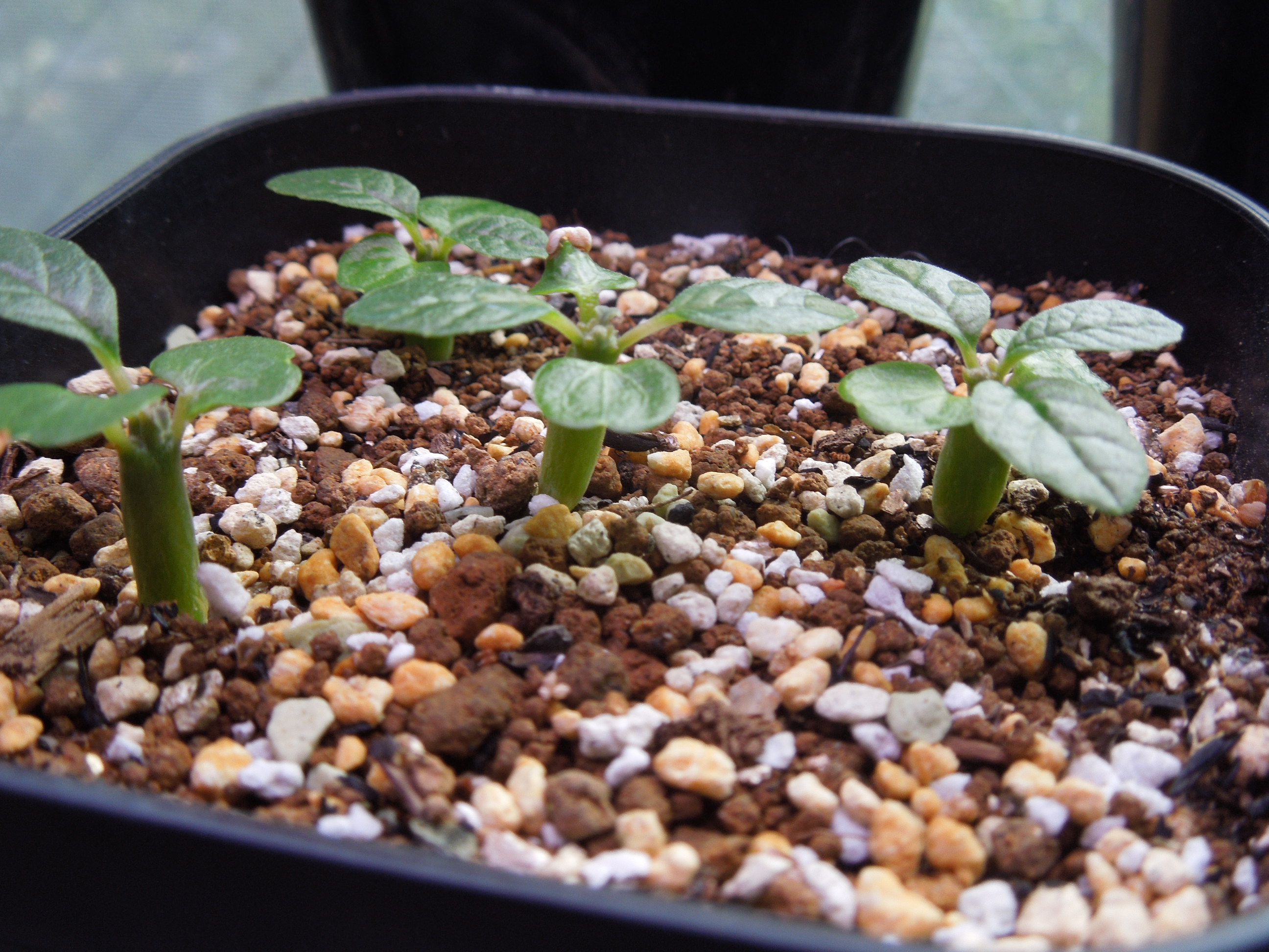 屋内用温室から出して葉を落としてしまった実生苗も、元の場所に戻したら復活。