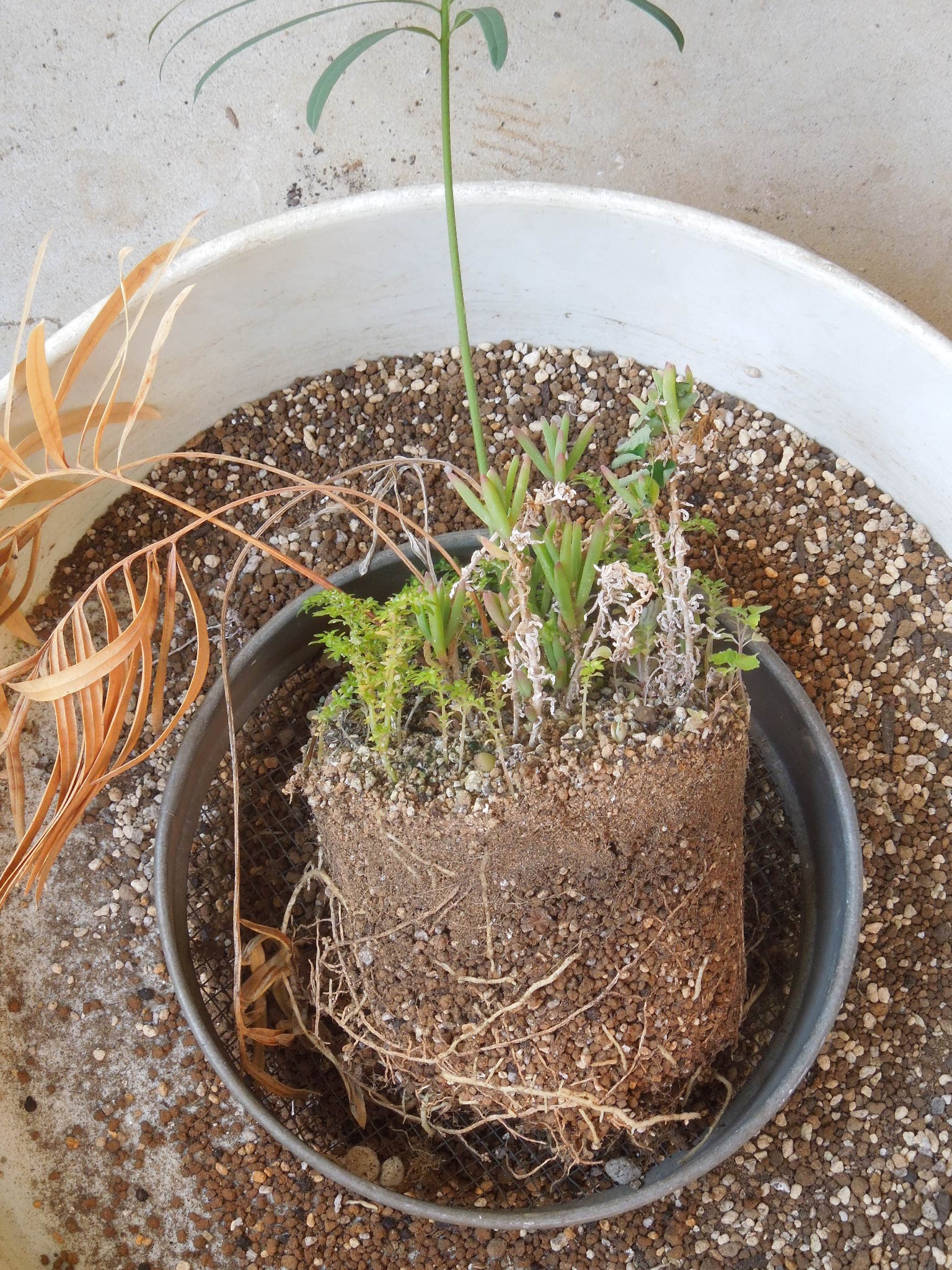 雑草だらけの大きい方も植え替え。