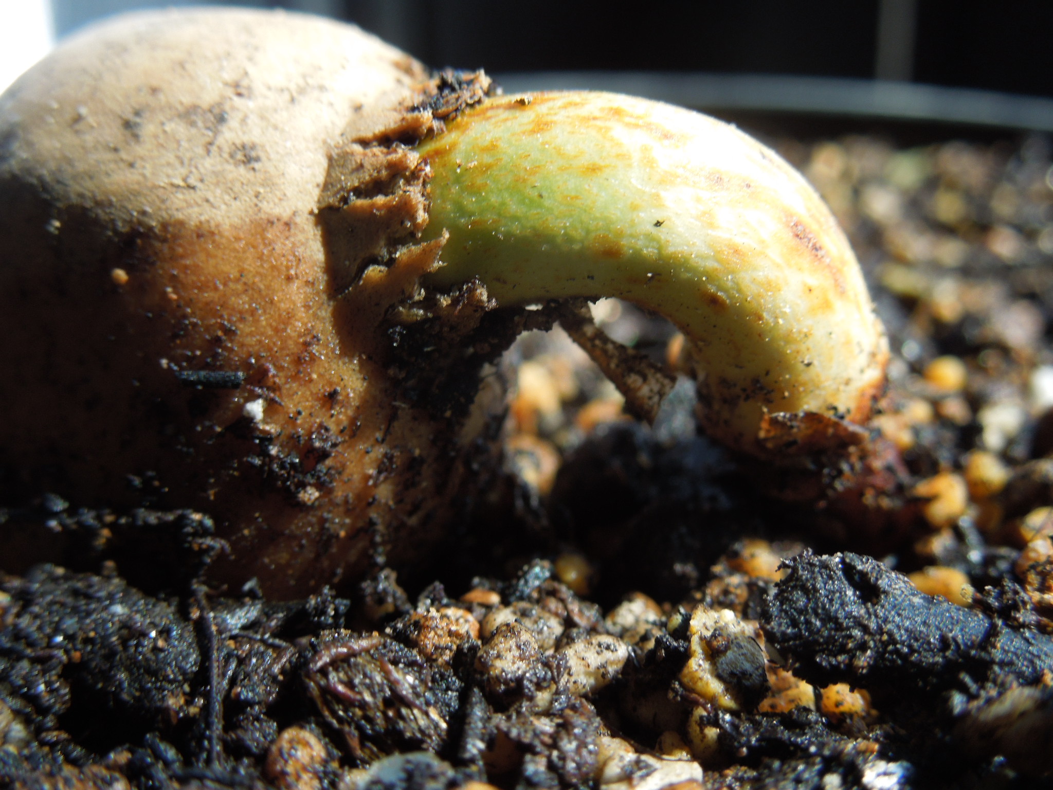 白い袋はスピヌロスム、茶色の袋はトックリヤシの袋蒔き。