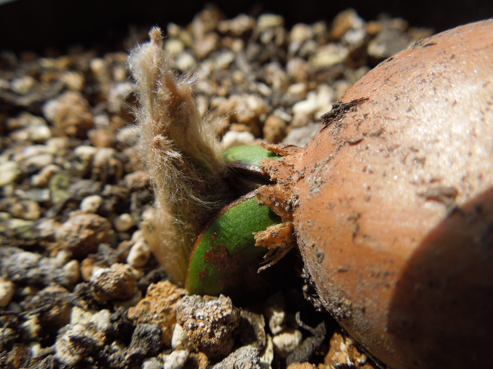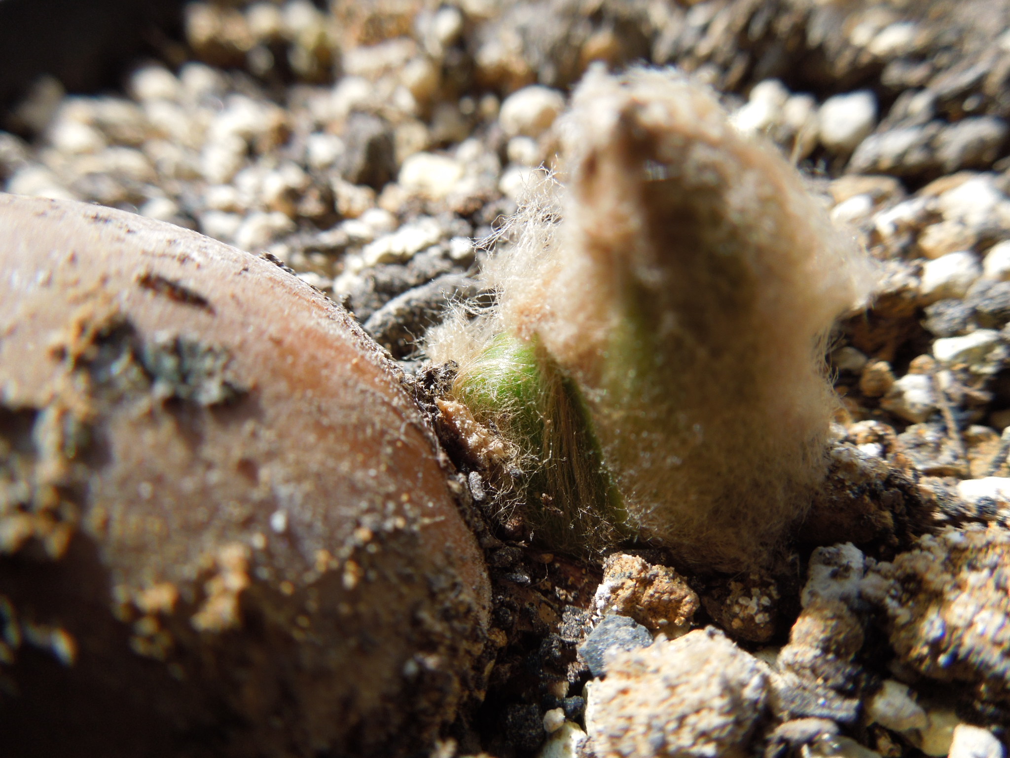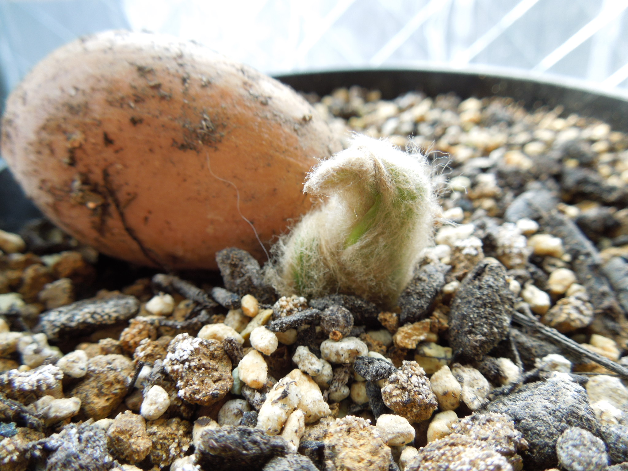前回から1週間少々、葉らしきものが見えてきた。
