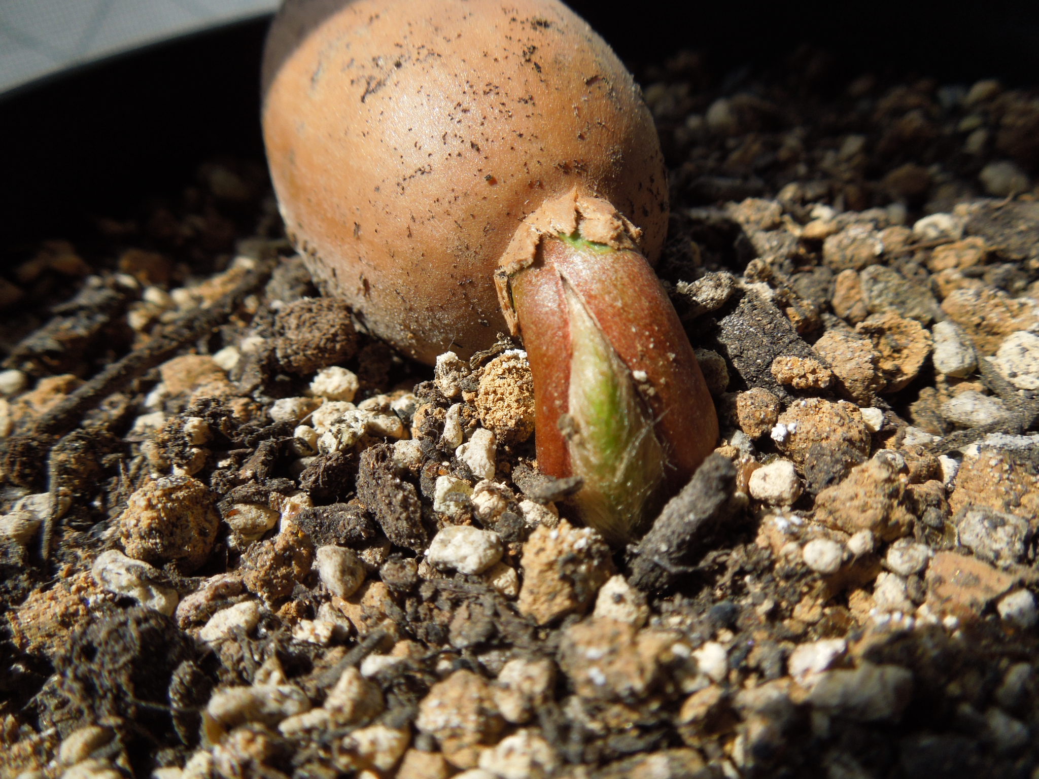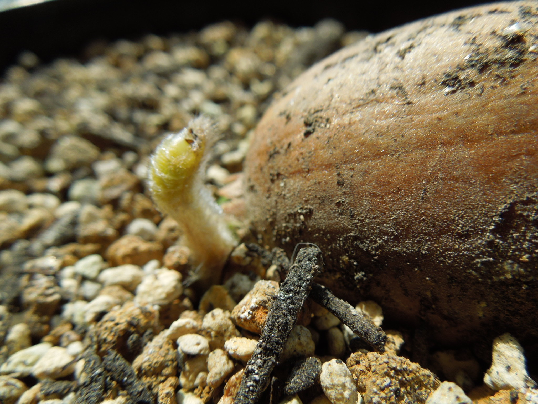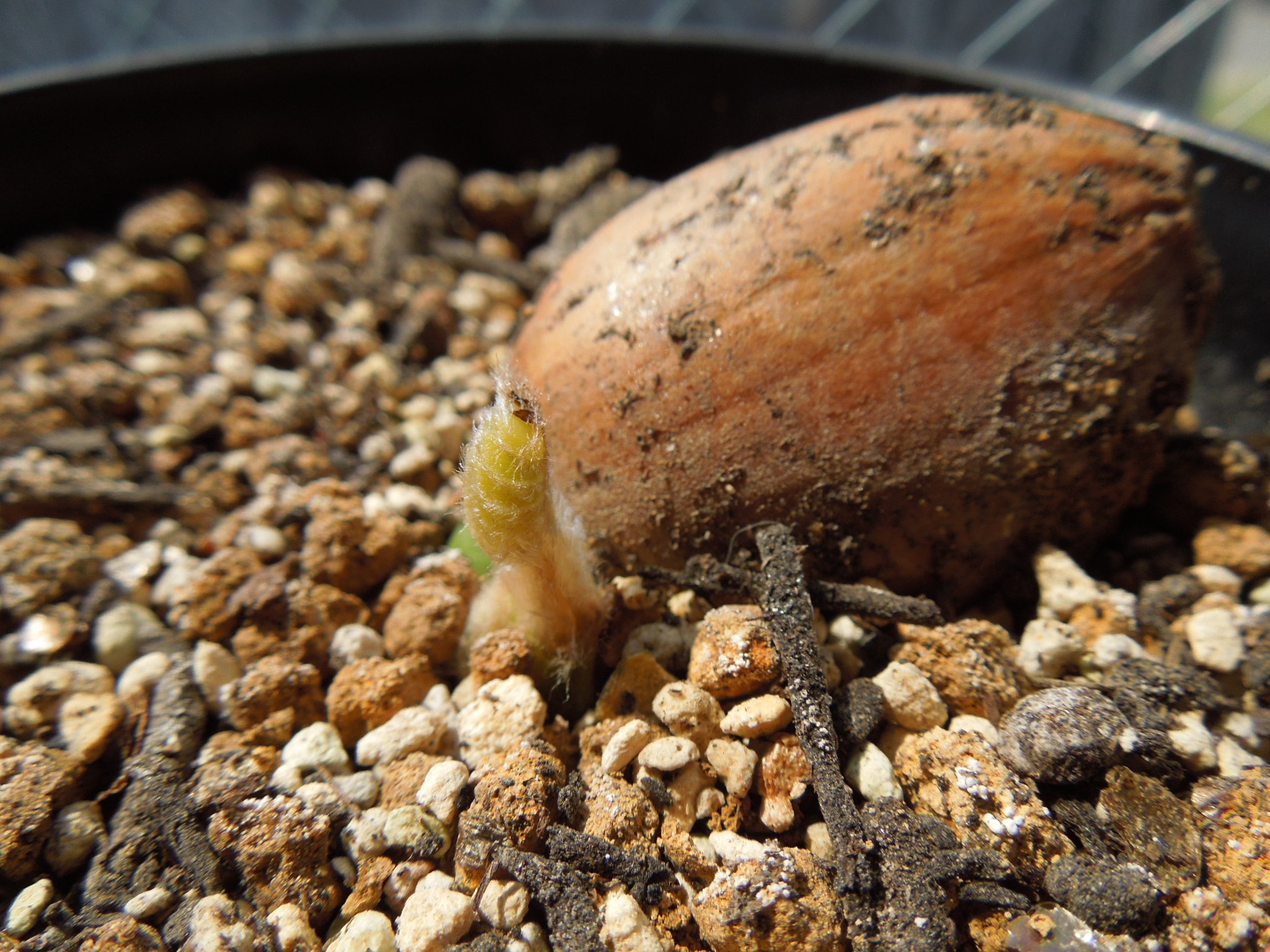 前回から1週間少々、葉らしきものが見えてきた。