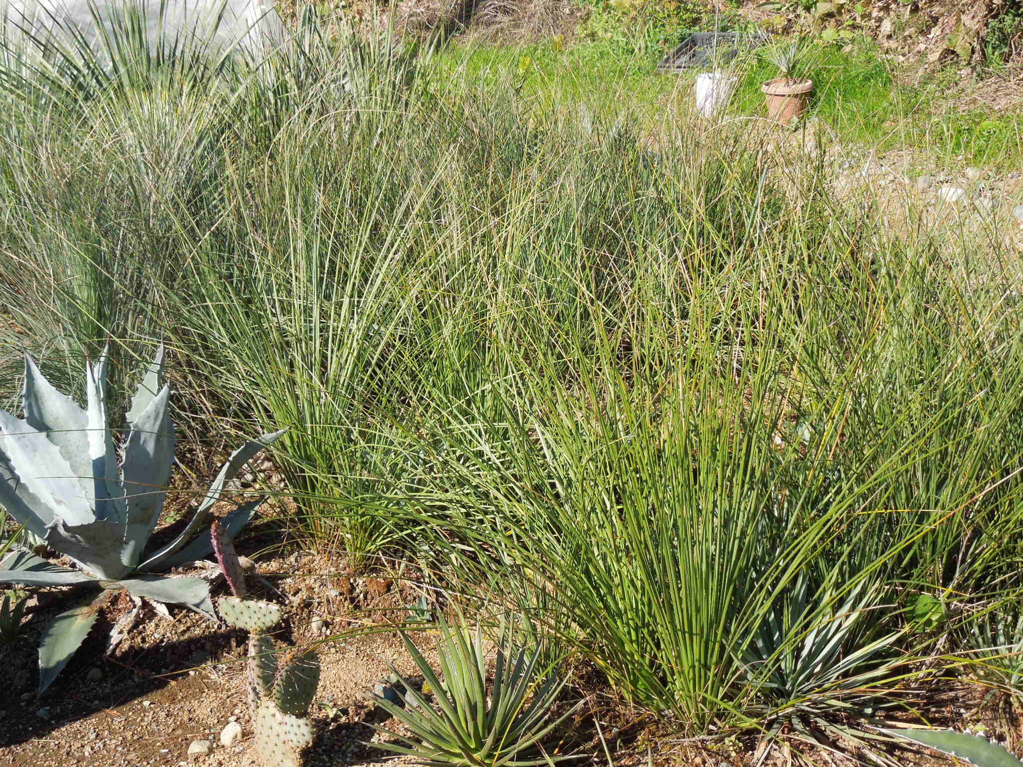 クサントロエア・グラウカ(奥)とダシリリオン・クアドラングラツム(手前)