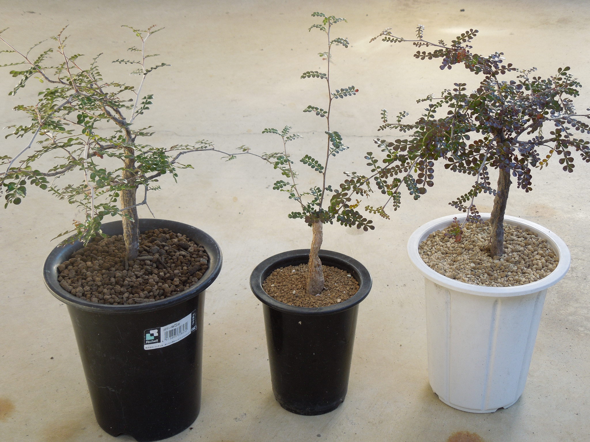左から3番目の苗は2016年に輸入した苗。