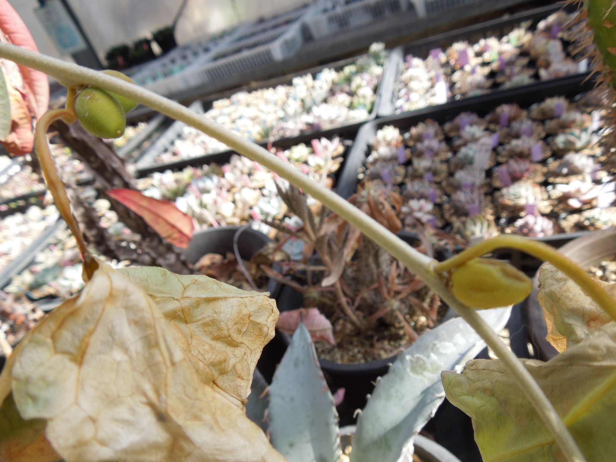 残っている実は鉢の上に落ちるように蔓を整理しておいた。