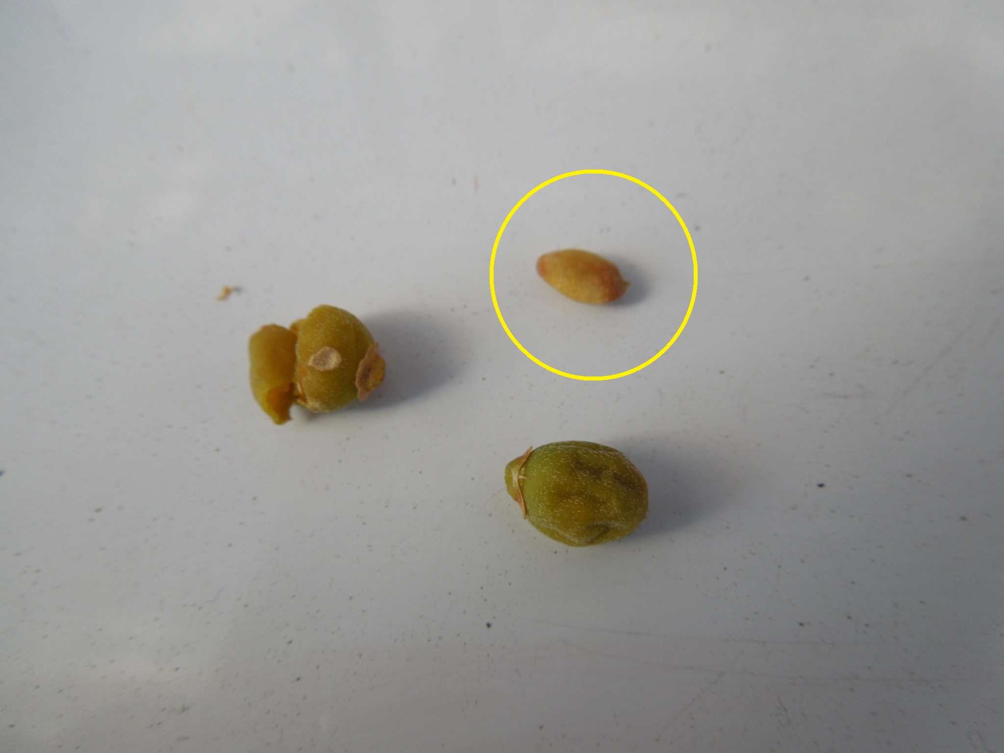 いくつか黄色くなり始めた実を採って外皮を剥いでみたが・・・
