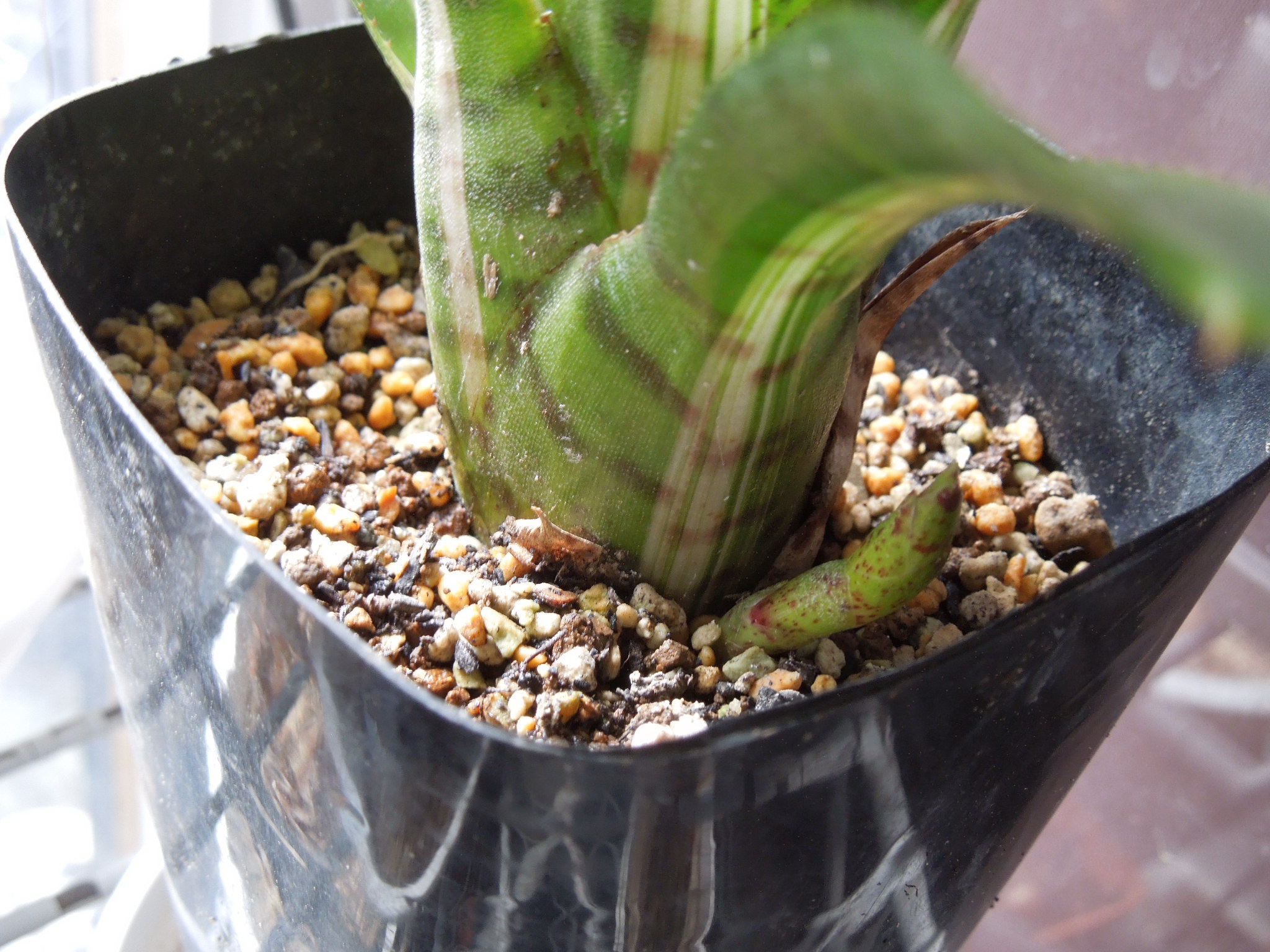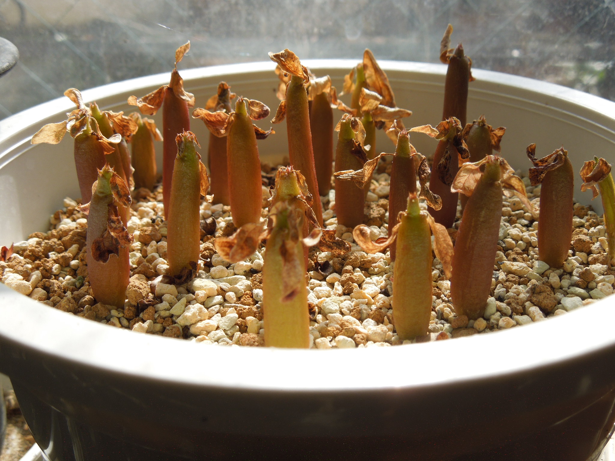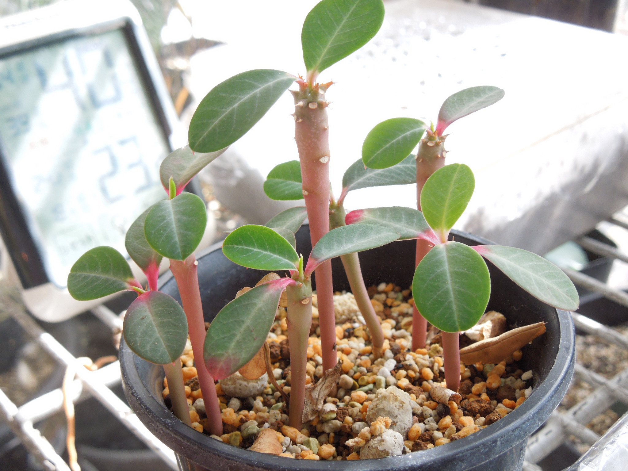 ドルステニア・ギガスの挿し木苗と実生苗。