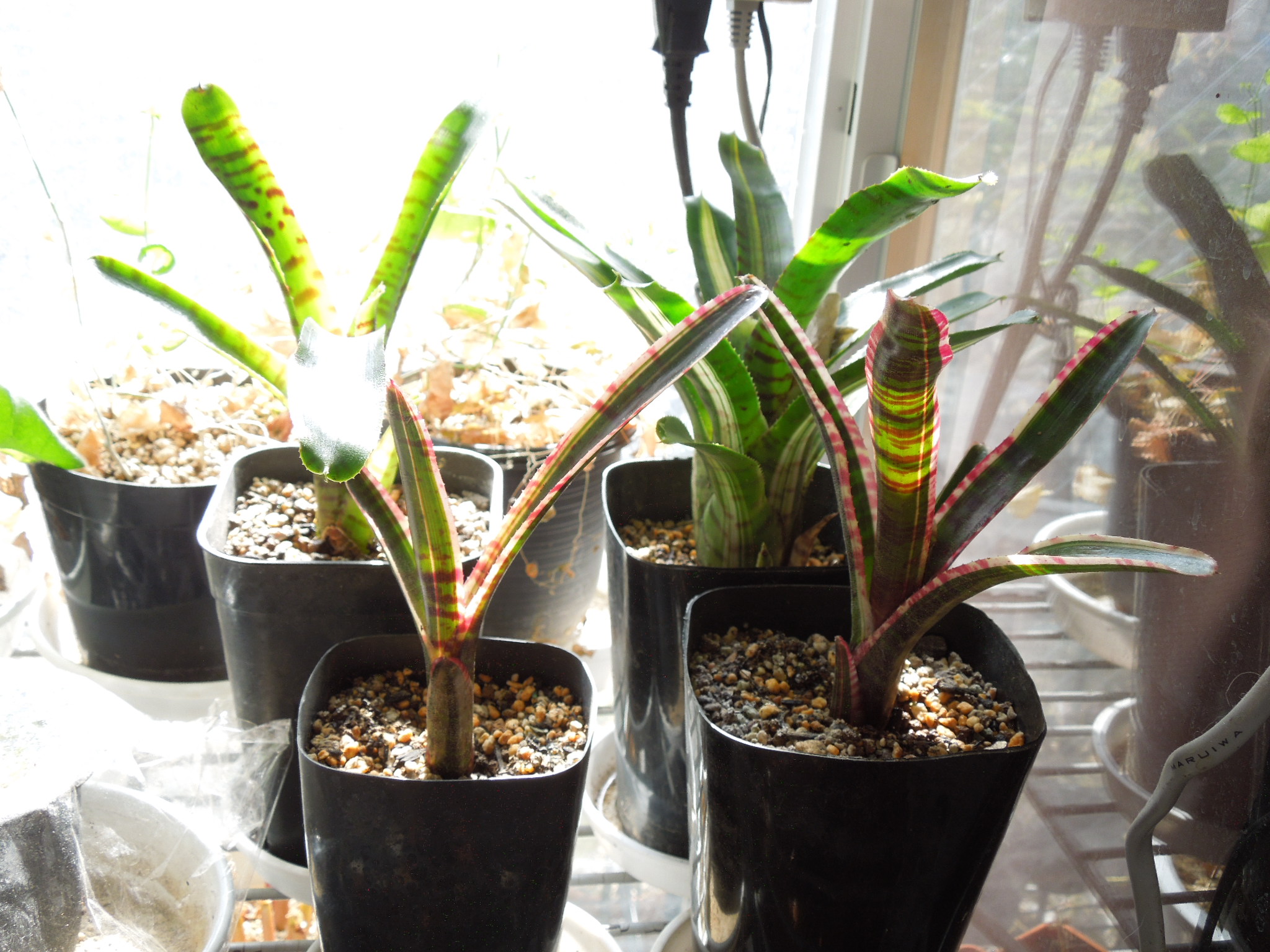 したネオレゲリアは、直射日光が当たりにくい下段で管理。