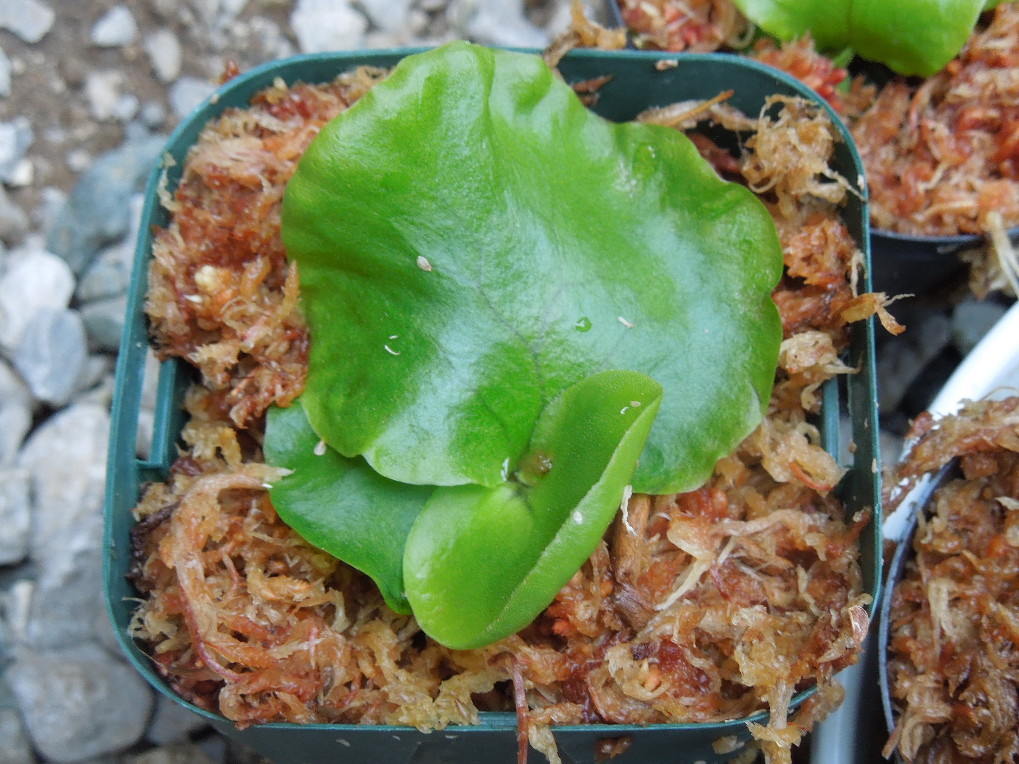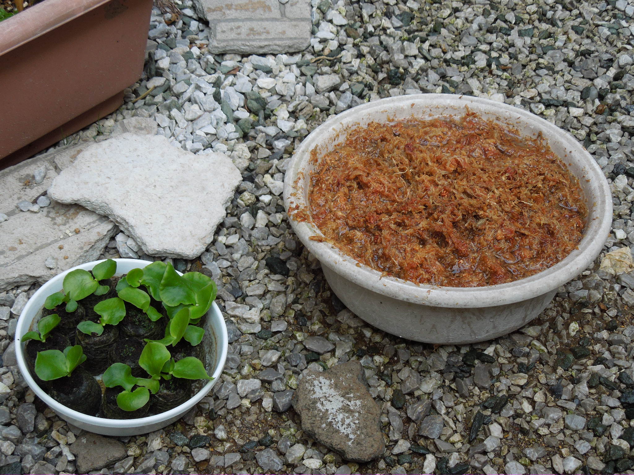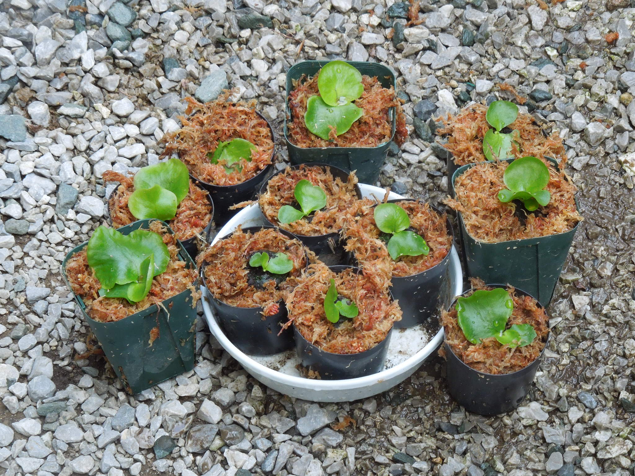 ポリポットの底にミズゴケを入れて・・・