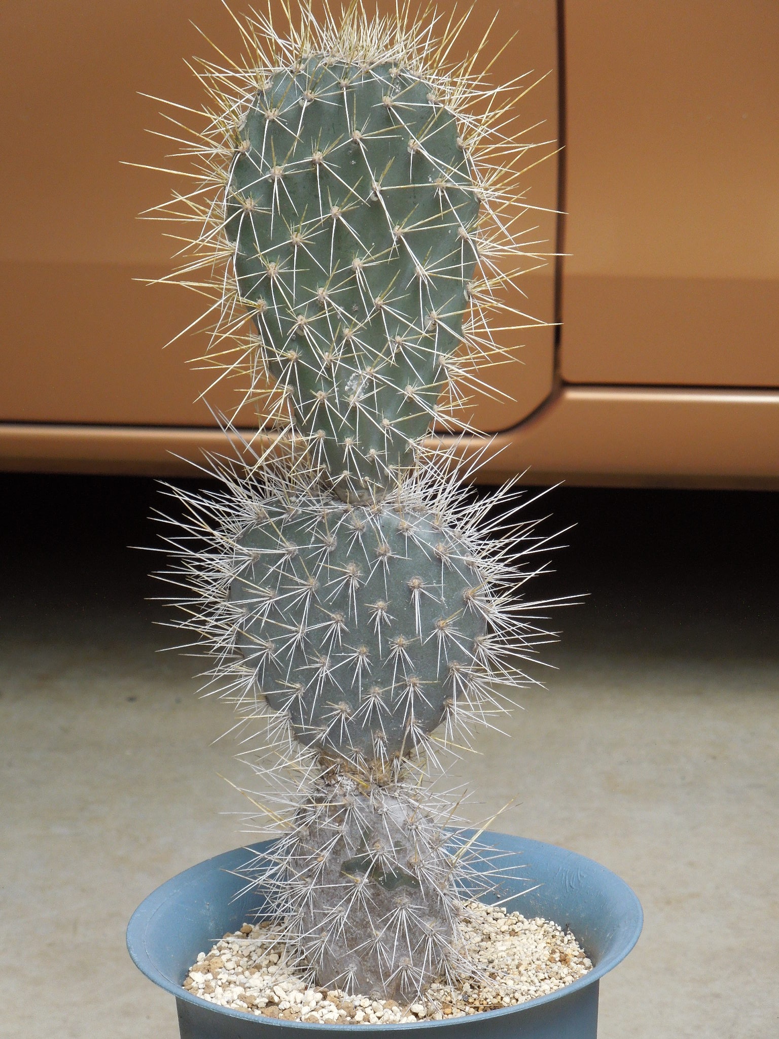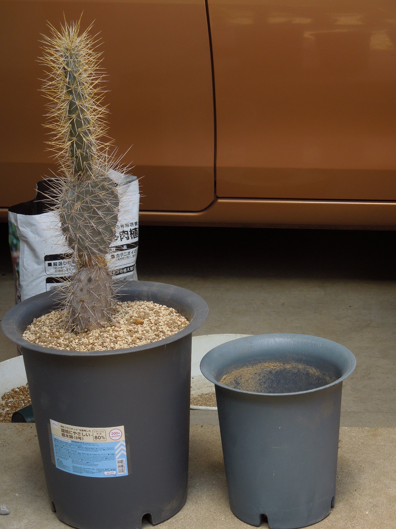 ダイソーの8号鉢に、市販のサボタニ用用土で植え付け。