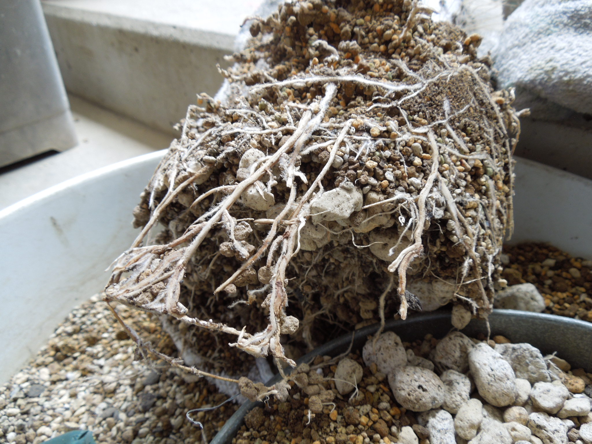 持ち帰って、4号から6号鉢に植え替え、夏季は 雨ざらし栽培