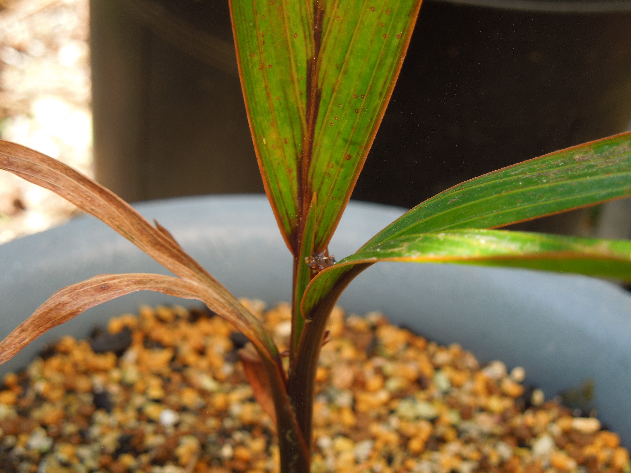購入時 に葉の色が少し黄色かった小苗は、秋になる前にダメになってしまったが・・・