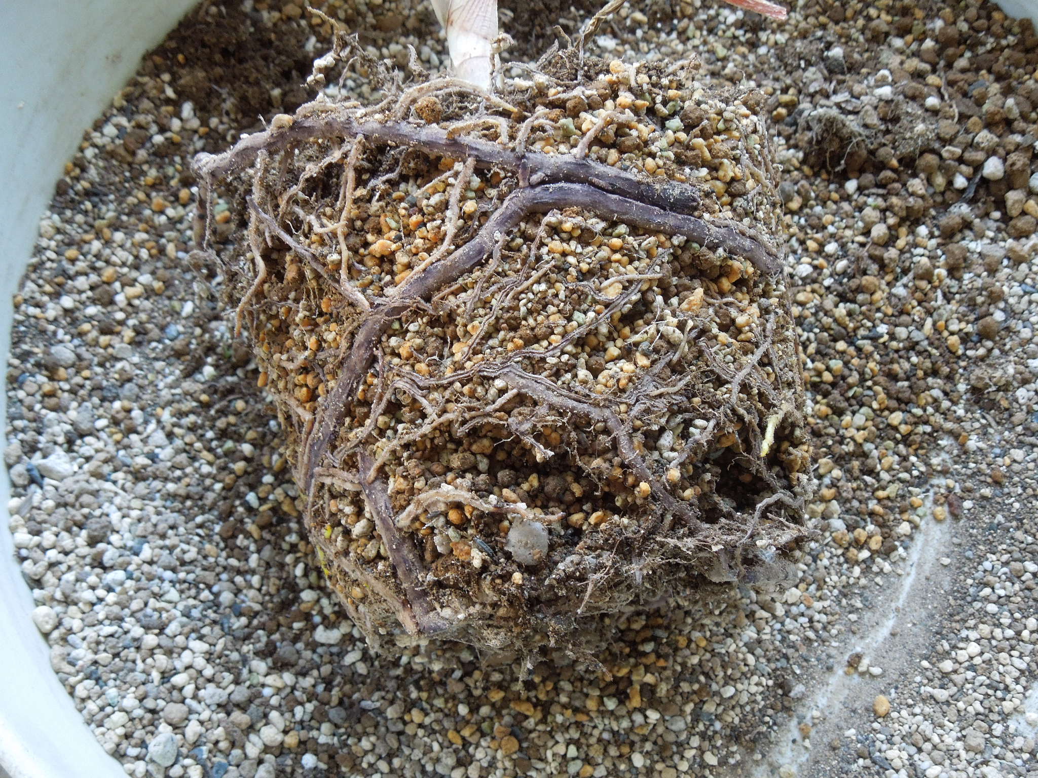 行き場所が無くなった根が、鉢の中でとぐろを巻いて・・・