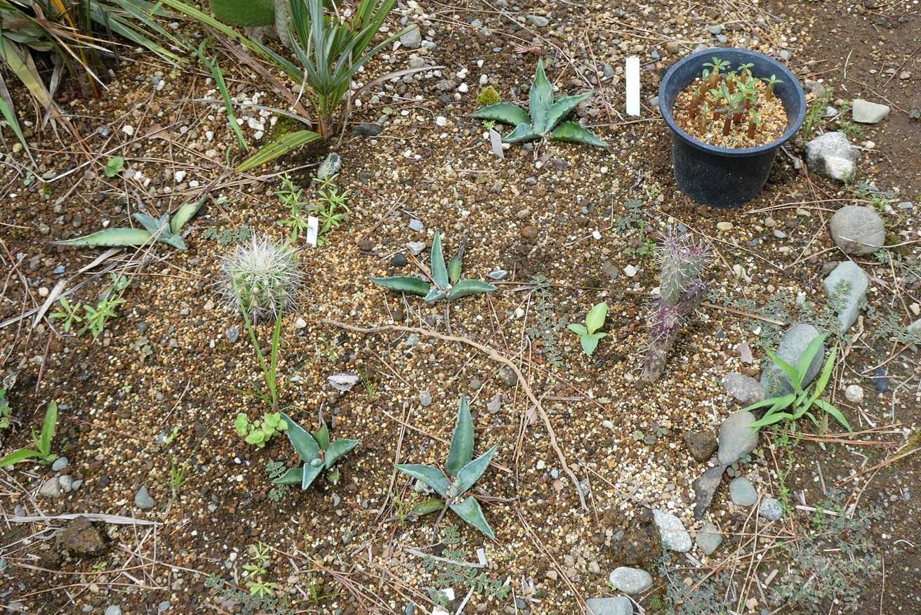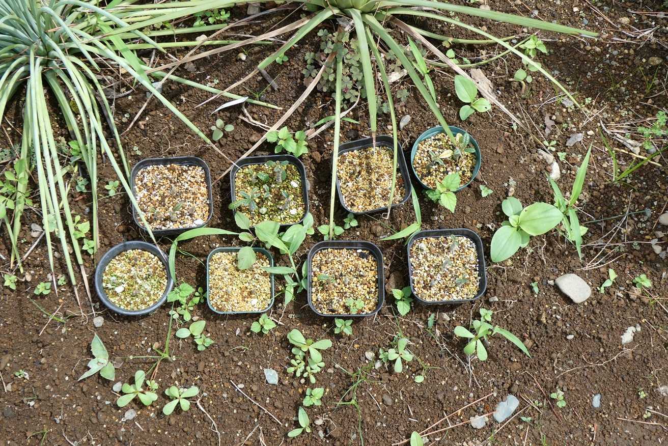 ドルステニア・ギガスの実生苗が、雑草に埋もれそう。
