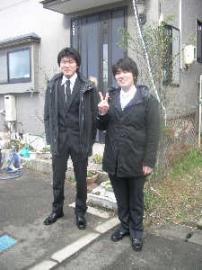 前日から長男の友達(高校の同級生)が長岡から泊まりに来ていました。というのも14日の成人式に出席する為にです。前夜は遅くまで長男、次男、友達の3人でゲームや話に夢中だったと思います^^朝は良い目覚めだったみたいで、朝からそわそわしています。二人ともスーツに着替え、記念撮影をして出発です。 ↑玄関前で記念撮影、右が長男君朱鷺メッセで10時受付で11時から行われるんですが、僕が車で近くまで送っていったんですが、もうその当たりはすごく渋滞で・・・・。手前で降りて歩いて行くように言って、帰って来ました。そして夕方の6時から中学時代の同窓会に駅前に出かけました^^今が青春時代ですね^^僕もこんな頃があったんでしょうが・・・^^