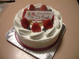 仕事が終わる頃に一本の電話が^^最近あんまりウイングで会えないシモコから「こいちゃんの誕生日のプレゼントがあるからわたすよ^^」っていう電話でした^^わーい!ありがとう^^ということで、なんとシモコからプレゼントに誕生日ケーキをいただきました^^子供達の誕生日にはケーキを買ってくるんですが、僕や女房の誕生日のケーキってしばらくぶりですから^^そんなわけで僕は二日連チャンでケーキでした^^でも甘いモノ大好き男ですから毎日でも大丈夫^^ ↑誕生日ケーキクリームもそんなに甘くなく、あっさりとおいしいケーキでした^^ ↑ぼくの取り分昨日のミッキーマウスのケーキにエピソードがあって、さなえちゃんがケーキを注文するときに、チョコのプレートの名前を頼んだそうです。その時に「こいちゃん」ですってお店の人にいったら「なんて可愛いなまえですね^^」って言ったそうです^^たぶん「恋ちゃん」かなにかで、子供だと思っていたんでしょうね^^ろうそくの本数を聞かれて、目を白黒していたそうですから^^