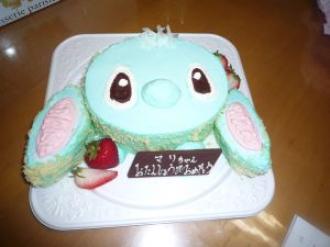 今日7月1日はさなえちゃんの娘のまりえちゃんの11回目の誕生日です。そんなわけで昨日レッスンが終わって一緒にお祝いをしました^^なんとーケーキがスティッチ^^ ↑スティッチのケーキをつくってもらいました^^このケーキは亀田のファヴォーラ亀田店で作ってもらいました!このお店はちょくちょく行くお店でお気に入りなんですが、他にもパンダのケーキとか色々自由に作ってくれるんですよ^^で、スティッチが大好きなまりえちゃんはおおよろこび^^ ↑思いっきり11本のローソクをけしました^^ローソクをとったらそばかすだらけのスティッチになりました^^青い色のケーキですが結構おいしかったですよ^^ ↑スティッチの枕こいちゃんからはスティッチの枕をプレゼント!!大喜びでした^^まりえちゃんにもしっかりご機嫌とっておかないとね^^DISNEY STITCH下敷 DC スティッチ(4122-755)'☆'ディズニー コレクションリロ&スティッチ ランチ巾着 2コレクション★即納★特価★送料無料★ 【Lilo&Stitch】 リロ&スティッチ くたっとぬいぐるみ スティッチ DP【送料無料】新商品 3Dモチーフライト スティッチ