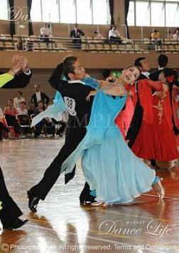 スタンダードの2次予選は39組から24組に絞られます。そんなワルツの途中にスローアウェイオーバースウェイから切り返してセイムフットランジのようなポーズからキック、そしてもう一度スローアウェイオーバースウェイをするところがあるのですが、僕がスローアウェイオーバースウェイを一回だけして終わってしまうことがあるんです。忘れているんですが・・・・・・・。すいません!前回の福島の2次予選でも丁度審査員の目の前で忘れてしまい、さなえちゃんから「なにしてるん?”」って踊ってる最中に額にしわ寄せて言われたことがありました。審査員に聞こえたかも^^うひゃ!さなえちゃんはここの部分が一番好きで、見せ場ですから期待して準備をしているところへ、僕がすっぽかすものですから・・・・・・頭に来るんでしょうね^^そんなわけで今回も見事すっぽかしちゃいました^^さなえちゃんは笑って「いいよ^^」って^^ ↑ニュードレスでスローアウェイオーバースウェイ!!この後すっぽかすことに・・・・・^^ぜも全然へこたれずに今度はタンゴ、スローそしてクイックと突っ走りました^^さて僕達は無事に2次予選を踊り終わりましたが、一緒に行ったおっくん組が問題でした^^1次予選は見事上位で通過して2次予選に挑みましたが、その2次予選のタンゴを撮影しようとビデオを構えていたんですが、踊ってるはずのタンゴのヒートにおっくんがいないんです。あれ?っと思ったらその脇をこっちに歩いて来るじゃないですか?「あれ?おっくん、タンゴ踊らないの?」「え?まだだよ・・・」「なに言ってるの?今1級スタンだよ!」「裏で練習してたよ、どうしよ・・・・」って調子でのんびりしているんです・・・・・タンゴは踊りませんでしたので残りの種目のスローだけ踊りましたが、あえなくここで終了でした。ちゃんとタンゴも踊ってたら3次予選には進めていたのにナーーー!!まあ良い教訓になったでしょう^^ ↑夏向きの涼しいニュードレスのさなえちゃんと^^さて、2次予選の結果がでましたが、ワルツとクイックは5点満点でしたが、タンゴが3点、そしてスローが1点で・・・・でも合計14点でなんとか3次予選に進出することができました。前回の福島でも踊ることができた準決勝に残るために一番大事な3次予選(最終予選)でとんでもないことが起こりました。つづく