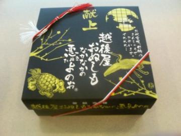 前にテレビの特集で取り上げていたのを見て、ほしいナーって思っていたんですが、ちょうどさなえちゃんが毎週通っているのでついでに買ってきてくれました。丁度北陸自動車道黒崎サービスエリア上りに売っていたそうなんです。え・・・・・・・?なにが?って?そうですそのお土産はこれなんです! お代官様、好物のまんじゅうでございます。イヒヒヒ・・・ 献上 越後屋おぬしもなかなかの悪たぬきよのおって書かれてある箱を開けてみると中にはおまんじゅうがぎっしりと並んでいました^^ なかのおまんじゅうを全部平らげるとなんと、上げ底になっていて・・・・・お代官様の本当の好物はまんじゅうのしたに敷き詰めてございます。ムッフッフ・・・・・・・・だって^^ 中には小判がぎっしりと・・・・・・・・ 小判の袋に入ったクッキーがいっぱはいっていました^^他にもこんな類似のまんじゅうもうってました^^ いやーーー!これは面白いですよ^^^座布団2枚差し上げます^^ちなみに1箱1000円だそうですが、新潟の黒崎SAには売ってますが、あとは他のSAにもうってるかも^^あなたの本当の好物はなんですか?