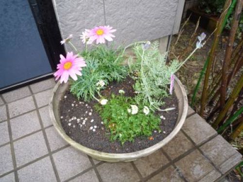 土曜日、日曜日と2日続けて練習できなかったので、さなえちゃんから「欲求不満~~!」ってメールがありました^^ということで今日はひさしぶりに練習をしてきました。まるで身体が動かない・・やっぱり身体が動かない・・・・やっぱり身体が重い・・・・やっぱり体重減ってない・・・・・やっぱりお腹がポニョポニョ・・・・・そんな繰り返し・・・1時間半ほとんどチャチャチャの繰り返し・・・あ~~~あ・・・・今週末が初戦だって言うのに・・・・全然仕上がりません・・・・こまったな~~~ここまで手術の影響が響くとは・・・・・まあ、なるようになるしかないんですが・・・こないだ買ったお花を寄せ植えしました・・・・でもその途端に雪が降るなんて・・・・まあ、お花見て気分転換するしかないね^^綺麗に咲くといいな~~~