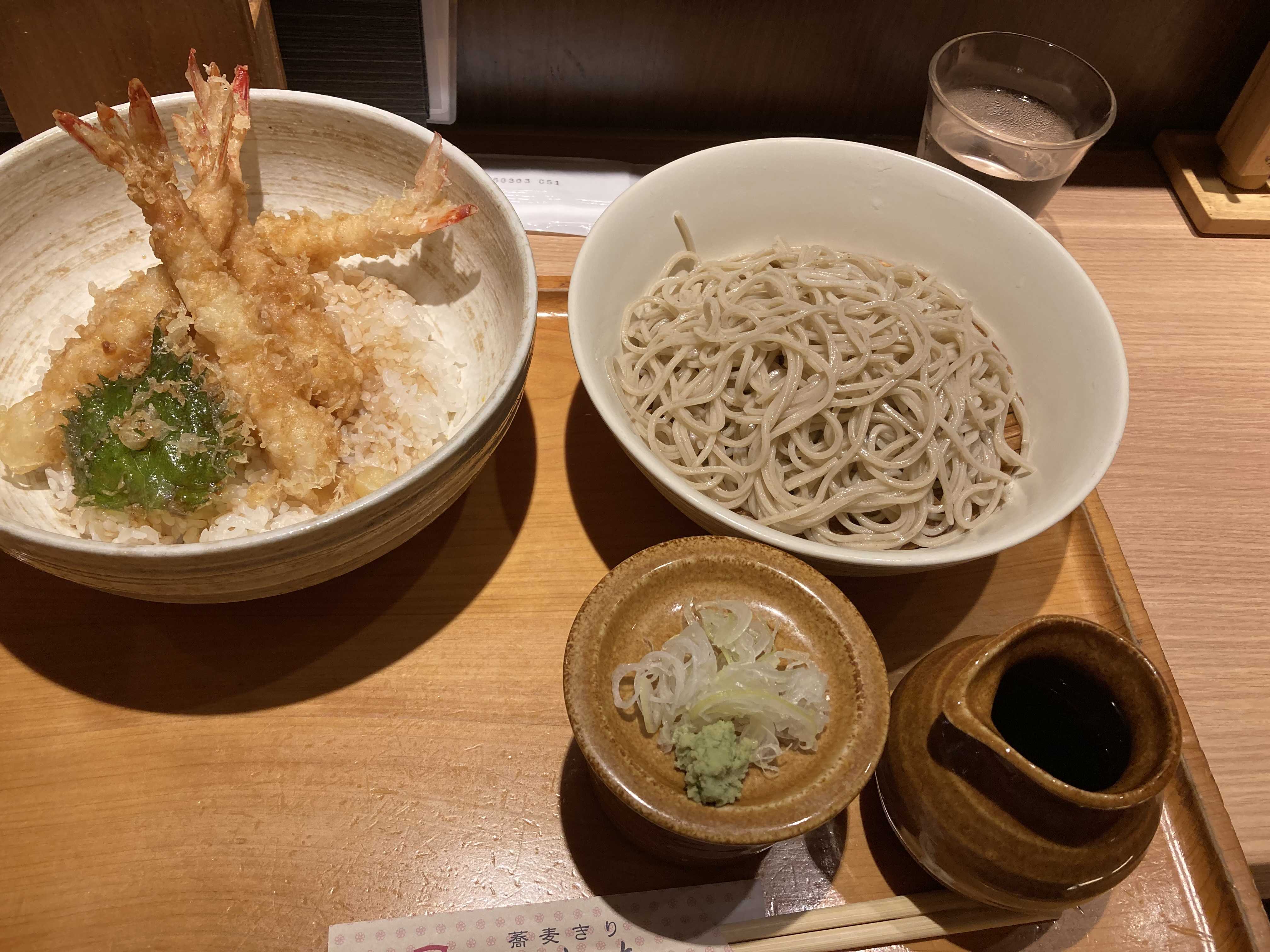 青山通りの「蕎麦きり みよた」 お蕎麦と海老天丼のセットでなんと1030円! おいし…