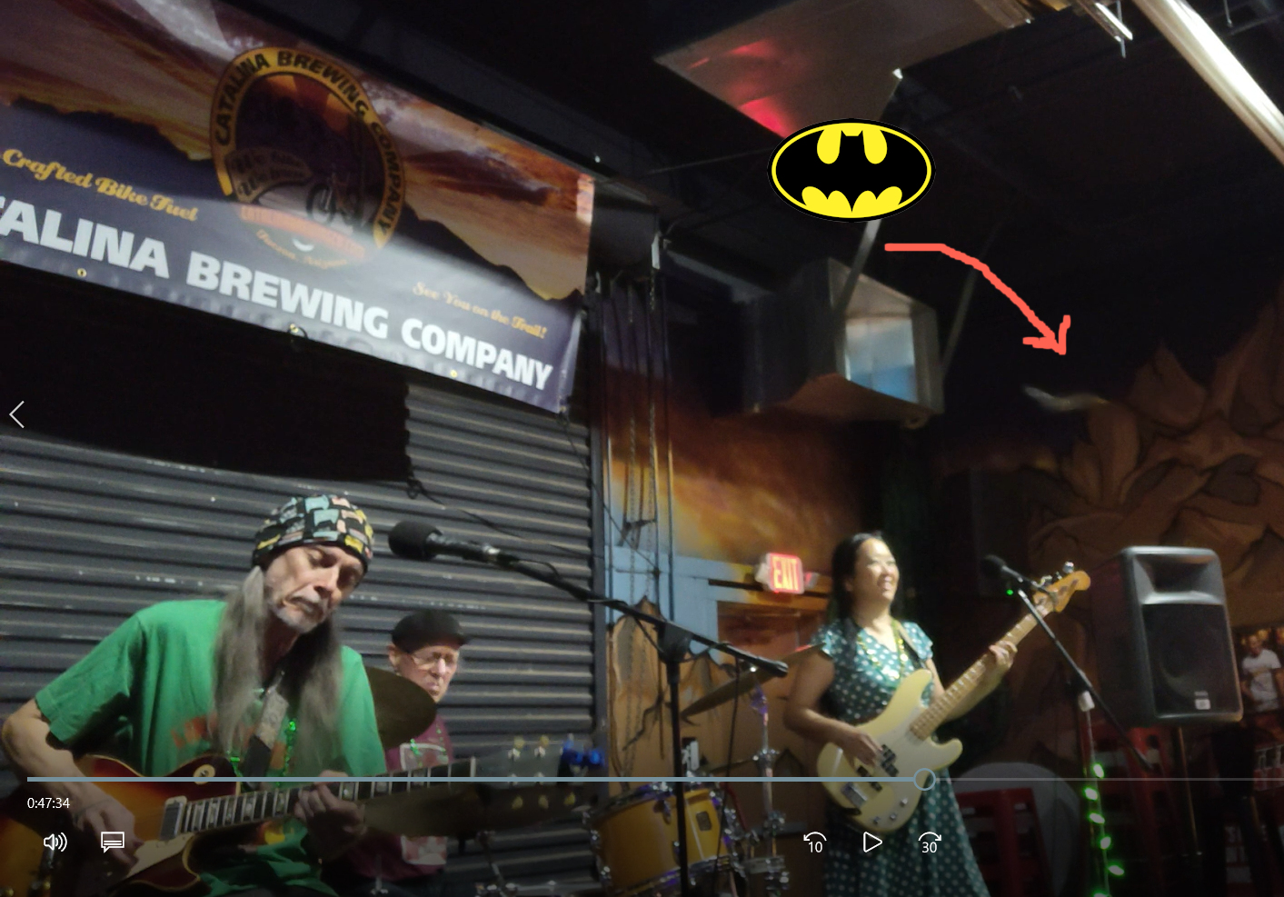 昨夜のギグにコウモリ乱入!目の前をブンブン飛び回ります。オーナーが機転を利かせて後ろのガレージのシャッターを巻き上げたらしばらくして飛んでいきました。客席から歓声が上がりました。因みに聖パトリックデーだったのでパトリックと名付けました。ハロウィンに帰ってきてね~。