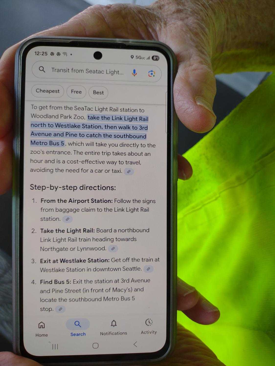 動物園いきたーい!ウーバーを呼べる場所に行きつくのに結構かかってしまいました。まずは迷路の駐車場に出たのですが、まったく看板が無い!車ばんばん通るのに渡れそうな所も無い 泣やっとやっと乗り場を見つけアプリを開いてみてびっくり、動物園まで片道$70超え!!いやいやいや、動物園の入場料$24よ。空港から30分か~。特に空港からのウーバーって高い気がする。近場でも高い。近場とかでも土地勘無いからどこ行っていいかわからない。ふと、電車移動の手段も出てきたので、そっちにしよう。また駐車場をさまよって電車のチケット売り場へ。売り場の人達は親切で、スマホで調べて(覚えてないんだね...)スクショさせてくれました。チケットはよくわかんないので$6の一日パスを買いました。う... 面倒くさそう交通機関音痴なのでどきどきだったけど、一路線で右行か左行かだけだったので(かろうじて)大丈夫。Link Light Railという電車とバスと路面電車を足して割ったような感じでした。緑が多くて景色が素晴らしい!右から二番目の駅が今出た空港。日本の電車はぎゅうぎゅうでも誰でも無口だったのに、こっちに帰った途端、もう知らぬ乗客グループ同士がわいわいうちとけて話してます。でも一駅が長い。これは目的の動物園までかかるぞ。帰る時間とかセキュリティとか考慮すると、動物園に着いたとしても見て回る時間が無いのでは?と考えた末、予定変更。以前シアトルによく行く友人に見どころを聞いたら、事細かく返信してくれたのでその人のおすすめに行こう。Pioneer Squareなる駅で降ります。長いエスカレーターを上がると、街!!街のど真ん中!かっこいー!とりあえずウーバーを呼んで、観覧車がある所へ。ボブ・マーリイのレゲエを流す陽気で、発音できないような名前の黒人兄ちゃんドライバー。気分あがるね!観覧車が見える所で降ろされました。わー、水辺だ!すれ違う地元人っぽい人達がすごくリベラルな感じ。The Great Wheel, $22くらいだったかなー。ここでお酒を買って飲みながら乗れるみたいです。こういう所では下戸なのが悔やまれる。どきどき観覧車は水辺の際にあり、回ると半分陸、半分海という感じ。ゴンドラが小部屋のようなラスベガスのよりは小さめだけど、おかげで相席せずに乗れました。しかも結構速めなので5周しました。建物が密集して、アングルによってはスペースニードルが見えたり。この辺を検索してたらサワードウというパワーワードが出たので、そこのレストランに向かいます。なんか古臭い遊園地のレストラン街のような建物に入ったんだけど、やっぱり古臭い人形が沢山ありました。こういう雰囲気好きよ。その中の一軒がお目当ての店。サワードウのボウルでクラムチャウダー。最近はファストフードでもカフェテリア式でもチップをくれと言う所は少なくなく、ここもそうだったのでこれだけで$20超えました。観光地という事を差し引いてもたっか!可もなく不可も無くな味でしたが、日本のぎっちぎちマックに比べて客は3組くらい、ゆったりできました。近くに水族館もあったのですが、もう日本で行ってるし、$33という微妙な値段だったのでこれもパスだな。というともうやる事ねーしw駅までそんな遠くなさそうだし、散歩しながら帰るか。海岸沿いはサンディエゴにそっくり。客船が止まっていたり、路上ミュージシャンがいたり。お土産屋さんもいくつか覗いたり。でもいざ通りを渡って駅の方に向かうと、坂道の角度に唖然としました。うう"ぁ...。ここから3ブロック上るんか。路がこんなに斜めなのに立ってるビルの中は(当たり前だけど)平らなのが不思議。知らない街の景色ってほんと魅力的だなあ。看板だけでも愛おしい劇場。なんか私みたいなローカルの売れないなんらかの人達が一所懸命パフォーマンスする場なんだろうなーと想像。ここで暮らしてたら自分は何をしてただろうとか、ギグは(搬入とかギャラとか)どんな感じだろうとか想像が膨らみます。それにしてもきっちぃ。ウーバーケチった事を後悔...でもあと道2本だし…旅行者丸出しの首枕なんかぶら下げてボストンバッグ持って、危ない所だったらいいカモだけど、全然変な感じはしませんでした。やっと駅に着いた~。日本の地下鉄駅より解放感がありましたが、なんか近未来のような不思議な感覚だ。警備員も多くてホームレスとかいないし綺麗だし安心感がありました。帰りにはバカでかいドーム型スタジアムが見えたり。いいなシアトル、そしてこの鉄道システム、また来よう!最近、めっきりアメリカで行きたいと思う所がなくなっちゃってたんだけど、国内もやっぱ見て無い所がたっくさんあるもんだ。映画でも見てときめく所を探すのですが、最近SFばっかで参考にならん...余裕を持って空港に帰りました。当然またセキュリティーを通りますが、びっちり並んでる!うひょー!もっとすいてるという別の場所に誘導されました。え、他にもあるの?でかい空港ですからね。着