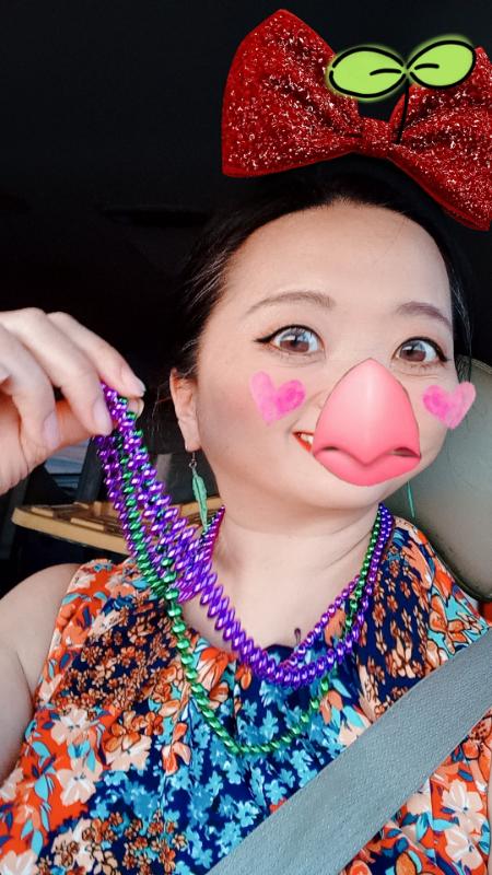 昨日はマルディグラのイベントで演奏してきました。街で数少ないケイジャン料理のお店は毎年このイベントをやっていて、祝日でもない火曜日でも沢山お客さんが来ます。私達は午後一時半のオープンからの演奏でしたが、もう店の周りにぐるっと列ができています。駐車場もぎっちぎちだったのですごく早く来て正解でした。マルディグラといえばビーズのネックレス。緑、紫、金が特徴的。お、早速やってますね。たっぷりお野菜でスモークされてるワニちゃん。お食事チケットを沢山もらったので、休憩中にコレ頂きました。マルディグラではザリガニを辛く煮た料理が代表的?満席で立って食べようとしたのですが、片手では絶対無理です。6人くらいのグループの人達がここ開いてるよって席を作ってくれて座れたのは良いのですが、今度はこのザリガニをどう食べていいのかわかりません。でもそのグループの人達は昔ニューオリンズに住んでいたとかで、丁寧に教えてくれました。結構コツがいるし、成功しても身は尻尾の方にちょびっとしかない。テーブルの見知らぬ方々に注目されながら食べたのであんまり味わえなかったwそういえば昔ペットとしてザリガニ飼ってたとか余計な事言っちまったし。ペット喰うんか、さすがアジア人、とか思われてないといいけど...。ブライアンはガンボやライス&ビーンズ、ハッシュパピーの南部サンプラー。いいな~~~~~~、ここのガンボ超美味しいのよ!高いしまずいしの外食が多い中、ここだけはちょっと高くても行きたいお店。今日は沢山無料で食べれるチャンスなのに私はまだKetoやってるのでこのプレートの物は一切食べれません。ザリガニについてきたポテトやコーンも(大好物なのに)我慢...。そう言えば2週間くらい前のオードリーのオールナイトニッポンで二人がニューオリンズに行った話をしてたなあ。最初、二人とも、名物のガンボが苦笑いするほど不味かったって聞いて驚きました。カレー好きな日本なら流行りそうと思ってたのに。でも春日がふと立ち寄ったお店では、前のやつとは別物のように美味しいお店に当たって、大好きな食べ物にランクインしたと聞いて嬉しかった。でしょでしょ??って感じwワニちゃん、(モラル的に)どうしようかと迷ったけど、いってみました。味は味付けされたスモークと辛め調味料の味で、元がどんなのだか分らなかったけど、意外と柔らかくて、チャーシューの脂身の所みたいな感じでした。美味しく頂きましたよ。チケットを使い切りたかったので沢山お持ち帰り。ザリガニが逃げそうになるの図。因みにブライアンは「虫みたいでいやだ」と食べませんでした。ちゃんと仕事もしましたの図。お家に帰ってまたザリガニタイム。大量にもらったので一晩中食べてました 笑そして遊ぶ。(Gっぽく写すの図)なんか食べちゃった顔してるけど食べてないよ。ギャラも多かったし美味しいいマルディグラでした。