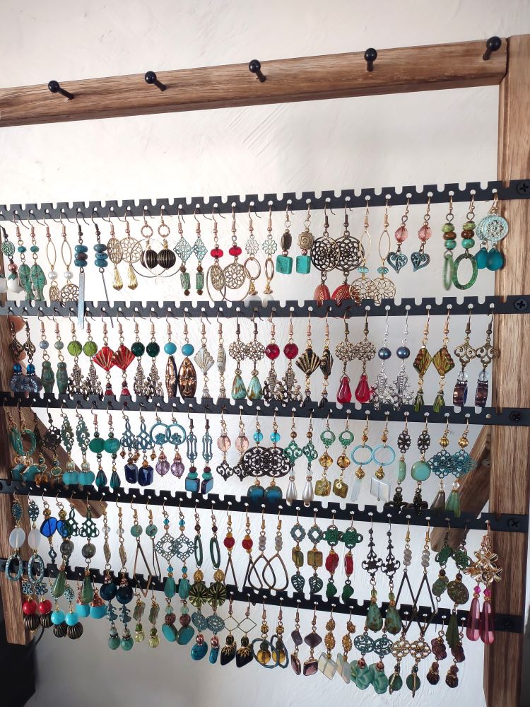 クリスマス前に友人宅でハンドメイド店出して楽しかったのですが、今週末また別件でお店を出す事になりました。Michael's という大手手芸店のウェブサイトがEtsyみたいに素人が出すハンドメイドサイトを始めたのでしばらく使っていたのですが、急に「実店舗で出店してみませんか?」と。ハンドメイドというには別にビーズから作っちゃうようなアーティストじゃないし、ただパーツを組み合わせて物を作るようなクラフターなので、いろんな物作りの人が来るであろうお店で私の作品をさらすのはどんなもんかとすっごく悩んだのですが、まぁ滅多に無いお誘いだし、場数を踏むためにやってみっか。さぁまた準備よ。前回から日がたってないのでこの大変さが蘇ります。いつも着いてから什器に並べるのが大変なので、今回は事前にセットして持っていきます。一個目~新しいディスプレイもいくつか注文。組み立て大変wうっかりカードをぶら下げるタイプも買っちゃったけど専用のカードがないので、使わなくなっても取っておいた昔の名刺(ネットショップの)を切ってパンチで穴開けて... 大変wピアスの穴を開けるパンチが後半壊れました。むっちゃ焦ったけど、電動ピンバイスで代用できました。二個目~三個目~ ぐしゃぐしゃになっちゃったけど会場で整えればいいだけ。レバータイプのピアスは穴を各2個開けなきゃいけないんで面倒くさかった~。セットしたらサランラップでぐるぐる巻きにして落ちないようにしました。気づいたらピアスばっかりかまけていて、ヘアピンとかブレスレットとかの事をすっかり忘れてた…ママ手伝って~嫌だよ~部屋は散らかり放題、ラっちゃんがルンバ掃除機ならぬルンバシュレッダー化して、紙モノはすべて嚙みちぎって散らかすのでもうカオス。お店はもうどうにでもなれだけど、本当に大変なのは終わって商品を番号ごとに戻す事。これが一番大変な作業。前は地味に一週間かかりましたよ。費やした時間を考えるとすでに赤字ですが(あんまり売れない事は予想済み)、とにかく場数が欲しい。もしバンドができなくなったり、それこそ災害で家をでなきゃ、なんで時は旅をしながらジュエリーを売り歩くなんていうシチュエーションもありうるし…さあ、値札付けなきゃ。